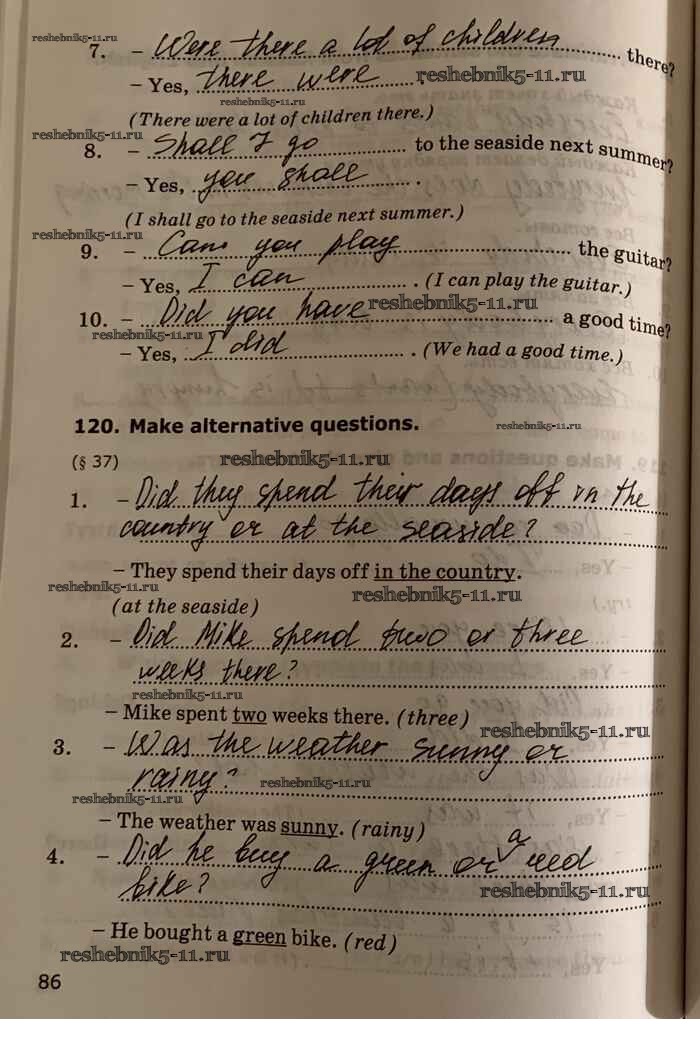 Готовая домашняя работа с ответами по Английскому языку за 7 класс Барашкова Сборник упражнений УМК Часть 1, 2 Экзамен 2017 ФГОС - Unit 2 стр.86
