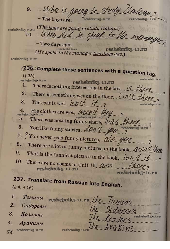 Готовая домашняя работа с ответами по Английскому языку за 7 класс Барашкова Сборник упражнений УМК Часть 1, 2 Экзамен 2017 ФГОС - Unit 3 стр.74
