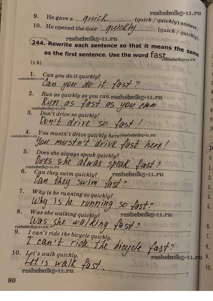 Готовая домашняя работа с ответами по Английскому языку за 7 класс Барашкова Сборник упражнений УМК Часть 1, 2 Экзамен 2017 ФГОС - Unit 3 стр.80