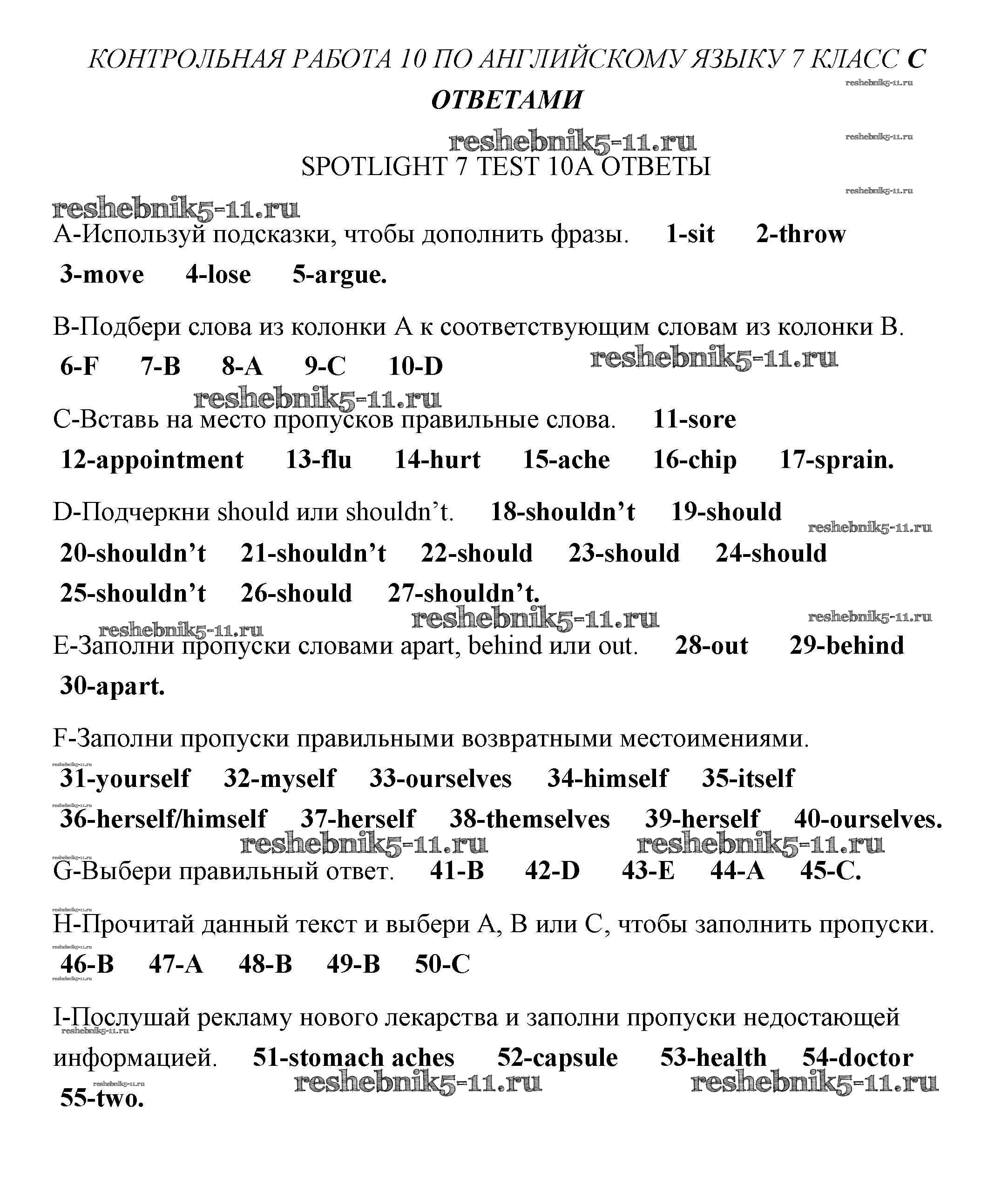 Готовая домашняя работа с ответами по Английскому языку за 7 класс Ваулина, Дули, Эванс, Подолянко Контрольные задания Spotlight Просвещение 2015 ФГОС - Тест 10 1