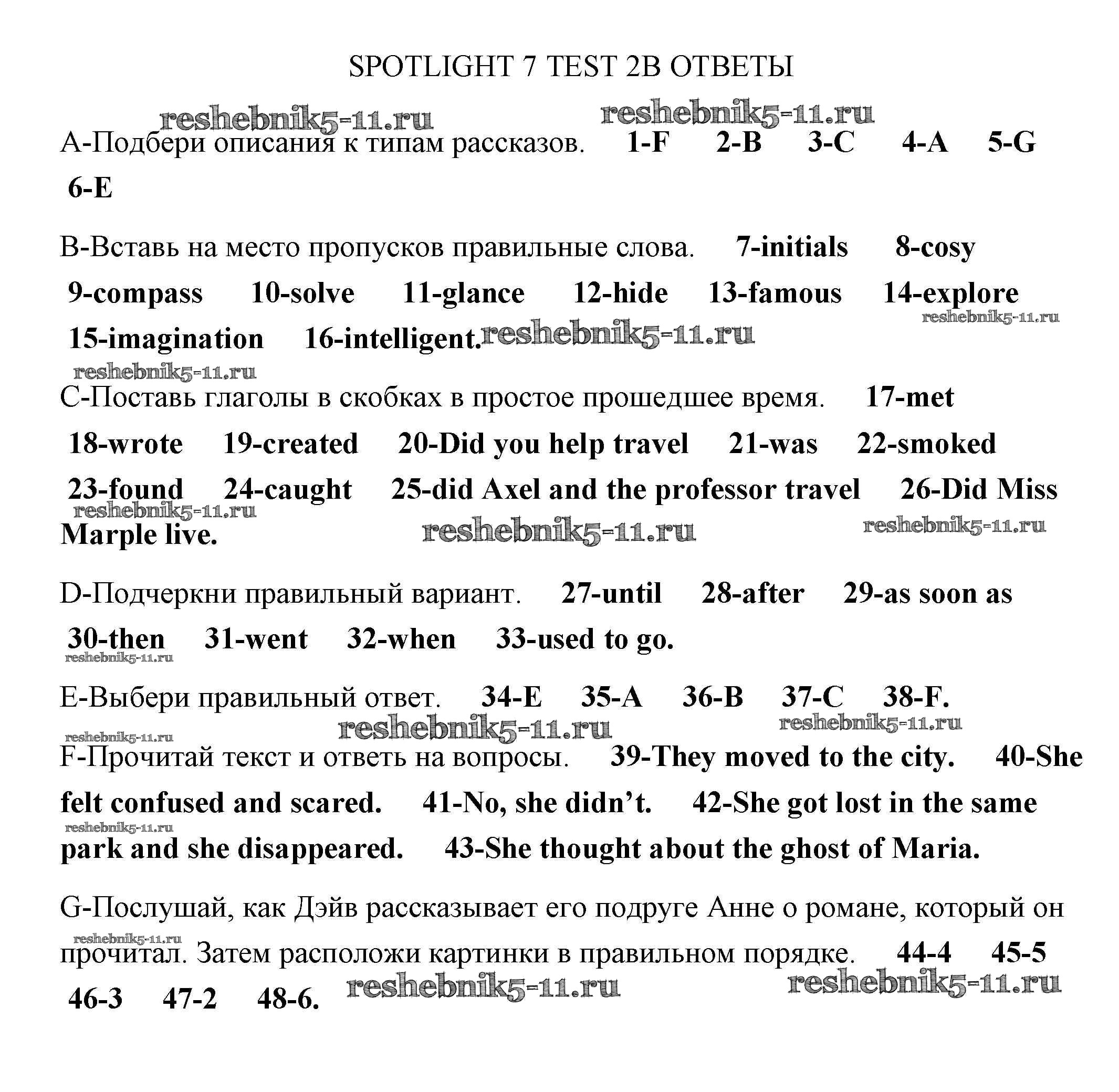 Готовая домашняя работа с ответами по Английскому языку за 7 класс Ваулина, Дули, Эванс, Подолянко Контрольные задания Spotlight Просвещение 2015 ФГОС - Тест 2 2