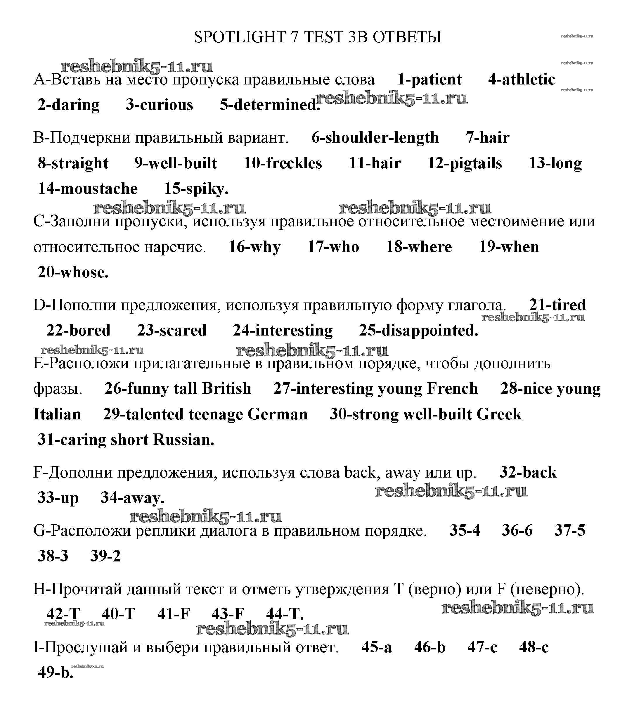 Готовая домашняя работа с ответами по Английскому языку за 7 класс Ваулина, Дули, Эванс, Подолянко Контрольные задания Spotlight Просвещение 2015 ФГОС - Тест 3 2