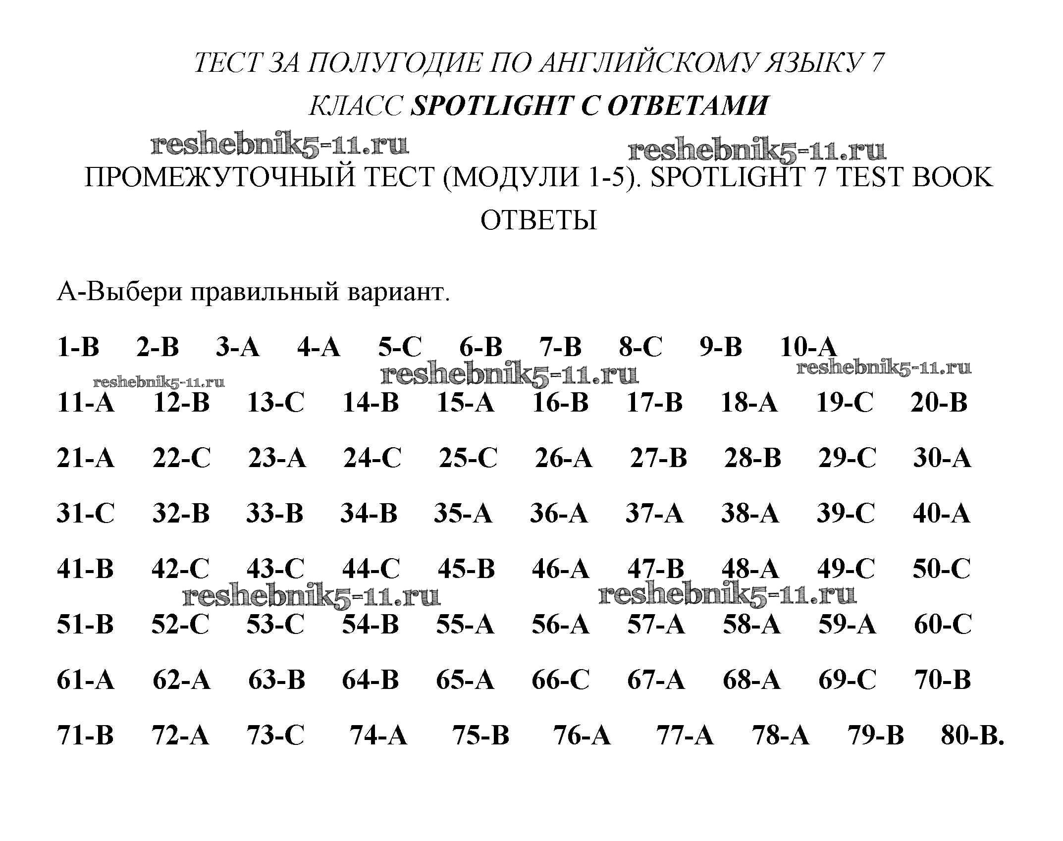 Готовая домашняя работа с ответами по Английскому языку за 7 класс Ваулина, Дули, Эванс, Подолянко Контрольные задания Spotlight Просвещение 2015 ФГОС - Промежуточный тест 1