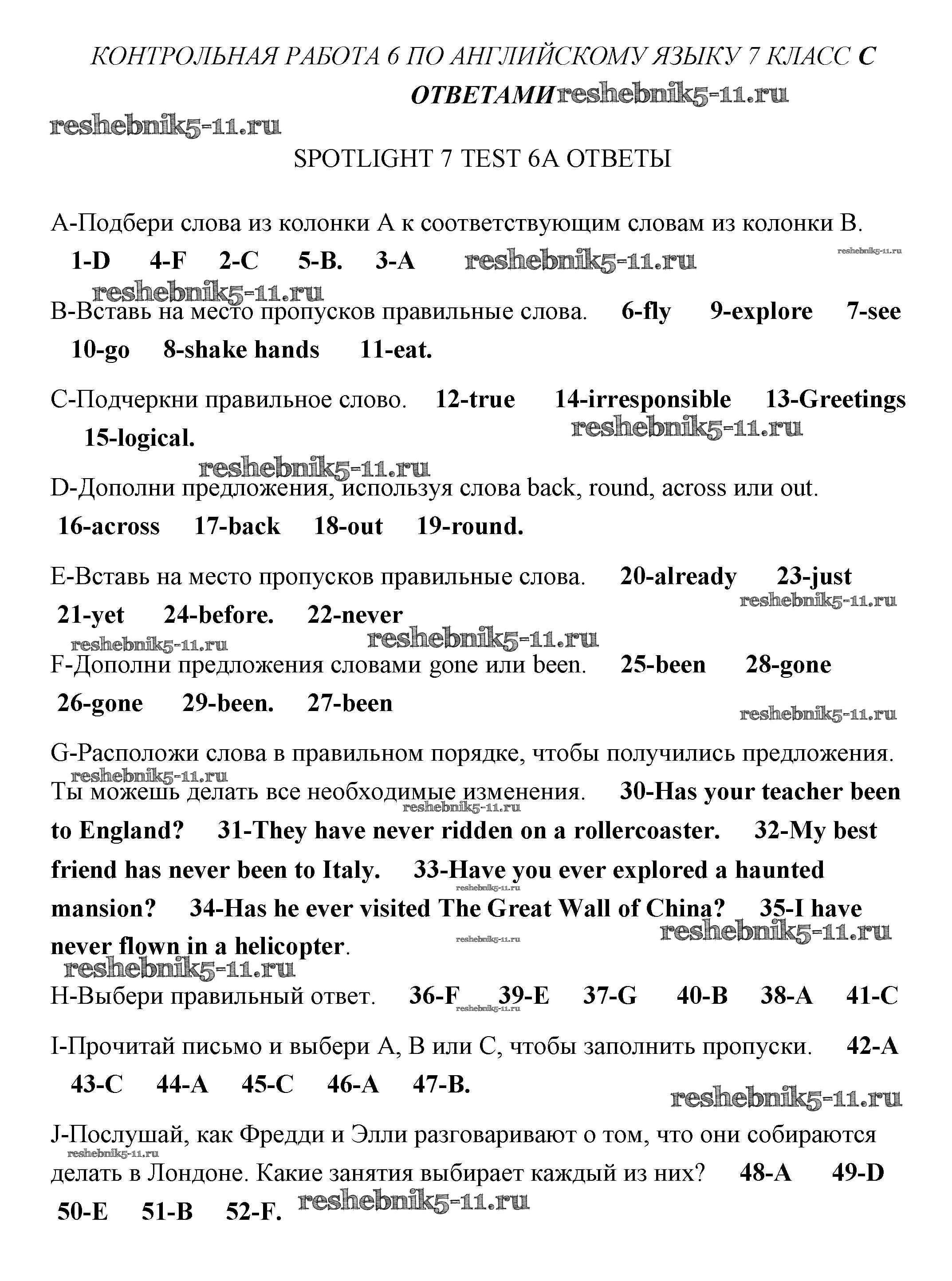 Готовая домашняя работа с ответами по Английскому языку за 7 класс Ваулина, Дули, Эванс, Подолянко Контрольные задания Spotlight Просвещение 2015 ФГОС - Тест 6 1