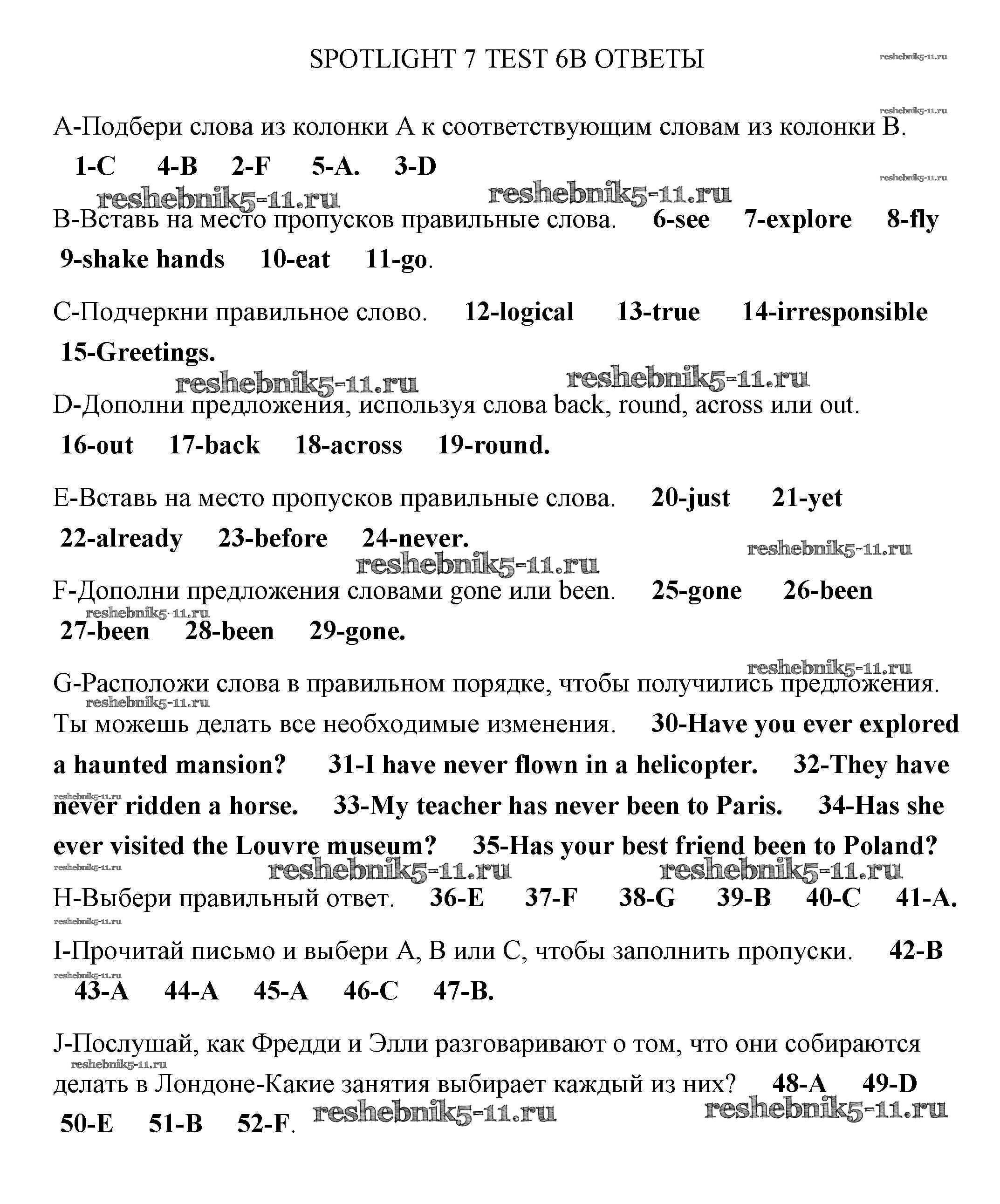 Готовая домашняя работа с ответами по Английскому языку за 7 класс Ваулина, Дули, Эванс, Подолянко Контрольные задания Spotlight Просвещение 2015 ФГОС - Тест 6 2