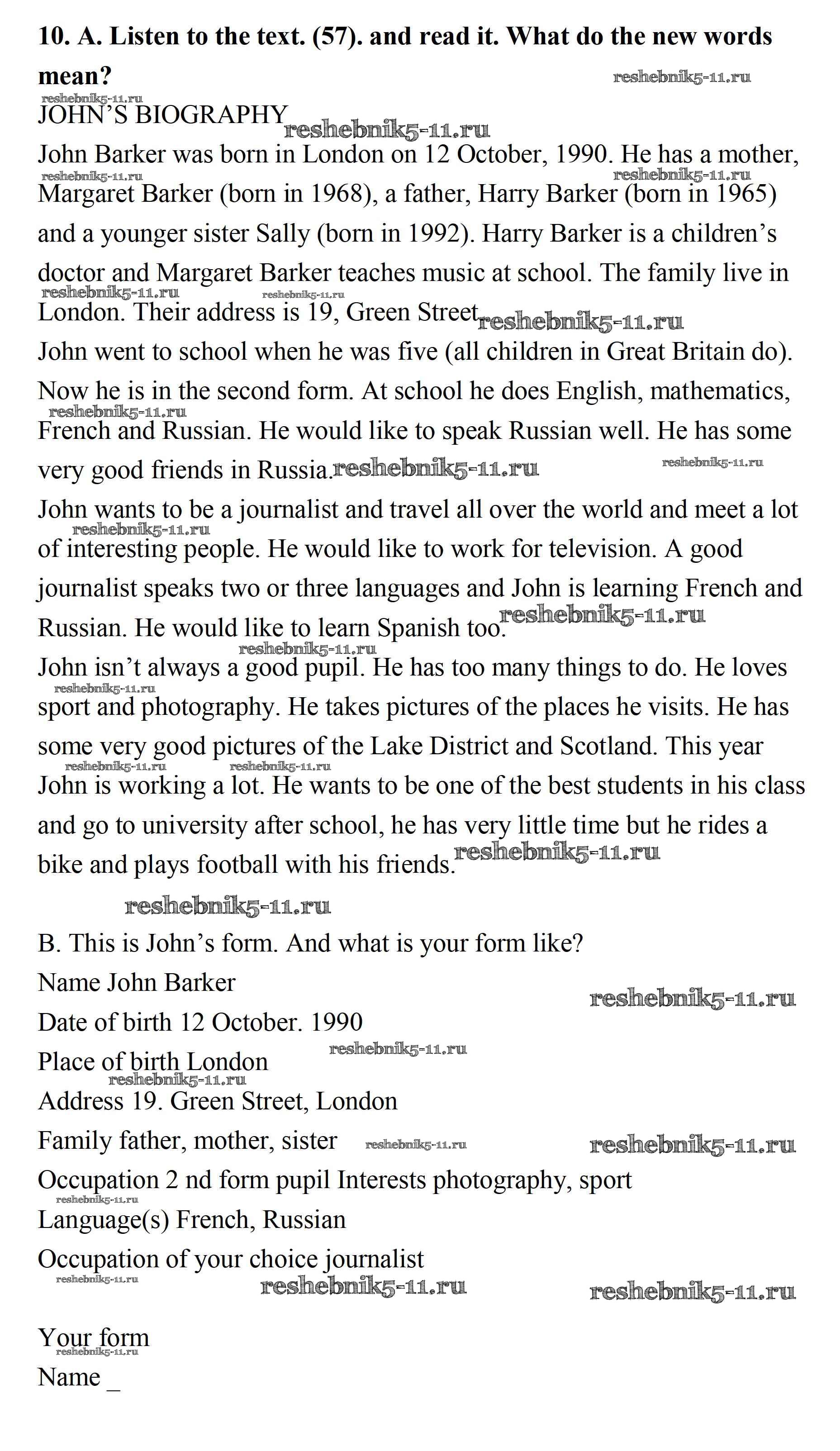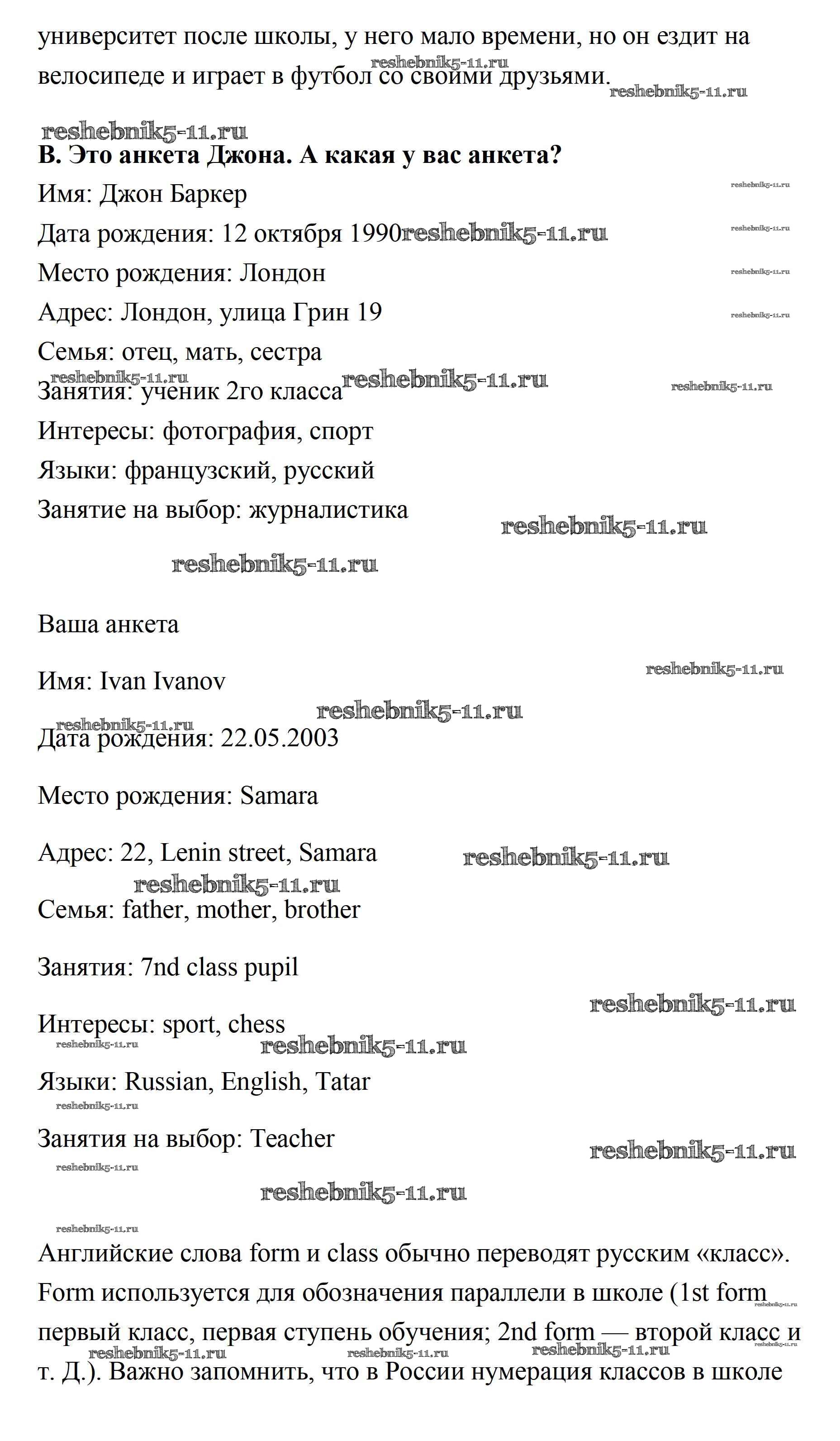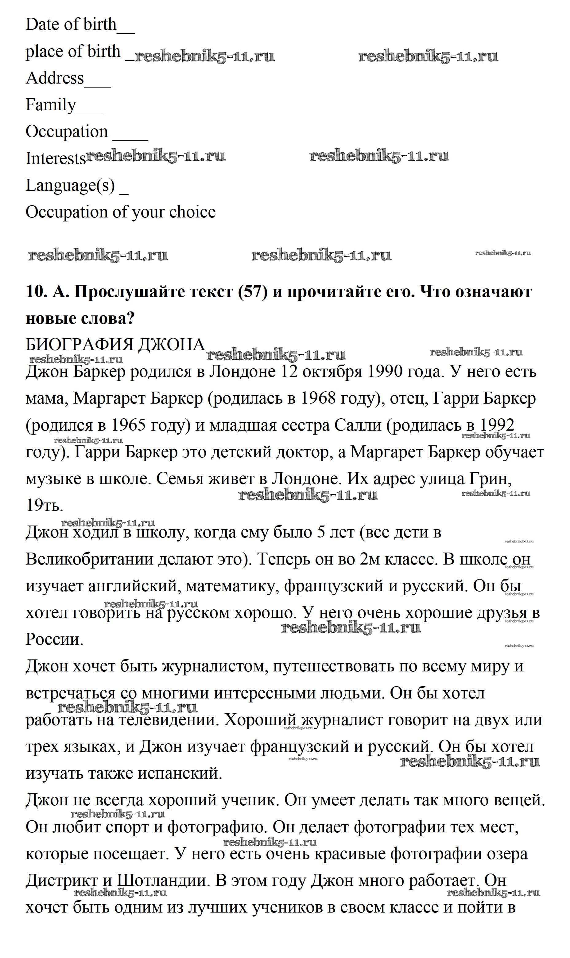Готовая домашняя работа с ответами по Английскому языку за 7 класс Афанасьева, Михеева Учебник Новый курс Дрофа 2015 ФГОС - Секция 1 10
