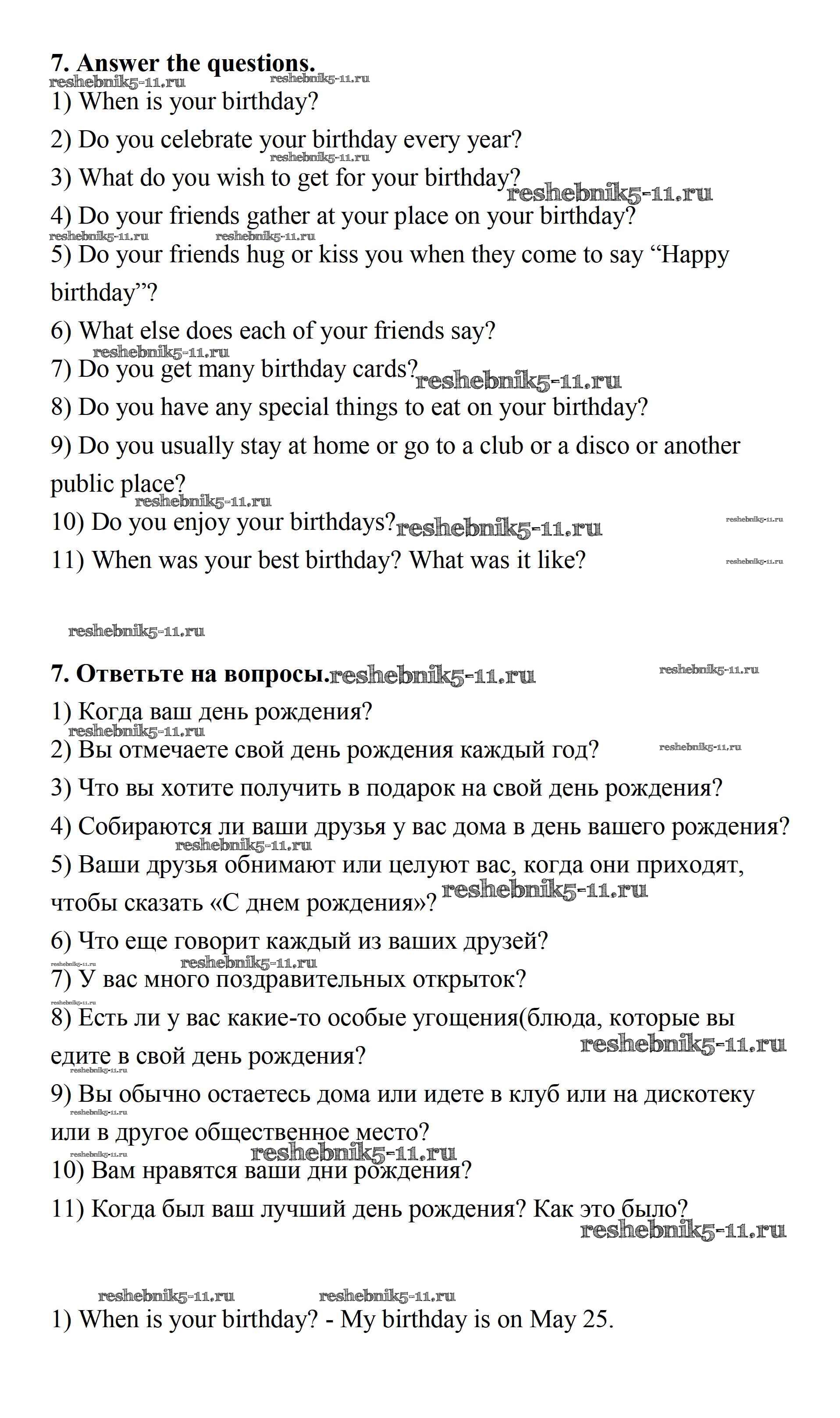 Готовая домашняя работа с ответами по Английскому языку за 7 класс Афанасьева, Михеева Учебник Новый курс Дрофа 2015 ФГОС - Секция 2 7