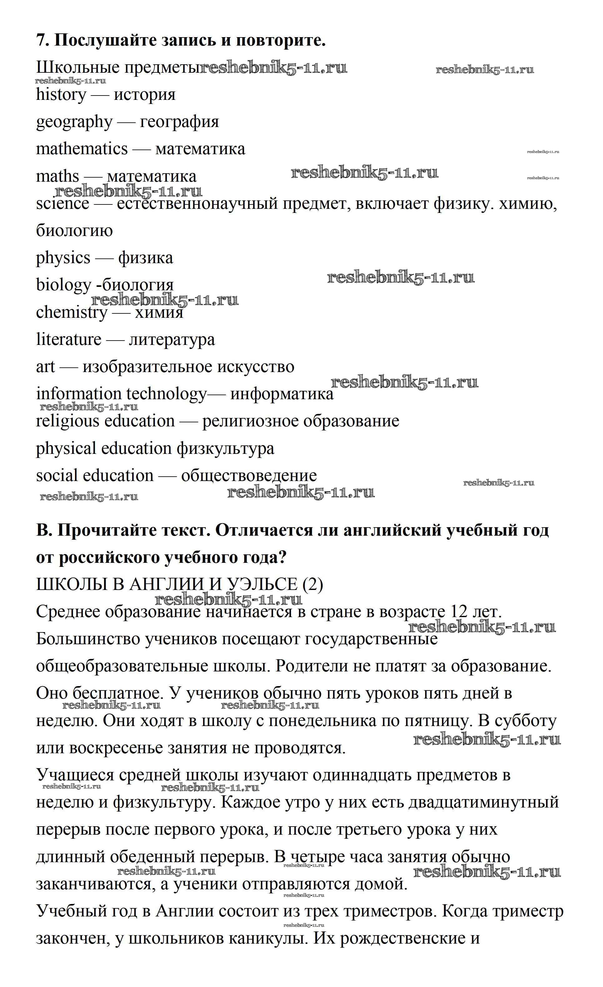 Готовая домашняя работа с ответами по Английскому языку за 7 класс Афанасьева, Михеева Учебник Новый курс Дрофа 2015 ФГОС - Секция 3 7