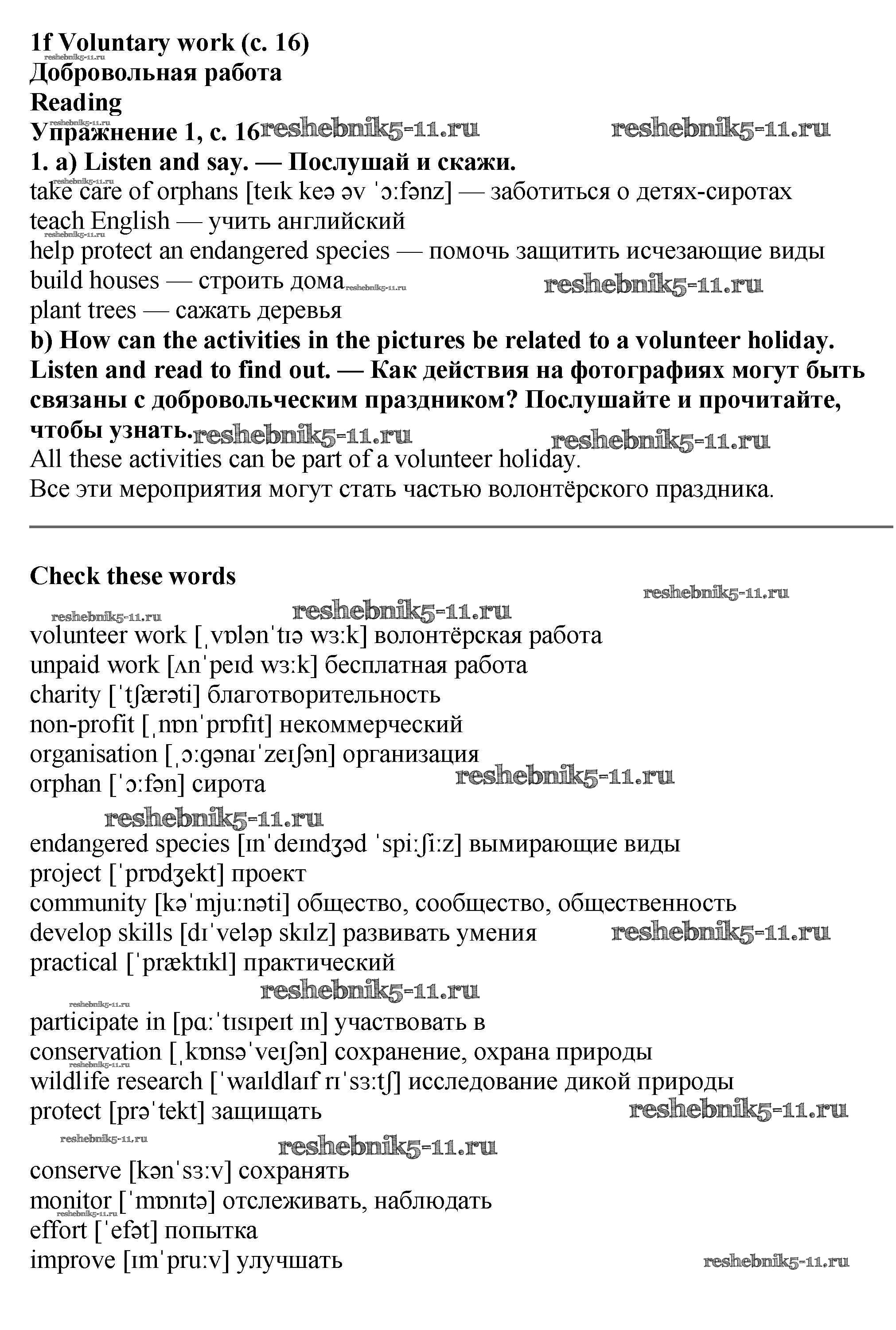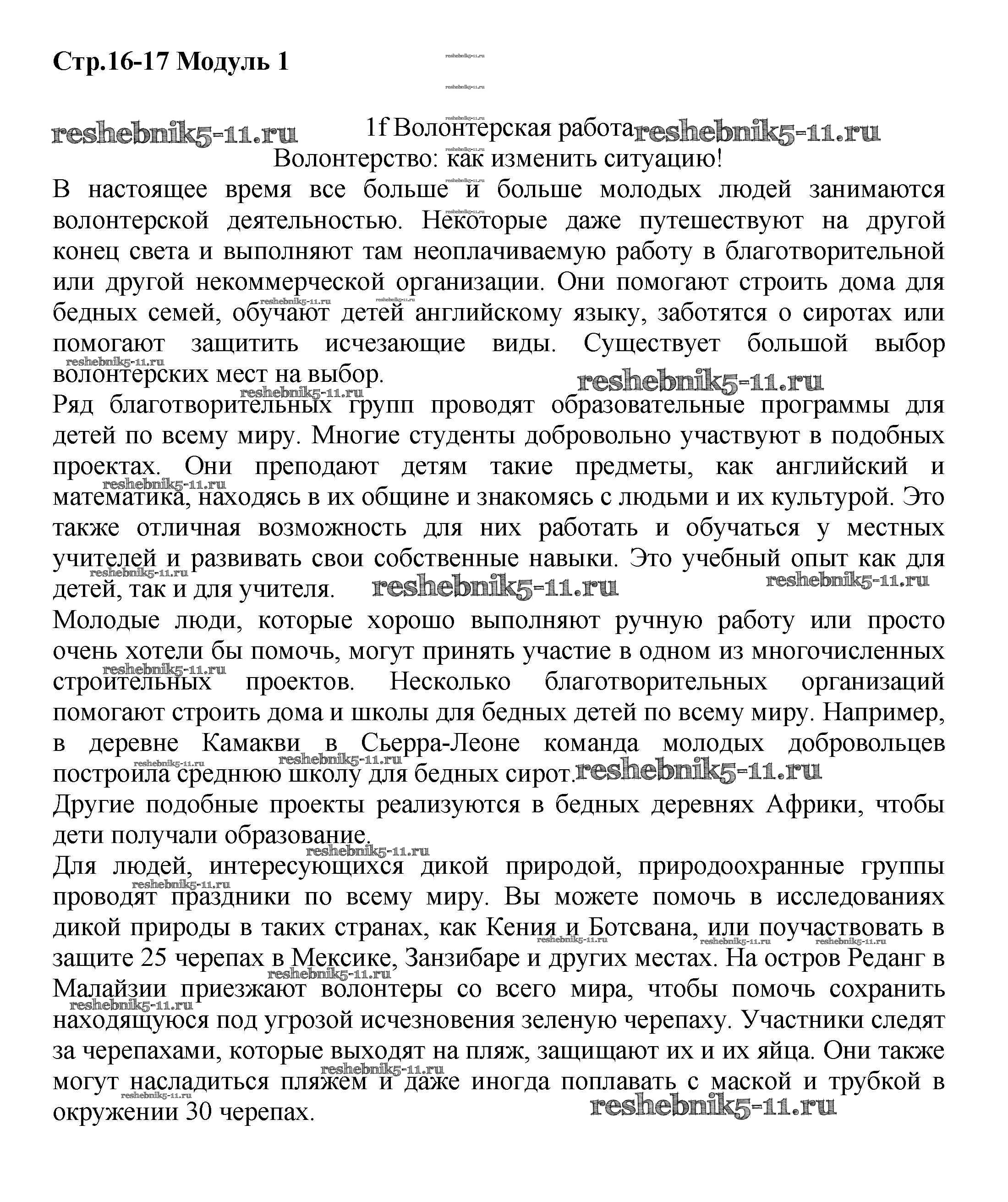 Готовая домашняя работа с ответами по Английскому языку за 7 класс Баранова, Дули, Копылова Учебник Starlight Углубленный уровень Просвещение 2017 ФГОС - Module 1. Work & Play стр.16-17