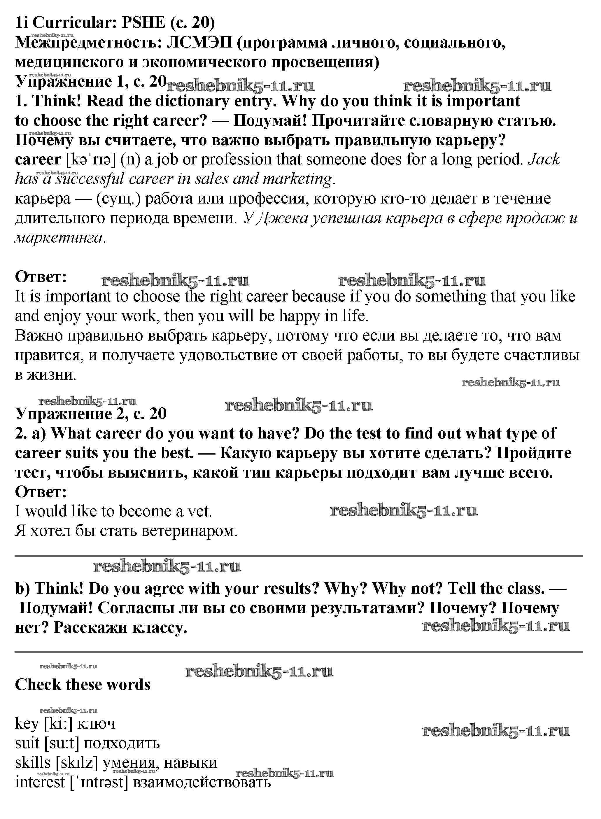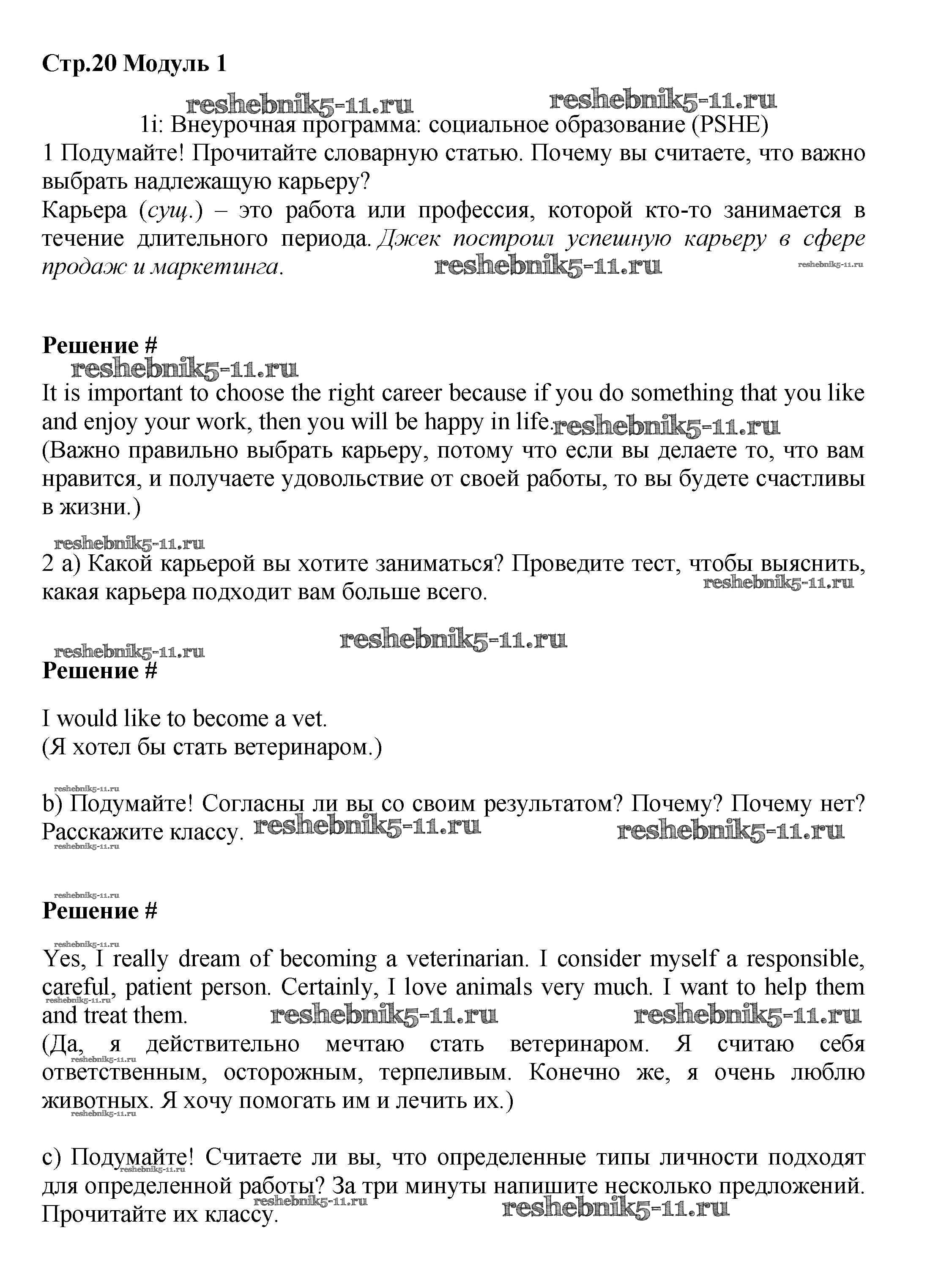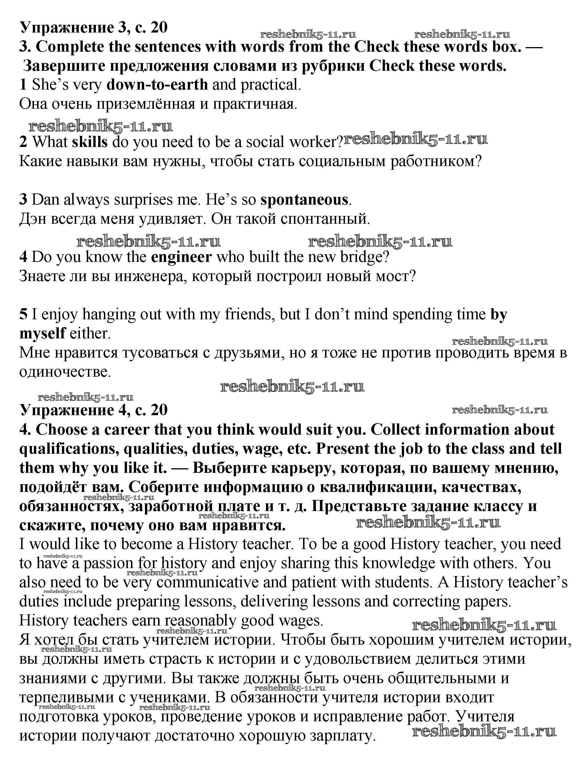 Готовая домашняя работа с ответами по Английскому языку за 7 класс Баранова, Дули, Копылова Учебник Starlight Углубленный уровень Просвещение 2017 ФГОС - Module 1. Work & Play стр.20