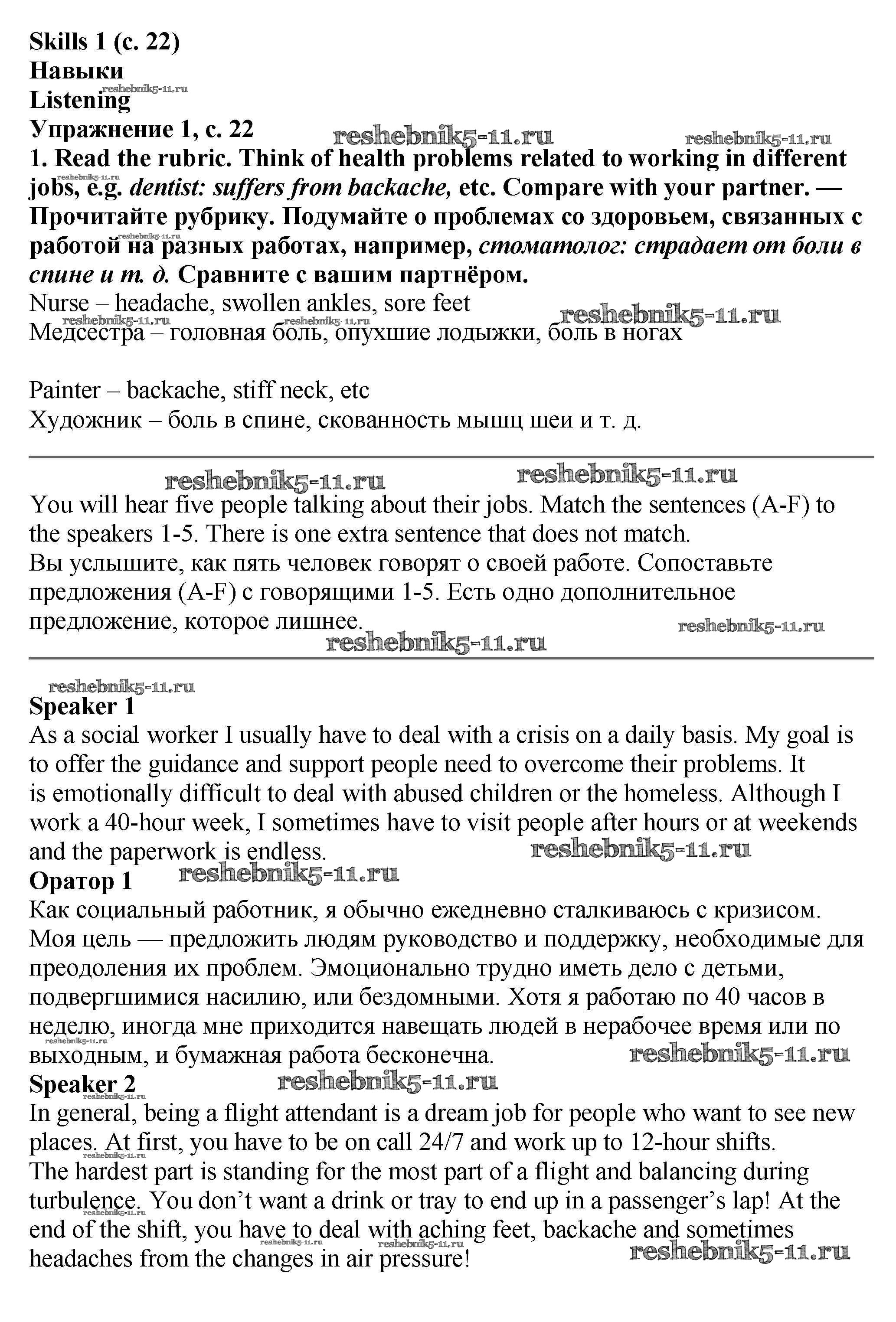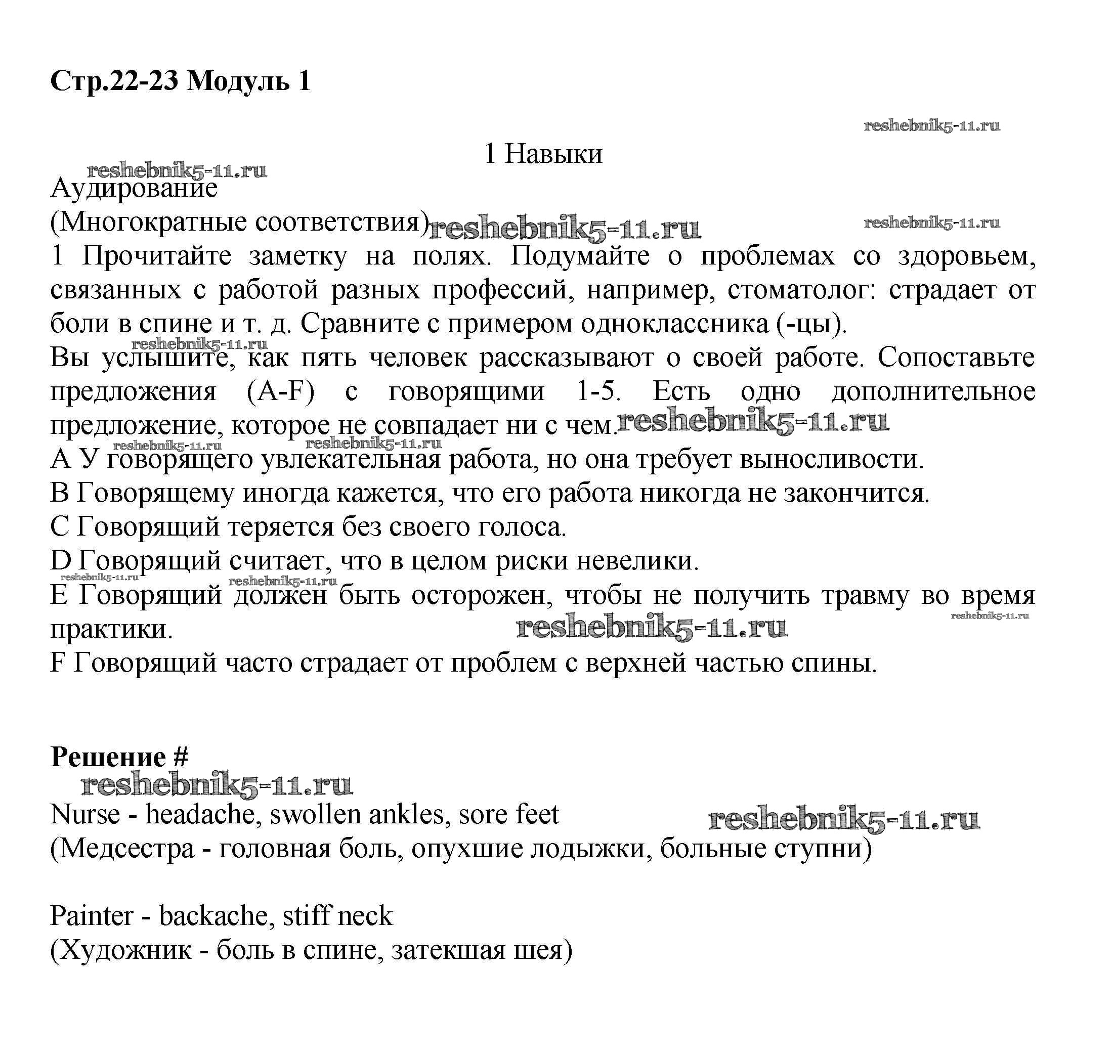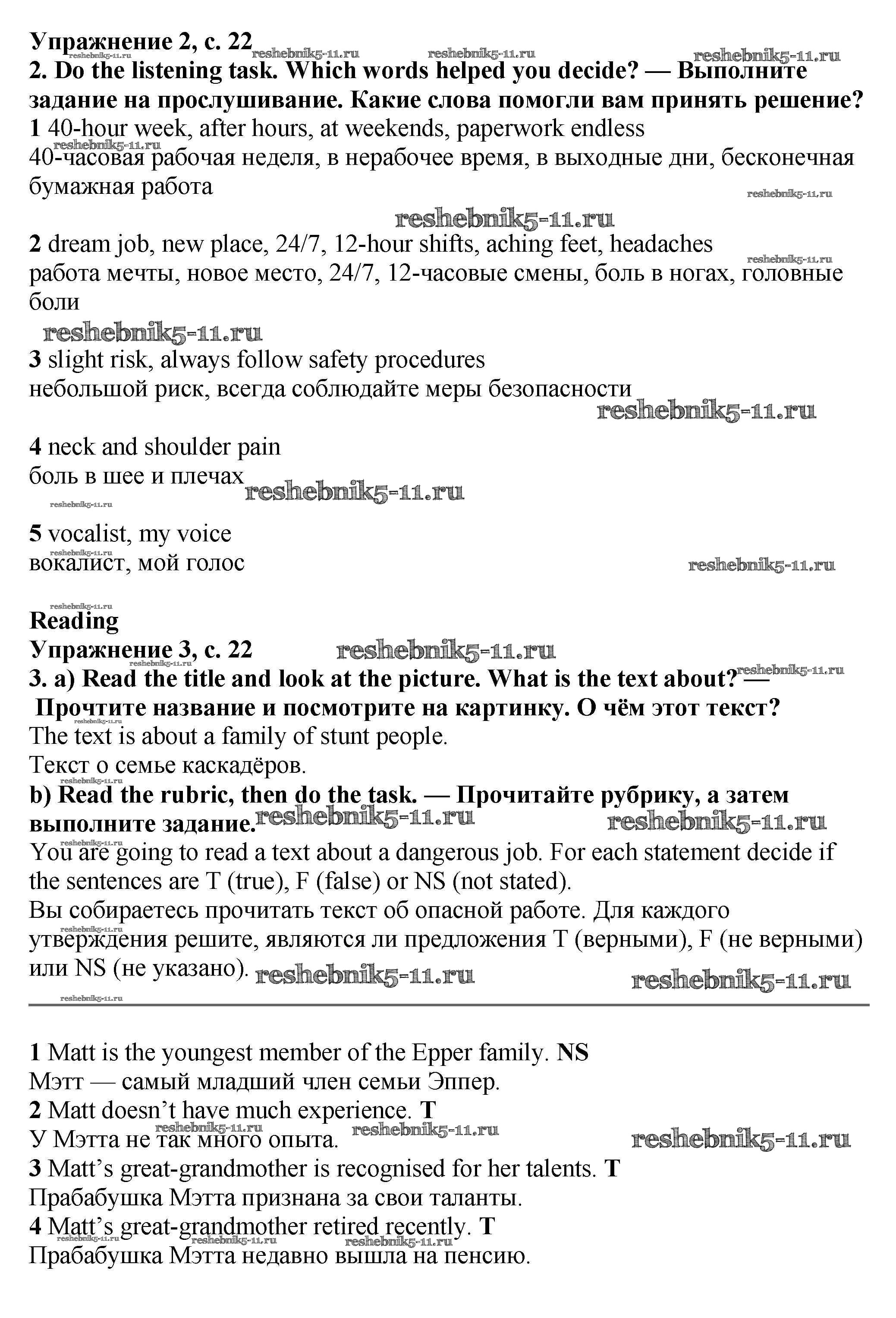 Готовая домашняя работа с ответами по Английскому языку за 7 класс Баранова, Дули, Копылова Учебник Starlight Углубленный уровень Просвещение 2017 ФГОС - Module 1. Work & Play стр.22-23