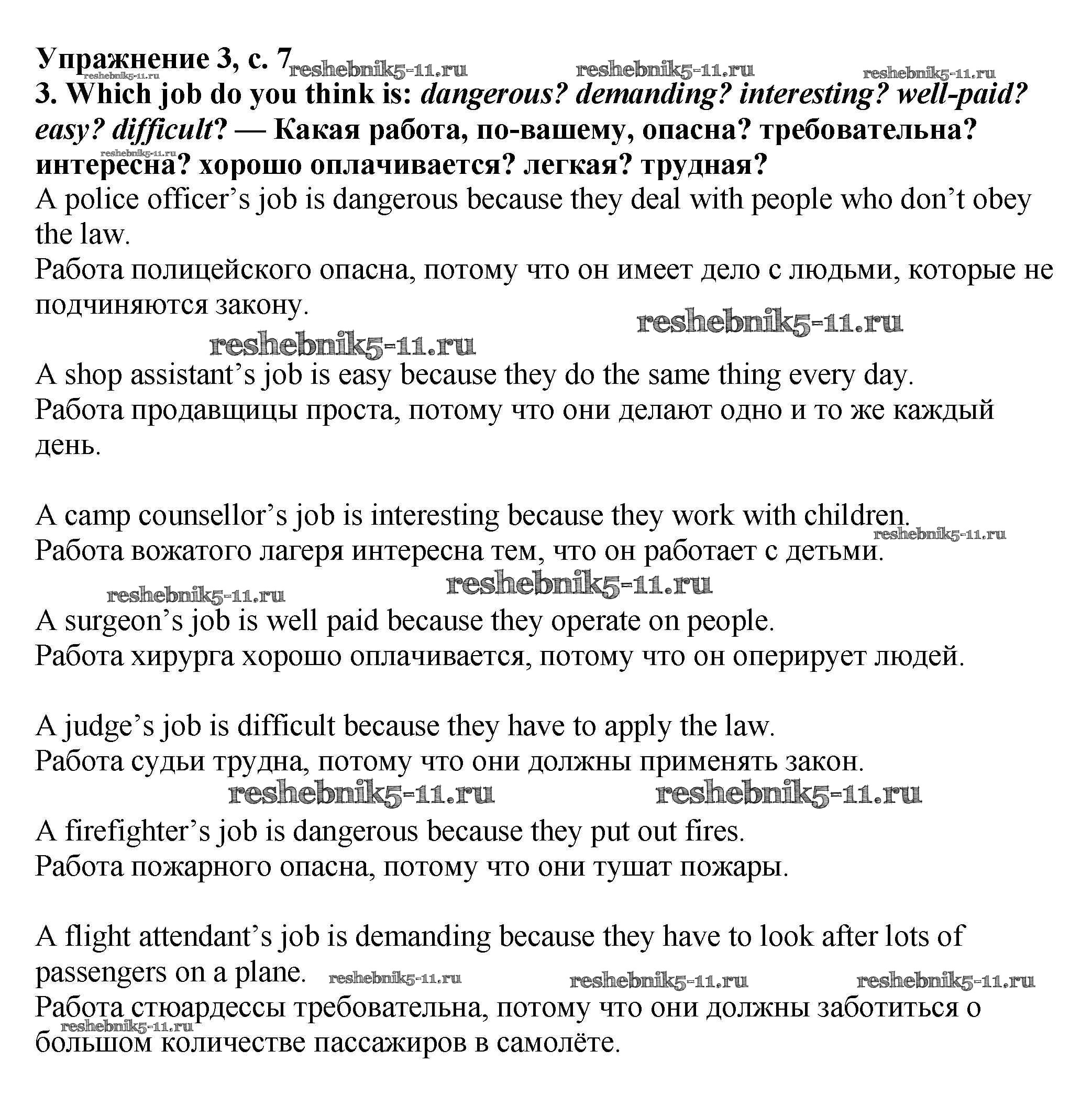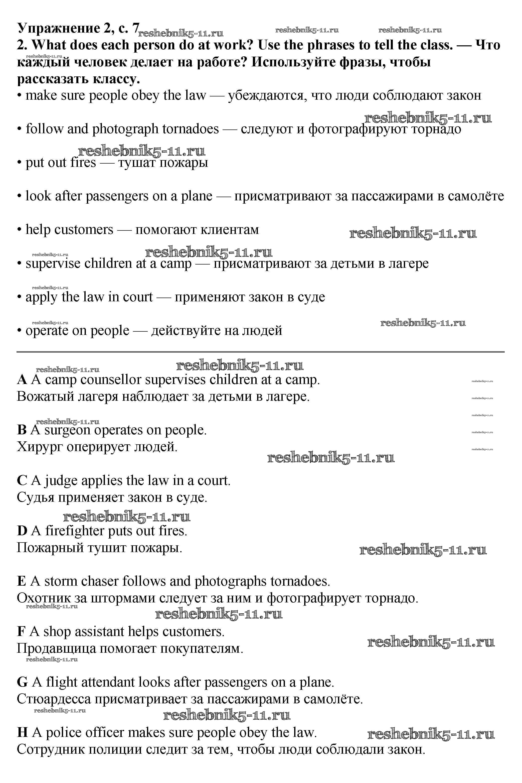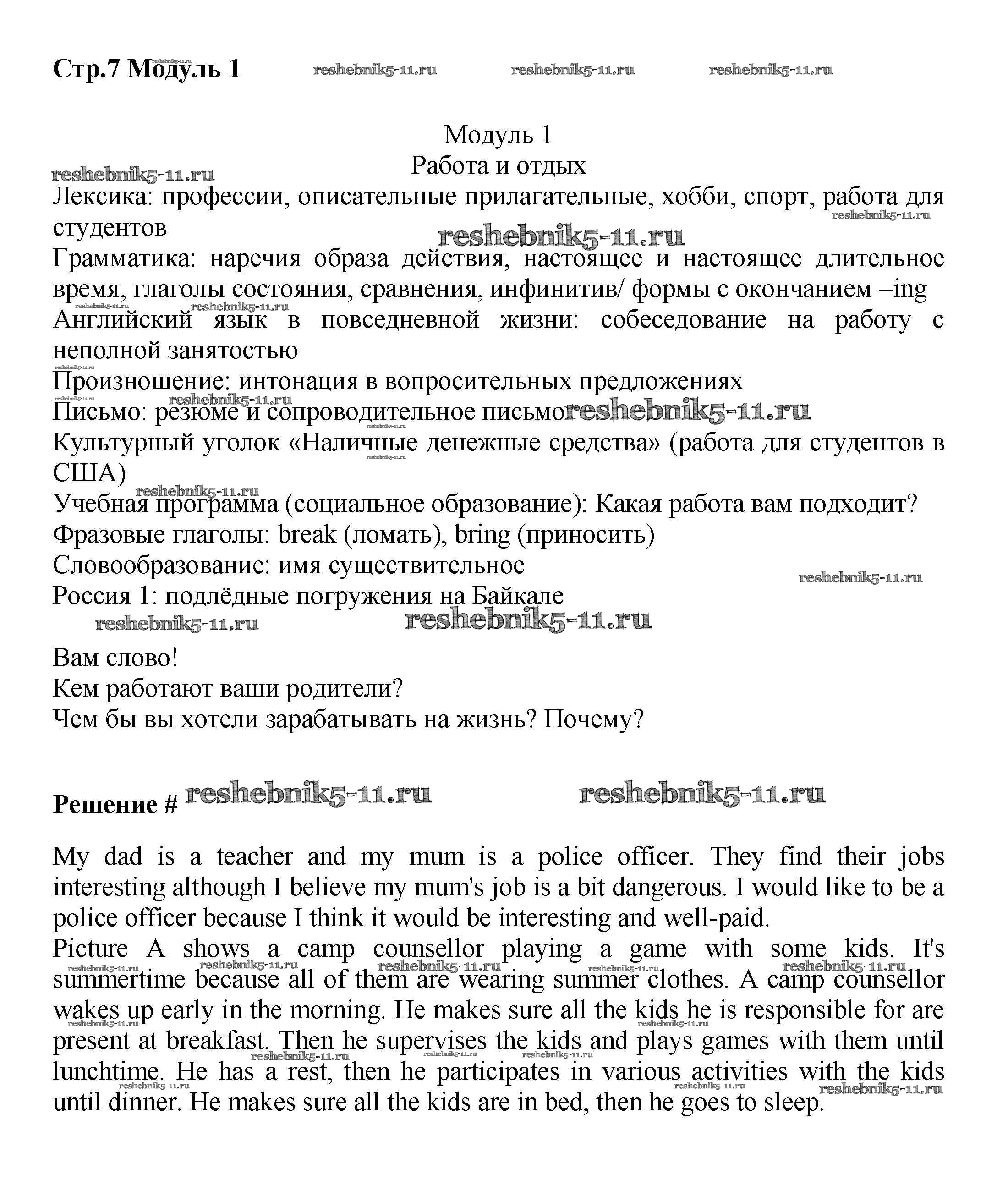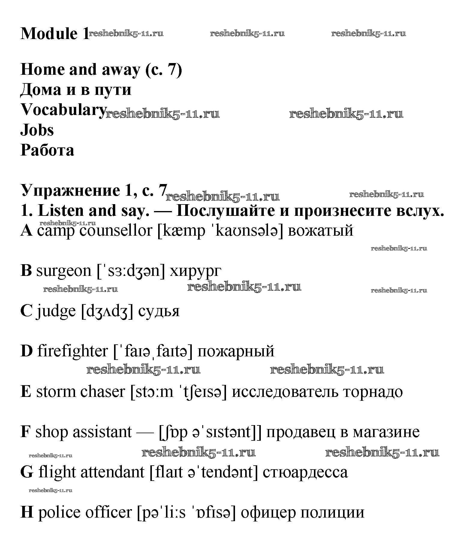 Готовая домашняя работа с ответами по Английскому языку за 7 класс Баранова, Дули, Копылова Учебник Starlight Углубленный уровень Просвещение 2017 ФГОС - Module 1. Work & Play стр.7