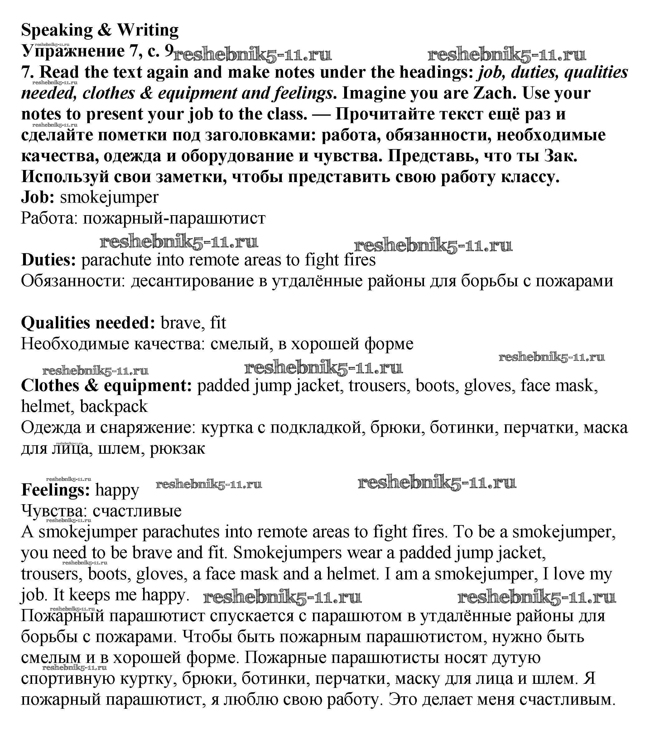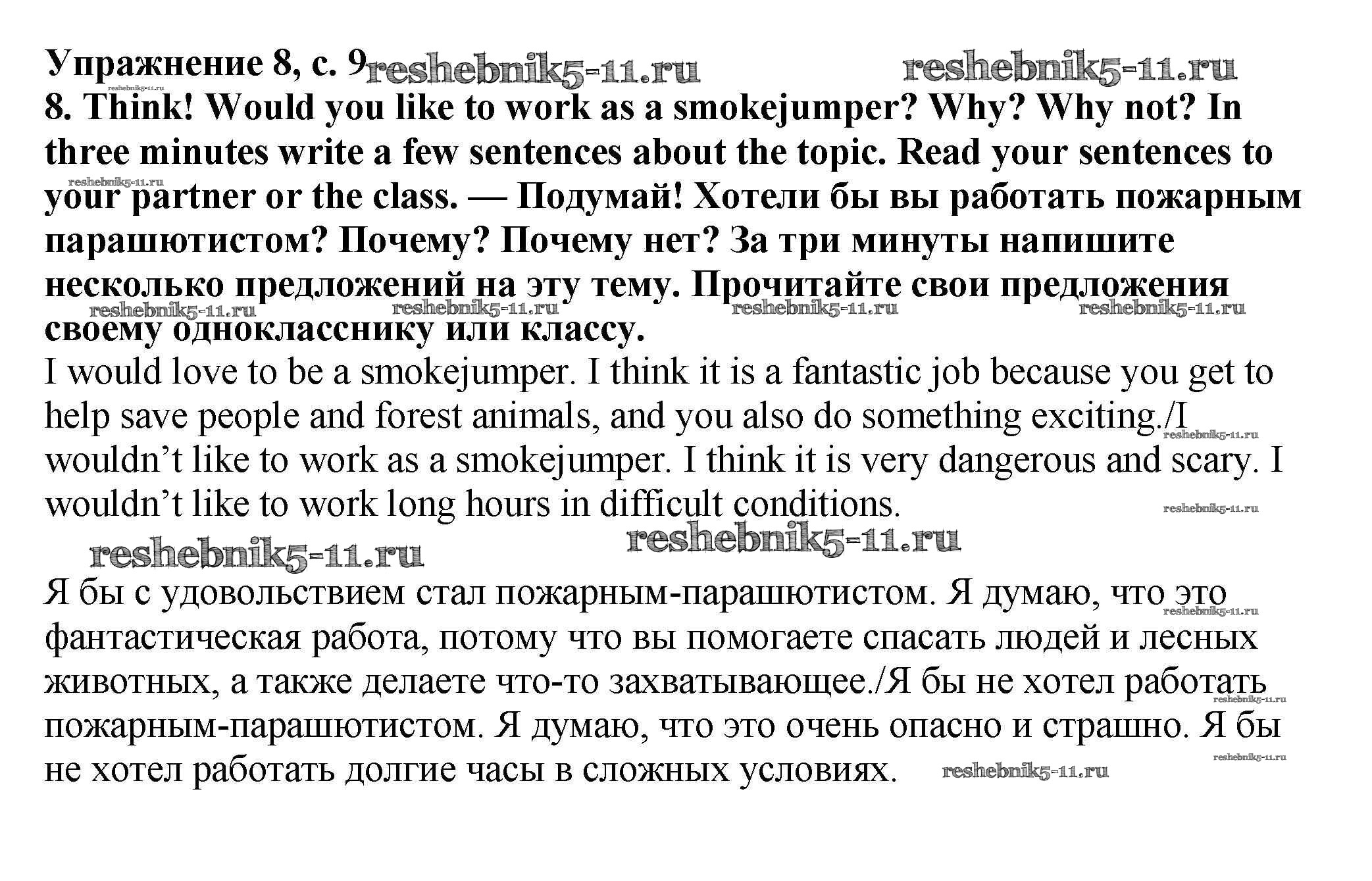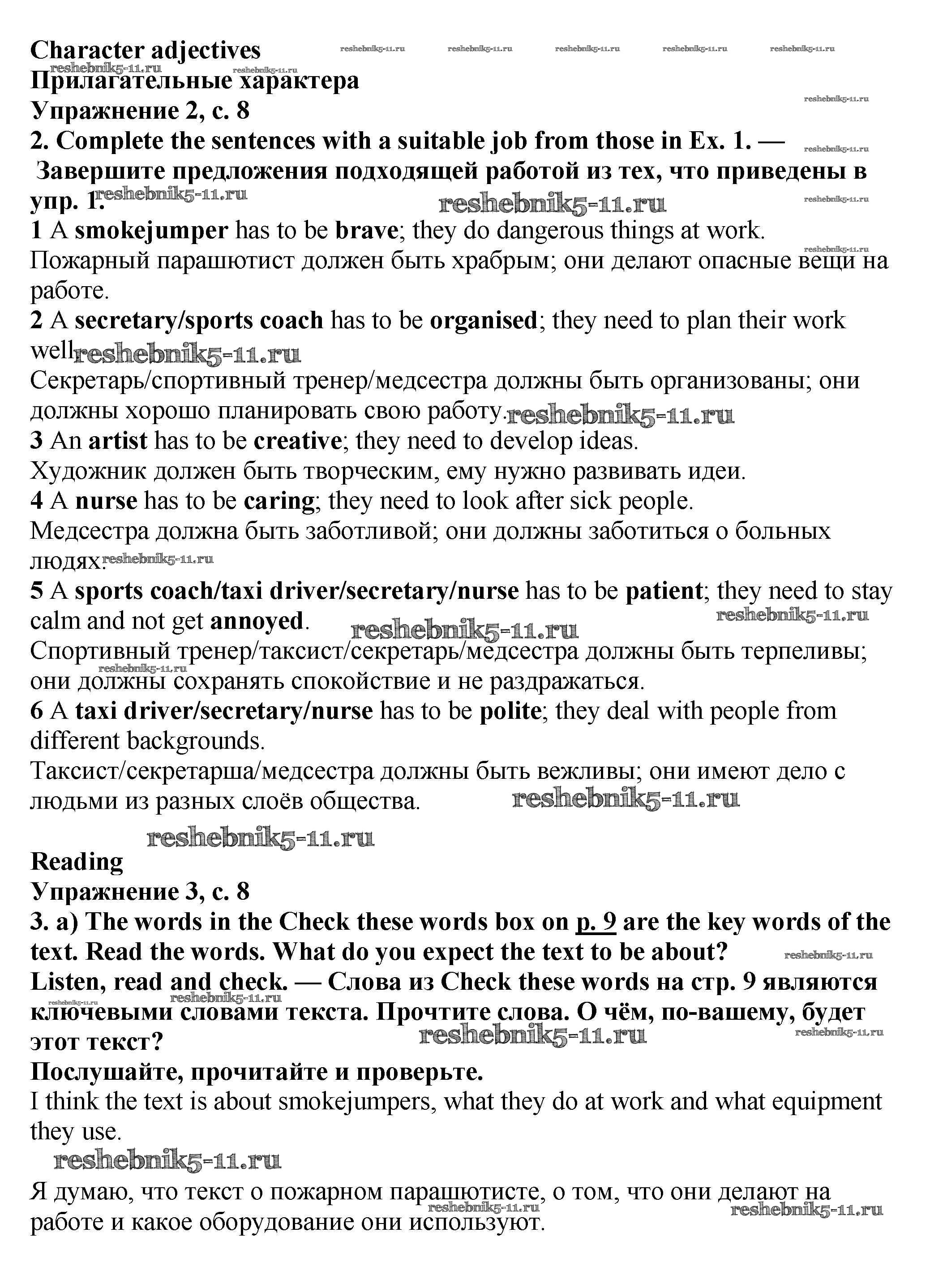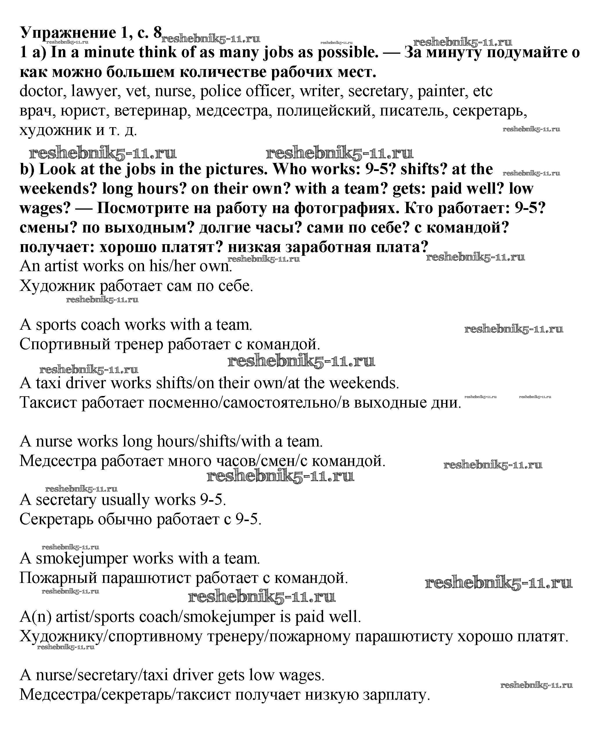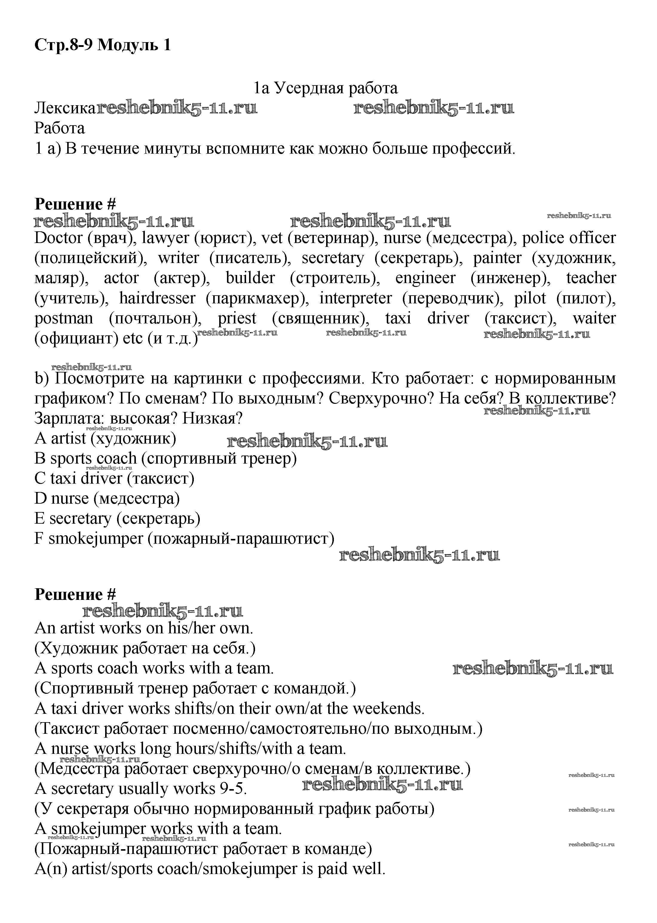 Готовая домашняя работа с ответами по Английскому языку за 7 класс Баранова, Дули, Копылова Учебник Starlight Углубленный уровень Просвещение 2017 ФГОС - Module 1. Work & Play стр.8-9