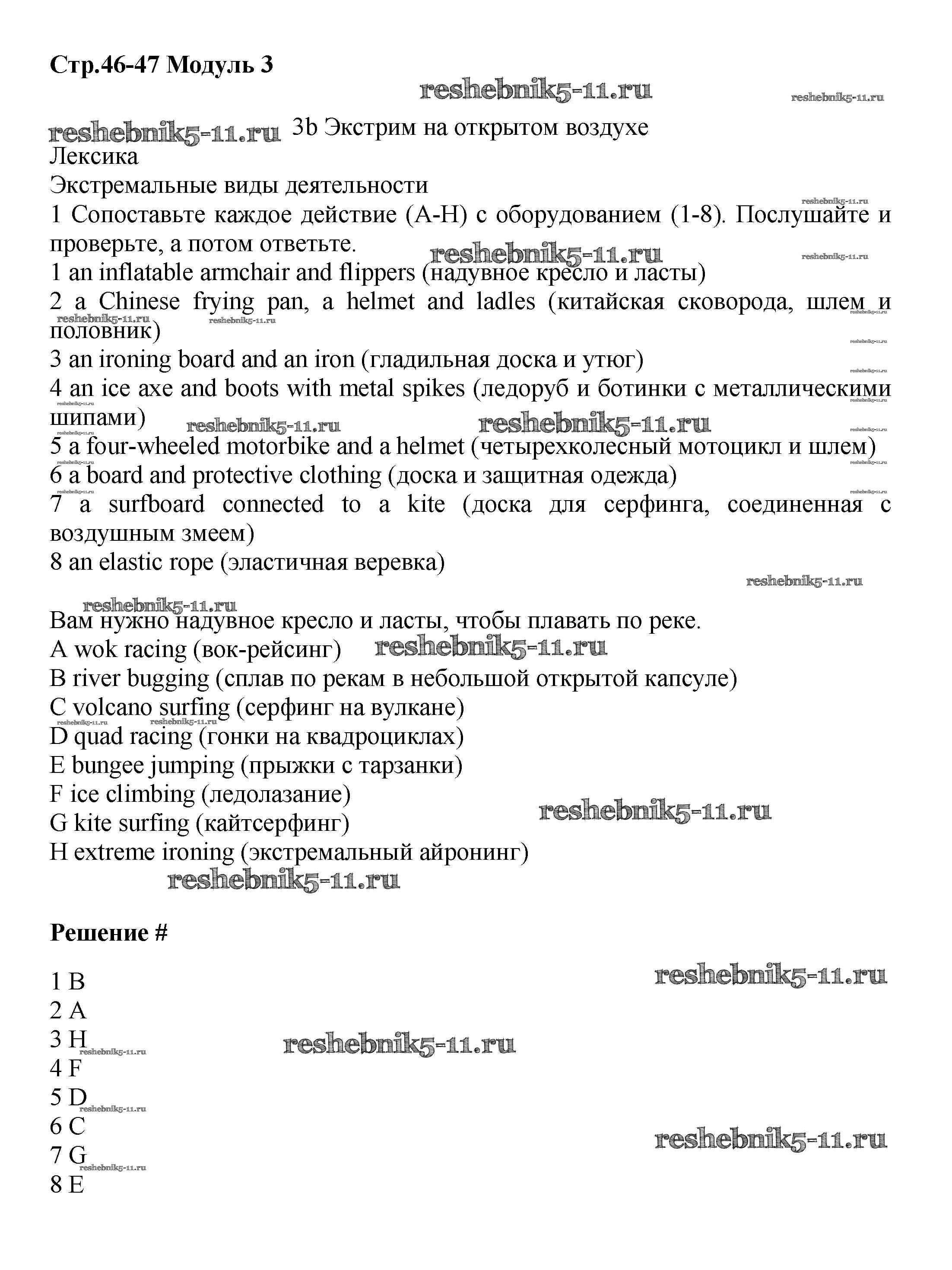Готовая домашняя работа с ответами по Английскому языку за 7 класс Баранова, Дули, Копылова Учебник Starlight Углубленный уровень Просвещение 2017 ФГОС - Module 3. Mother Nature стр.46-47