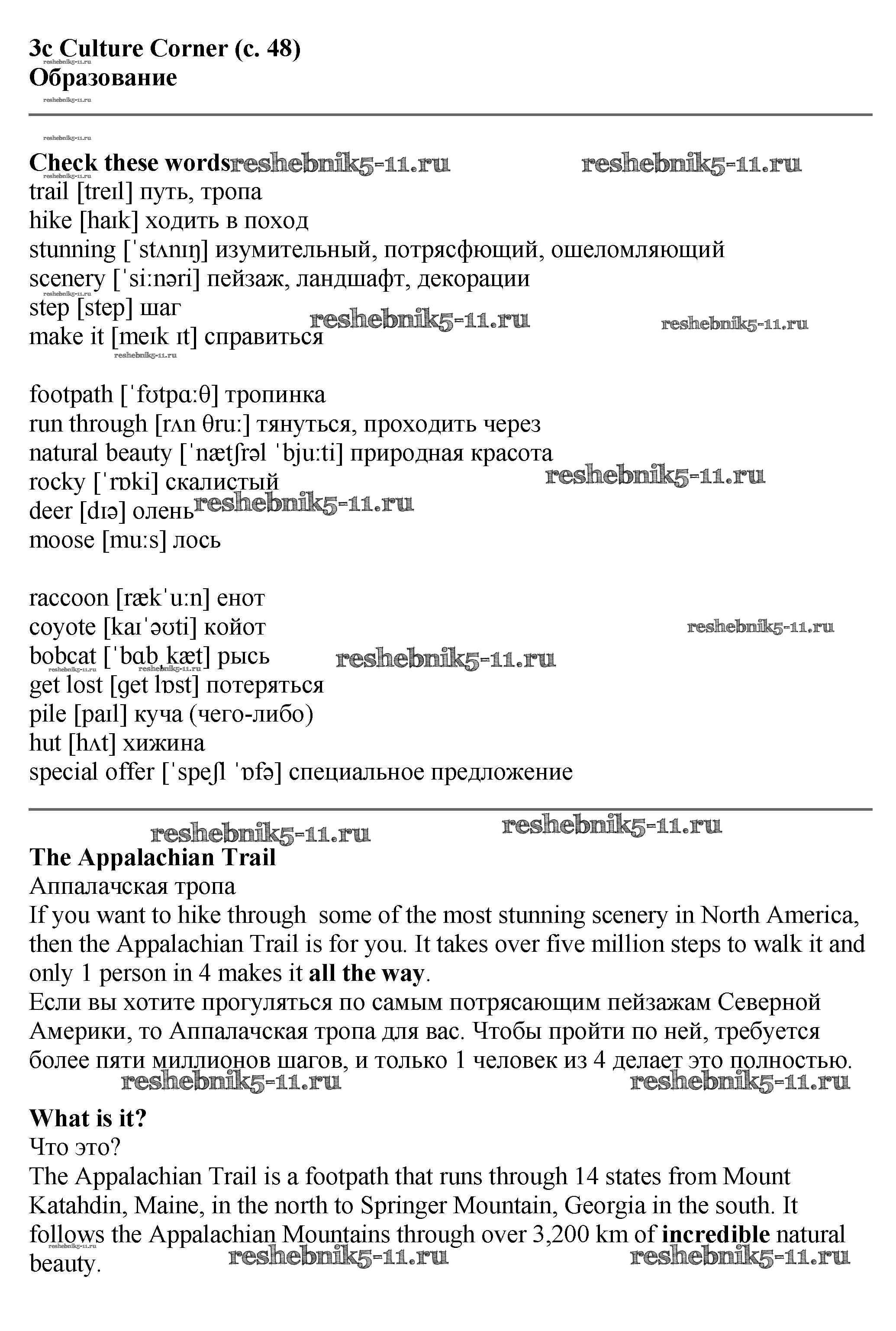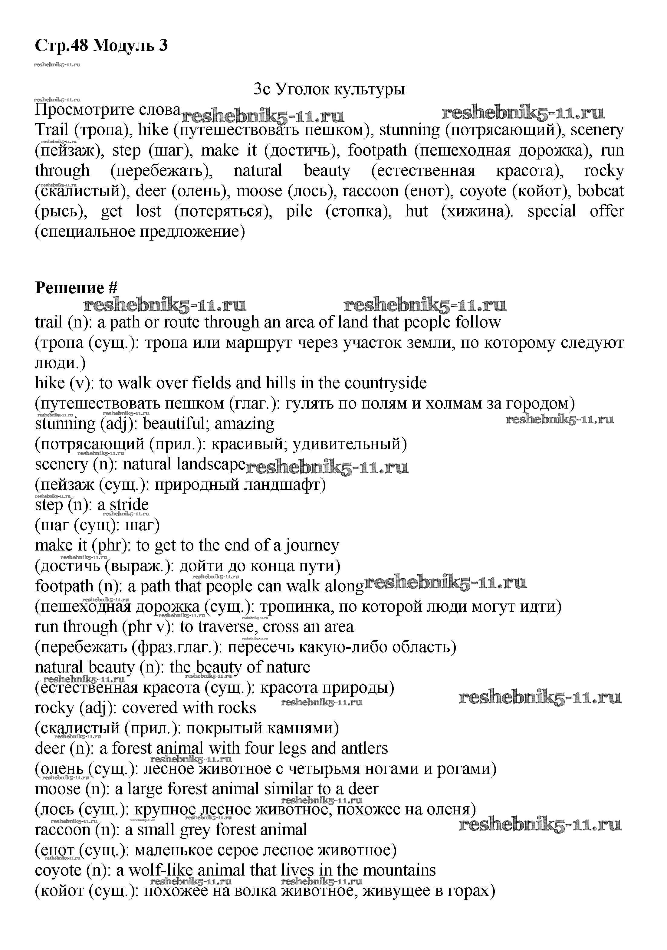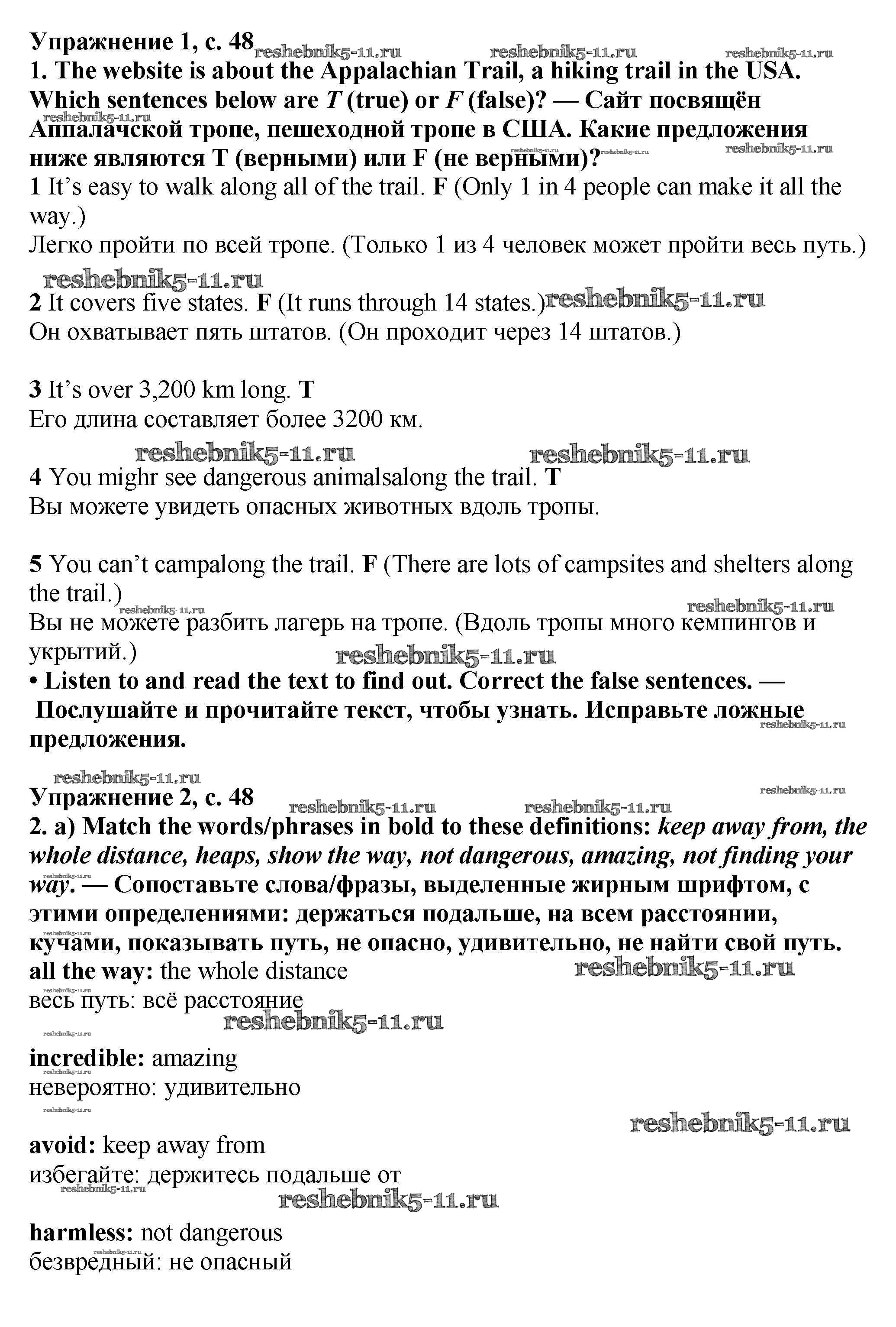 Готовая домашняя работа с ответами по Английскому языку за 7 класс Баранова, Дули, Копылова Учебник Starlight Углубленный уровень Просвещение 2017 ФГОС - Module 3. Mother Nature стр.48