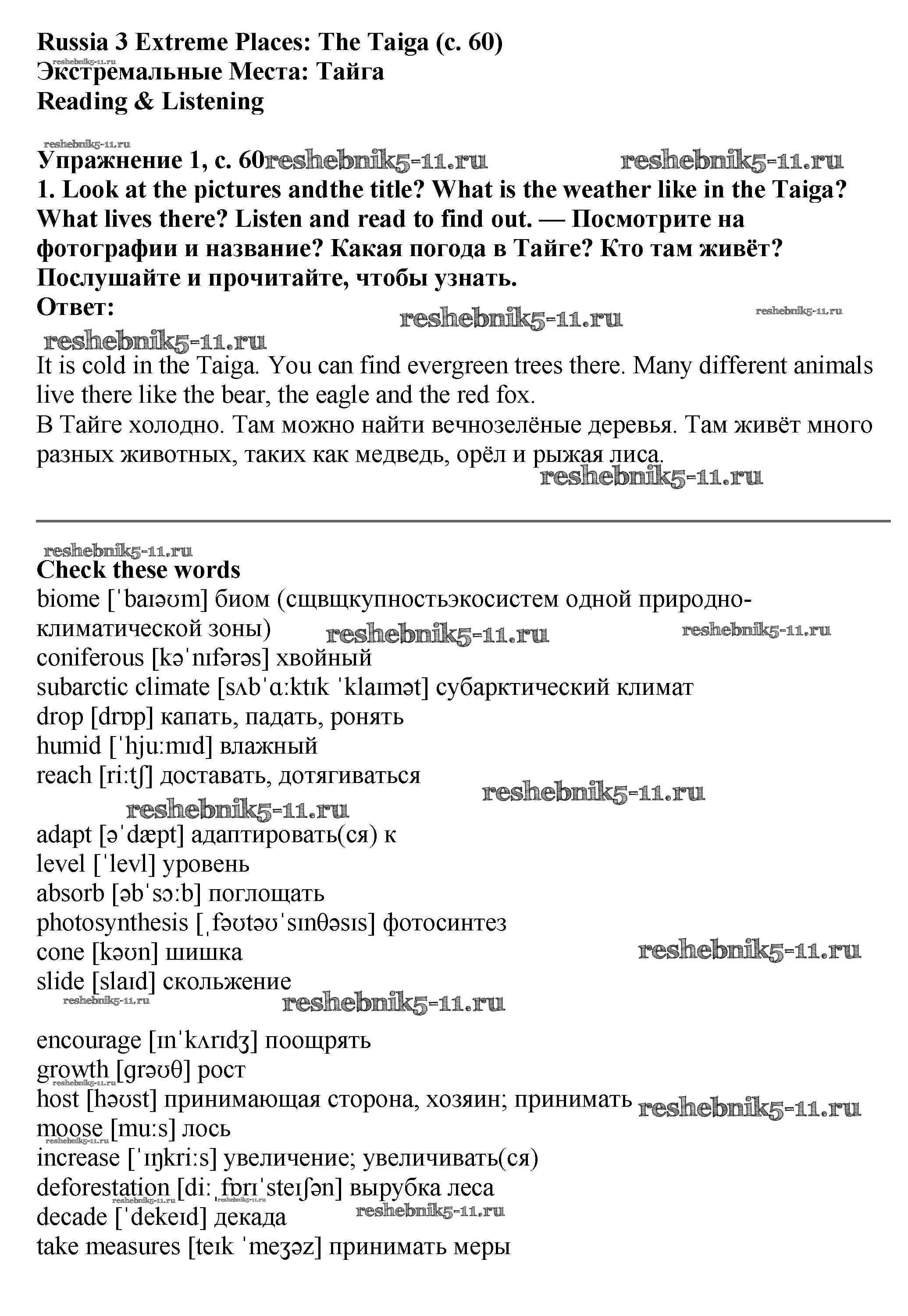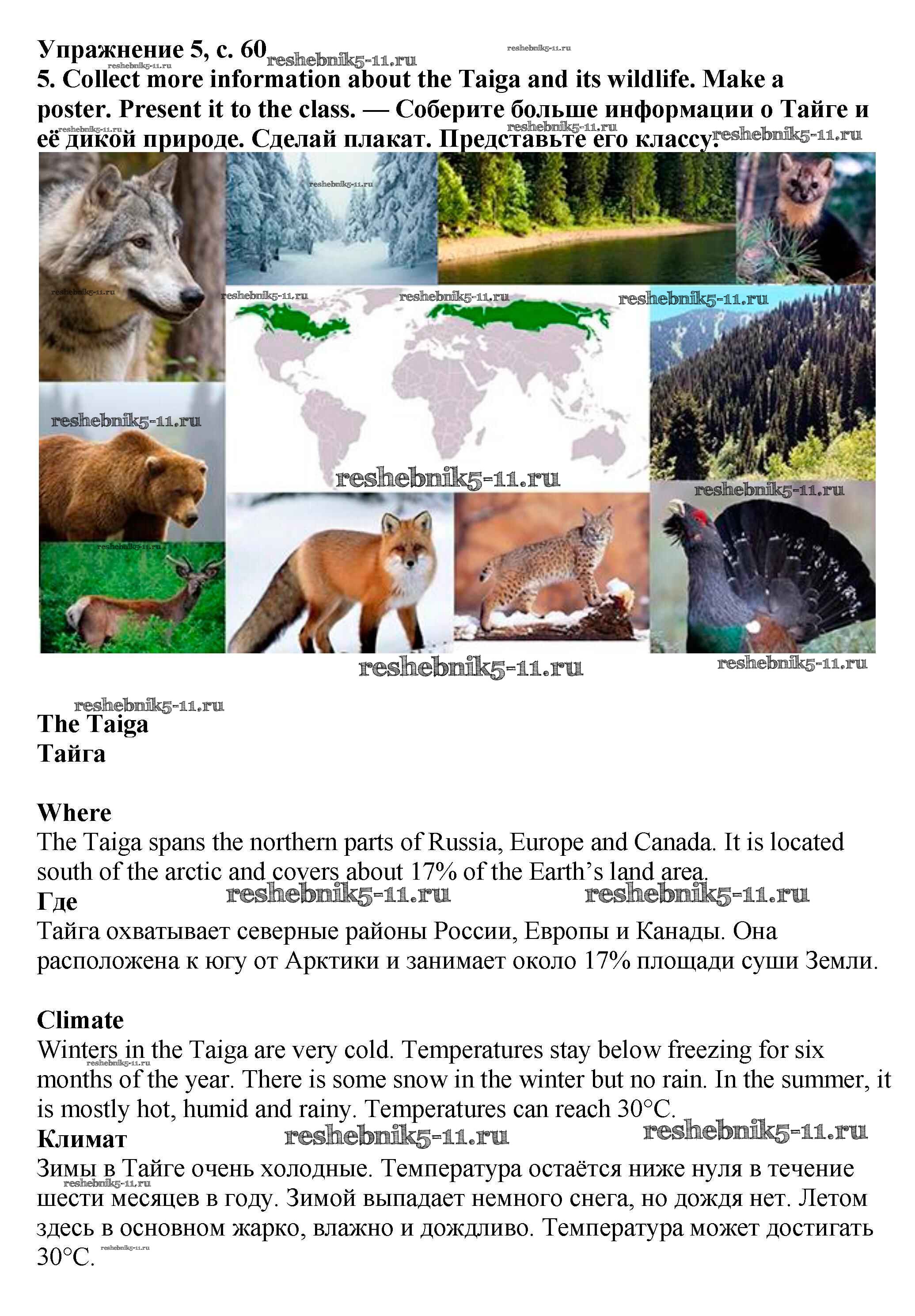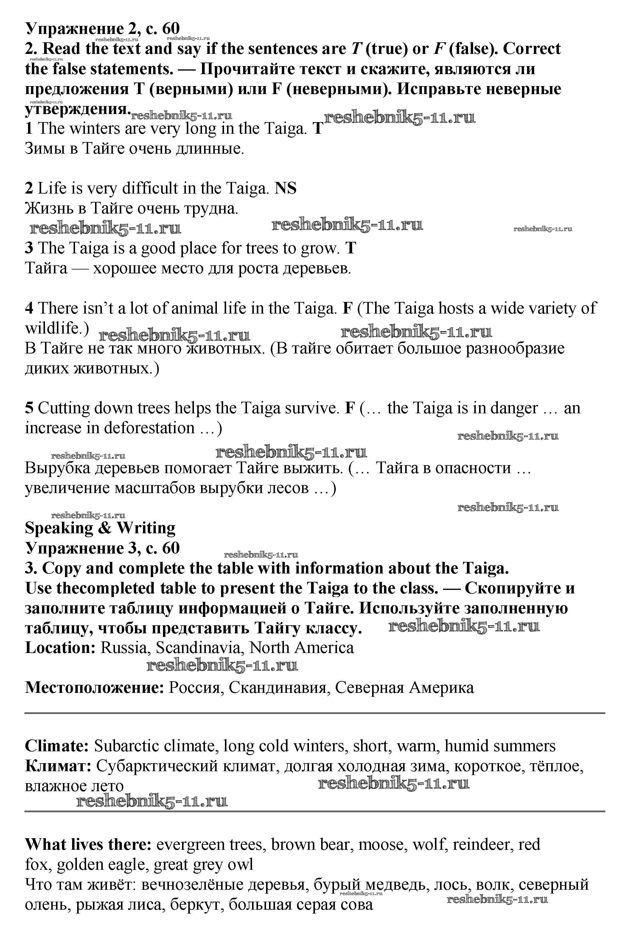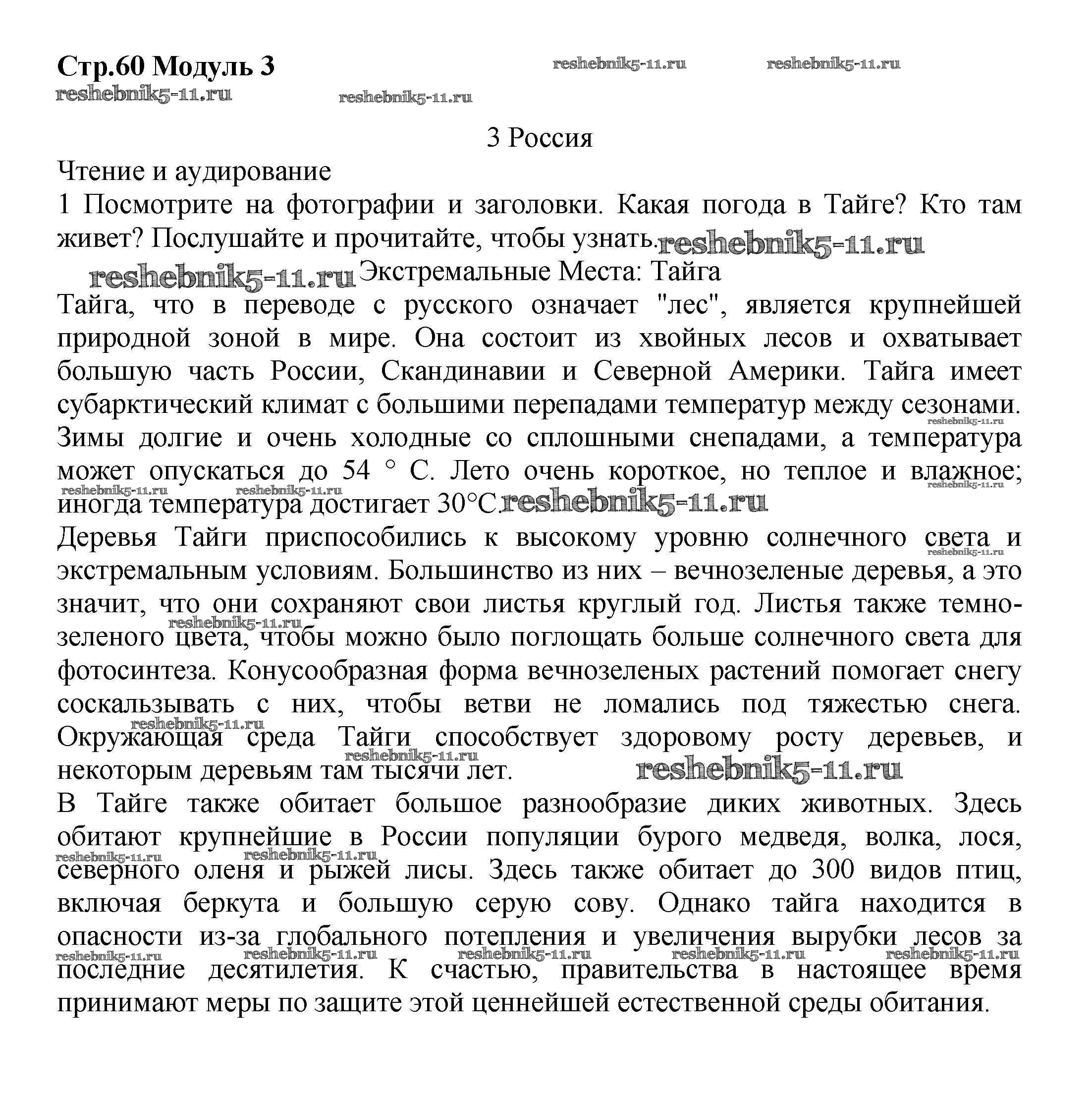 Готовая домашняя работа с ответами по Английскому языку за 7 класс Баранова, Дули, Копылова Учебник Starlight Углубленный уровень Просвещение 2017 ФГОС - Module 3. Mother Nature стр.60