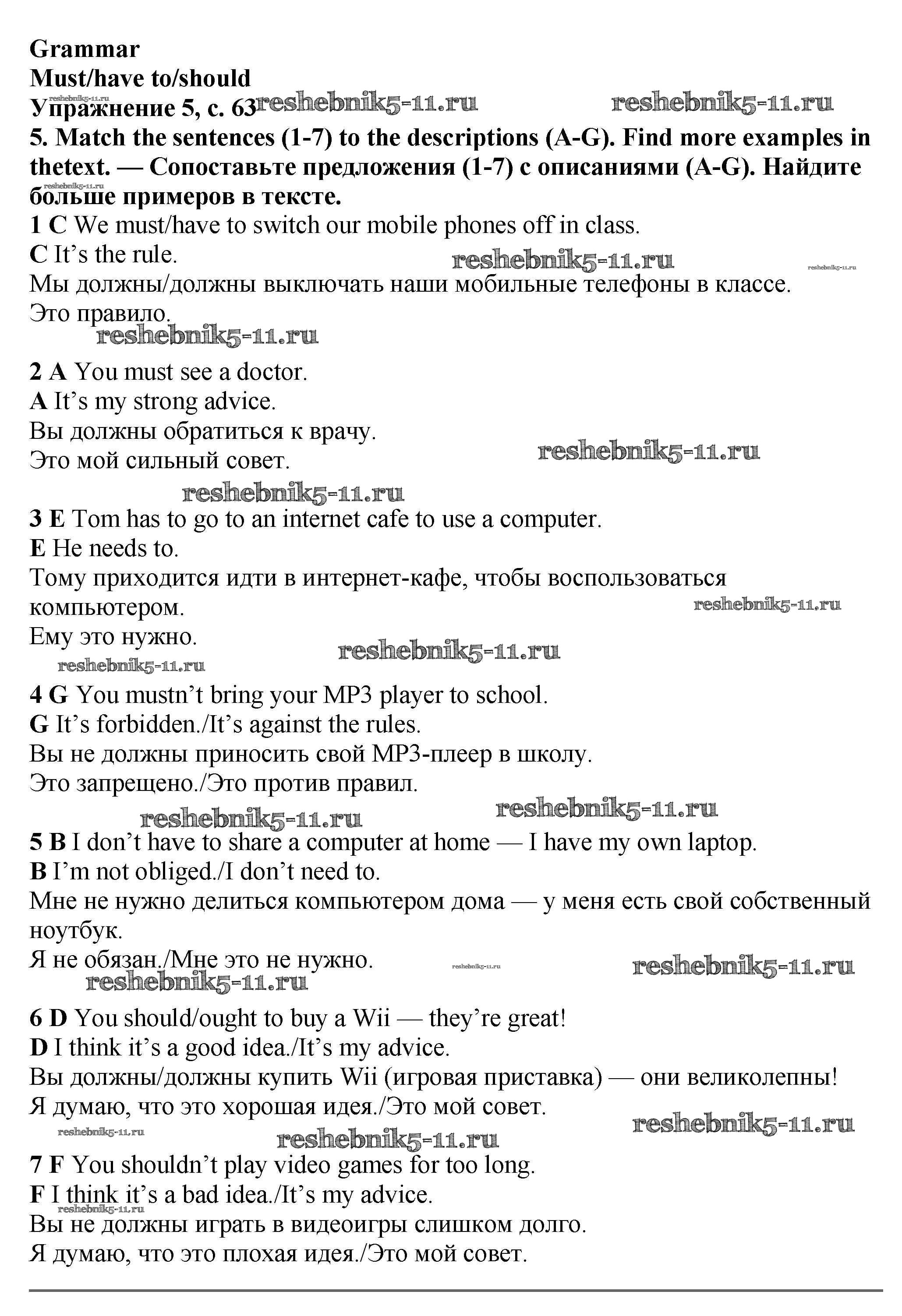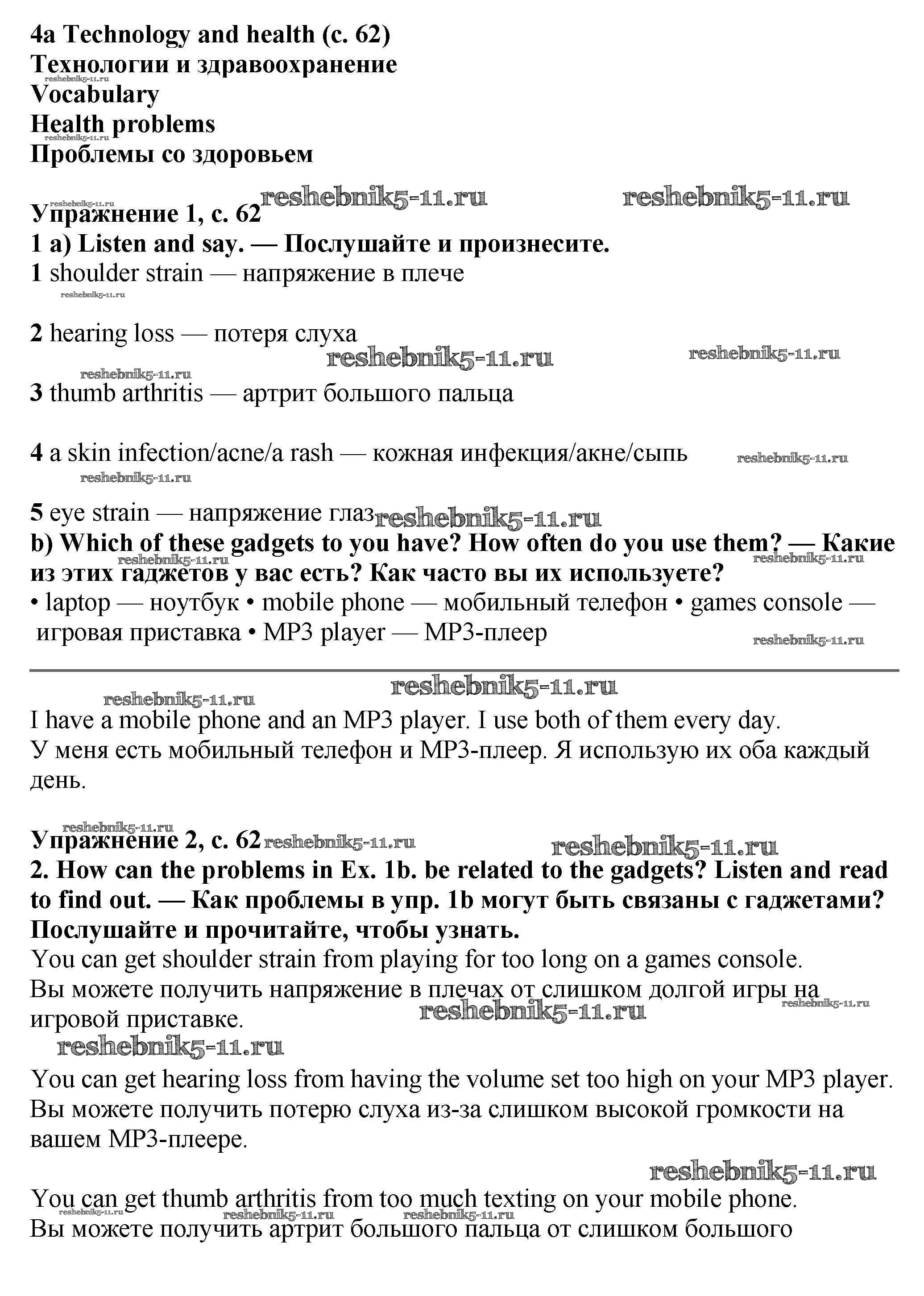 Готовая домашняя работа с ответами по Английскому языку за 7 класс Баранова, Дули, Копылова Учебник Starlight Углубленный уровень Просвещение 2017 ФГОС - Module 4. Healthy mind, healthy body стр.62-63
