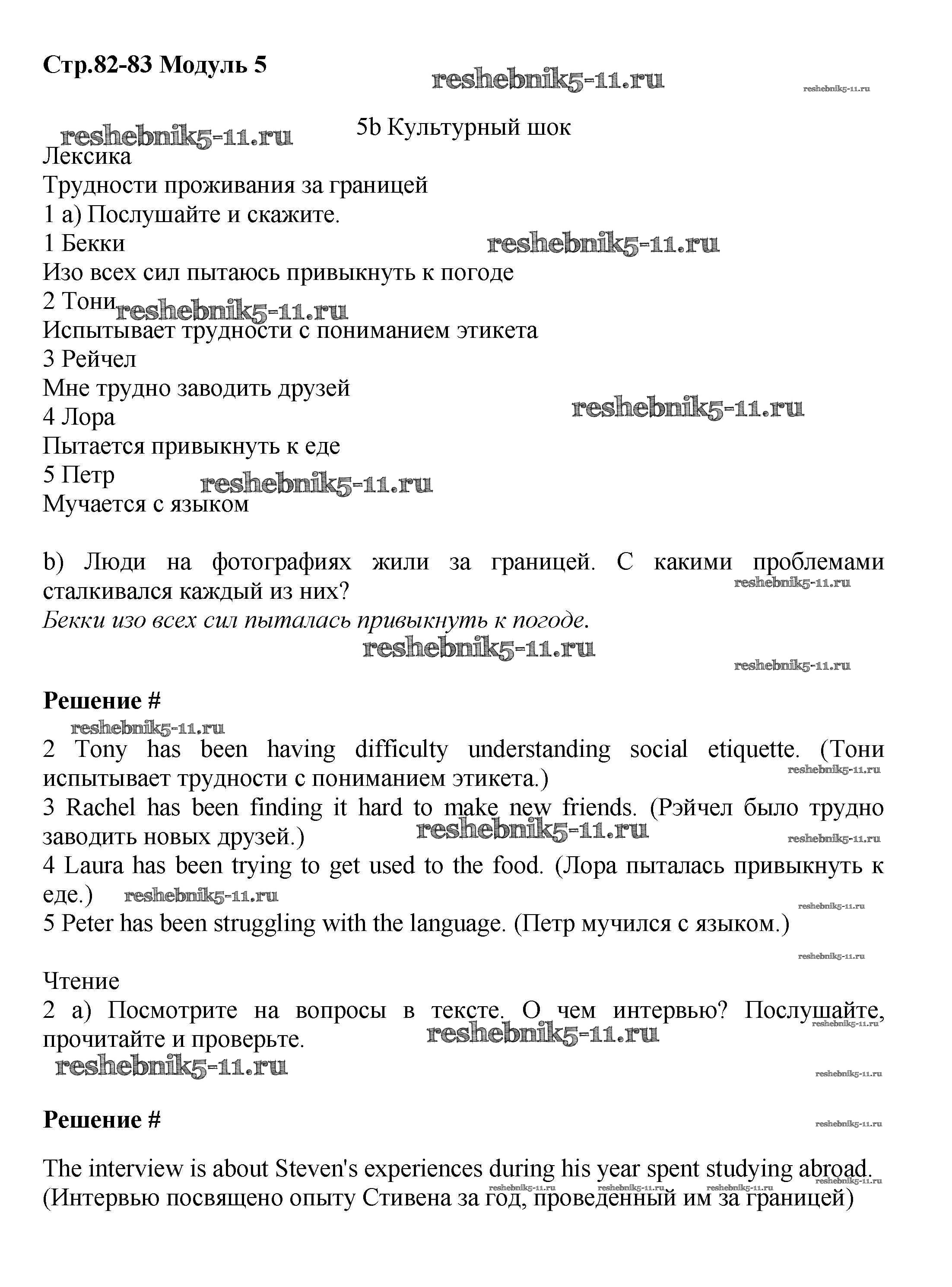 Готовая домашняя работа с ответами по Английскому языку за 7 класс Баранова, Дули, Копылова Учебник Starlight Углубленный уровень Просвещение 2017 ФГОС - Module 5. Life experiences стр.82-83