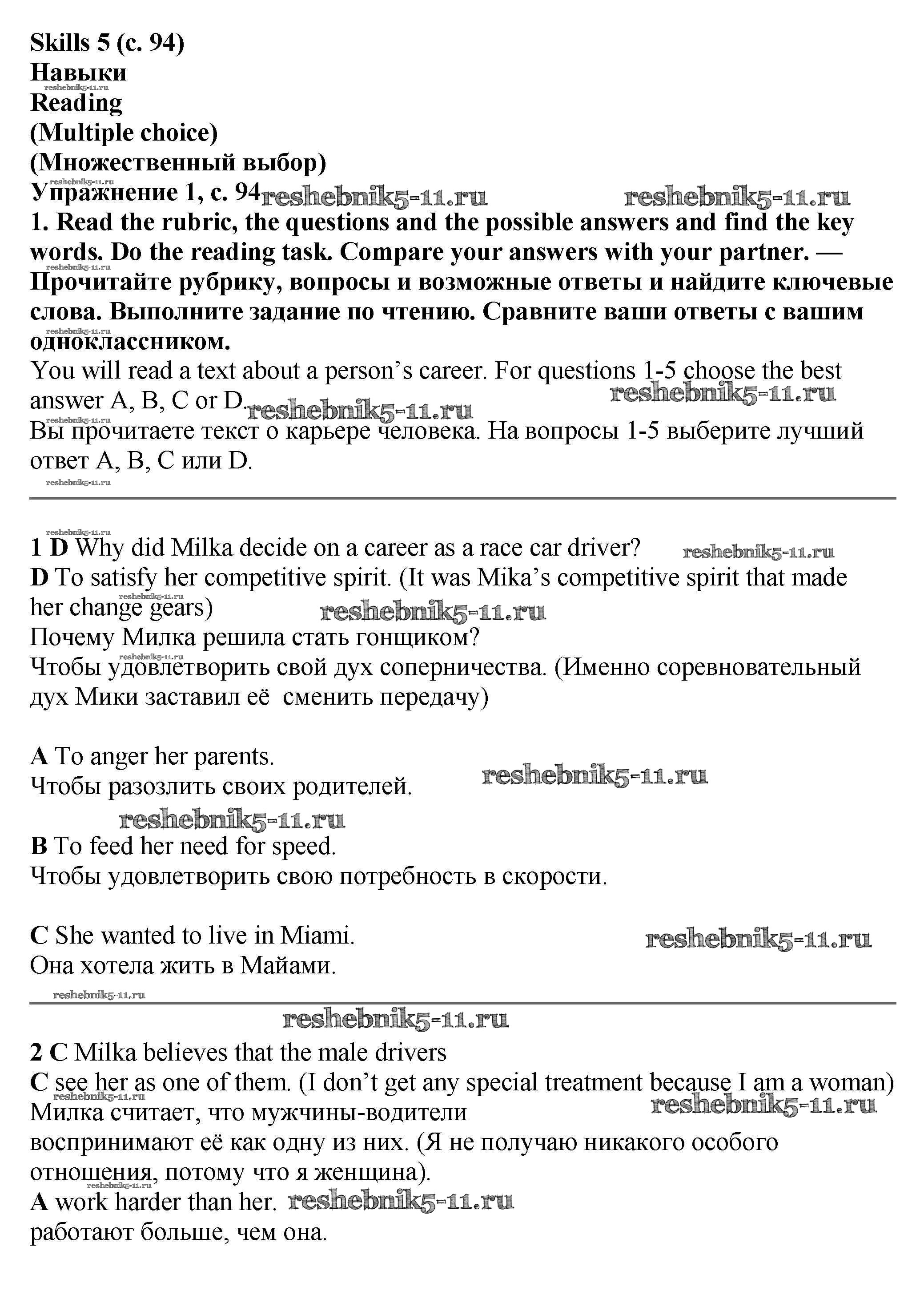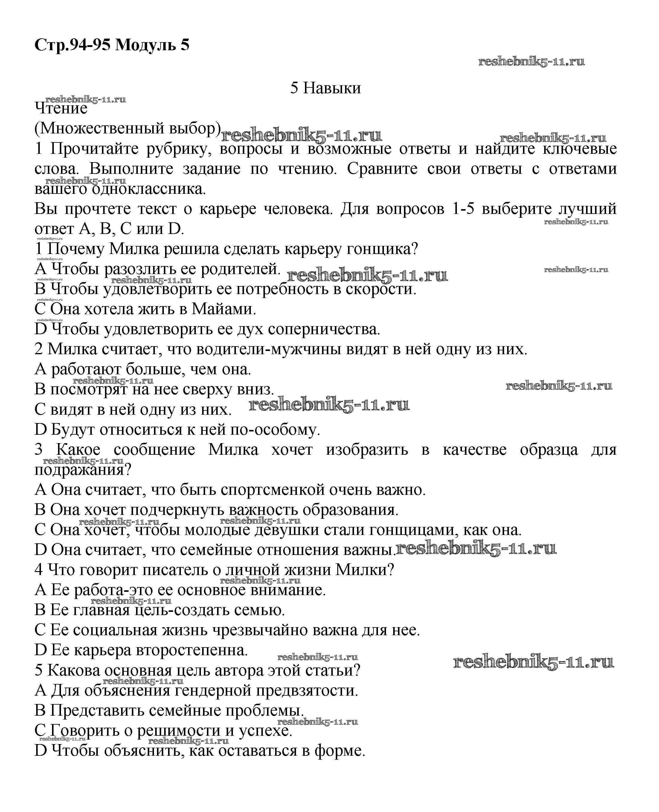Готовая домашняя работа с ответами по Английскому языку за 7 класс Баранова, Дули, Копылова Учебник Starlight Углубленный уровень Просвещение 2017 ФГОС - Module 5. Life experiences стр.94-95