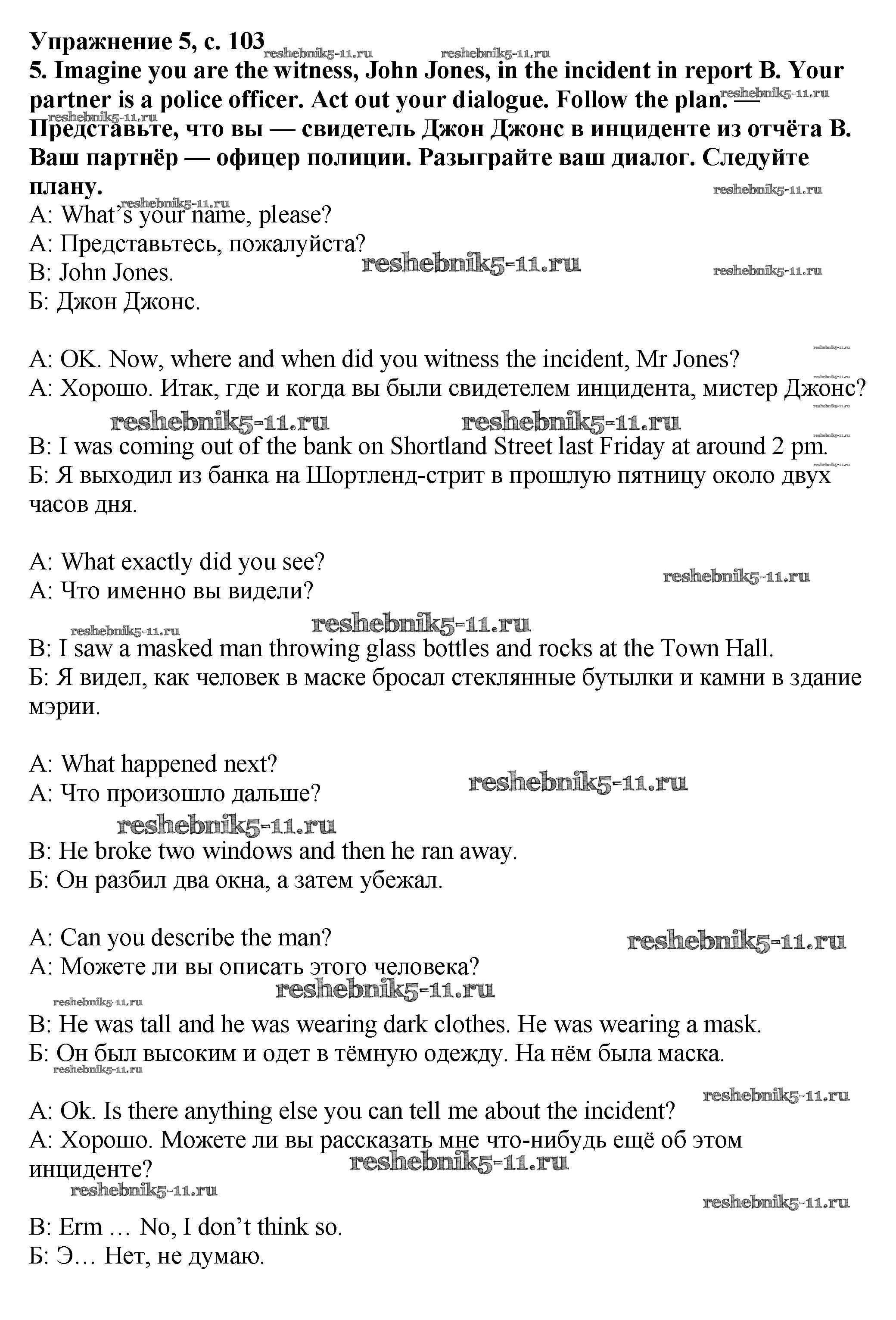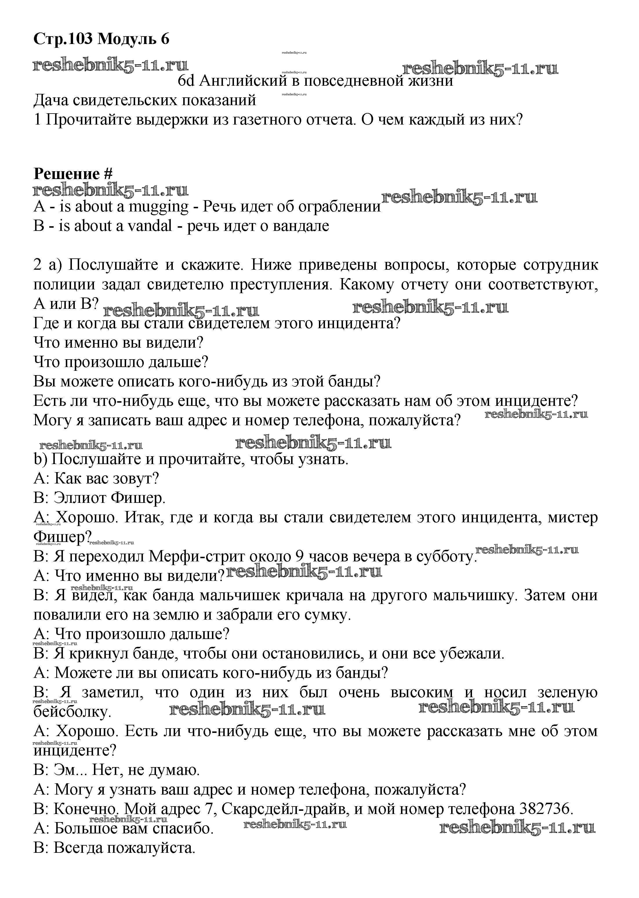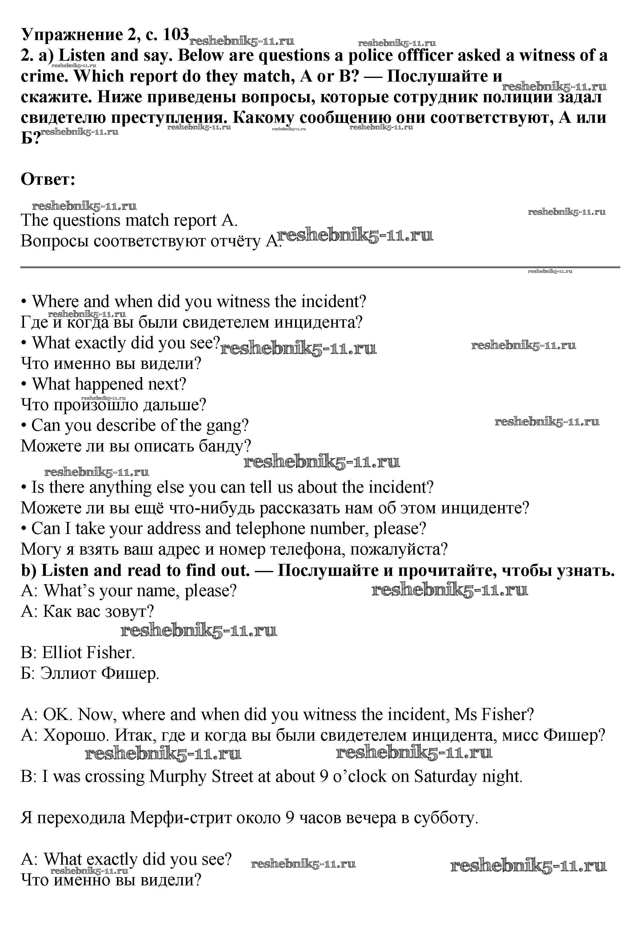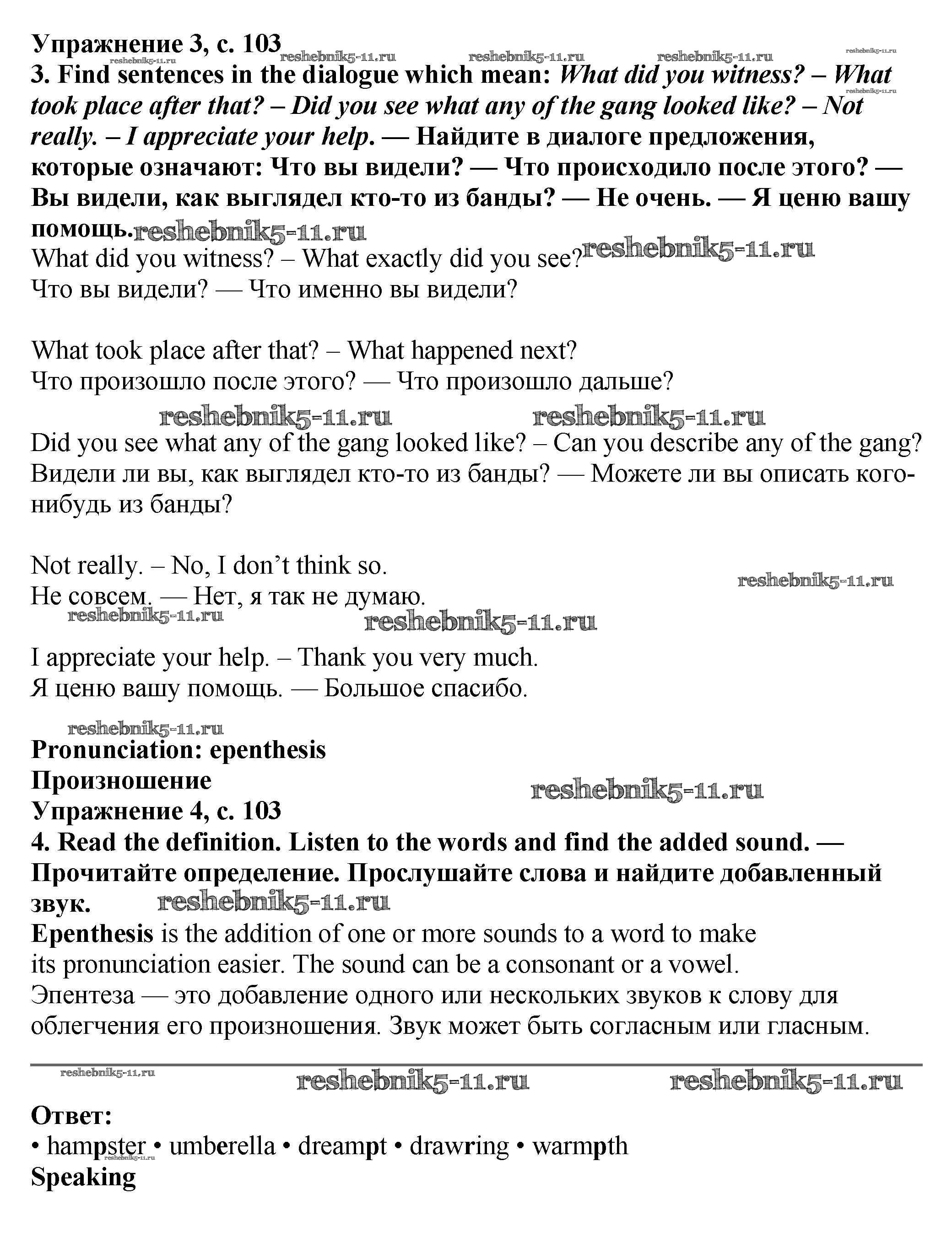 Готовая домашняя работа с ответами по Английскому языку за 7 класс Баранова, Дули, Копылова Учебник Starlight Углубленный уровень Просвещение 2017 ФГОС - Module 6. Crime & community стр.103