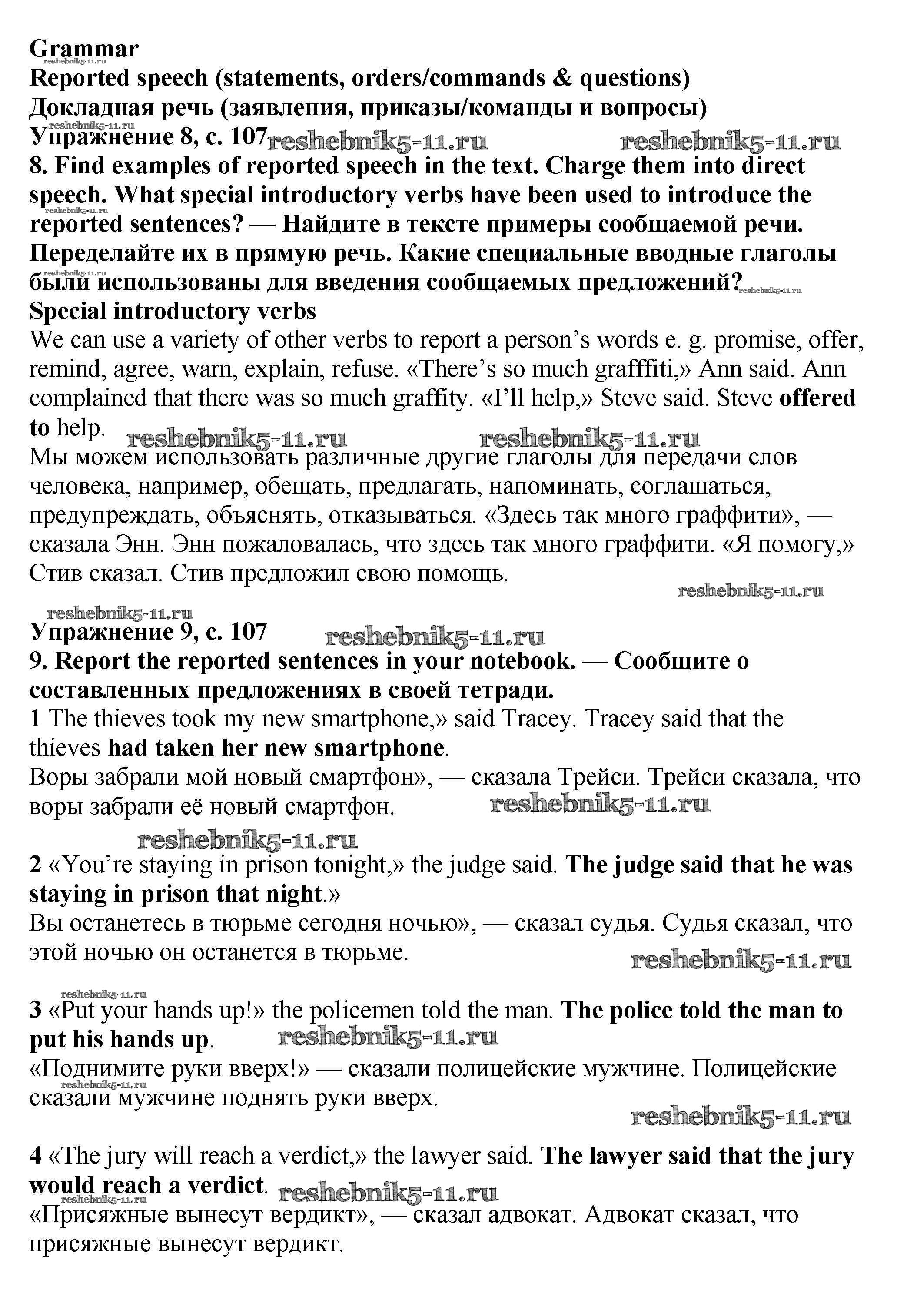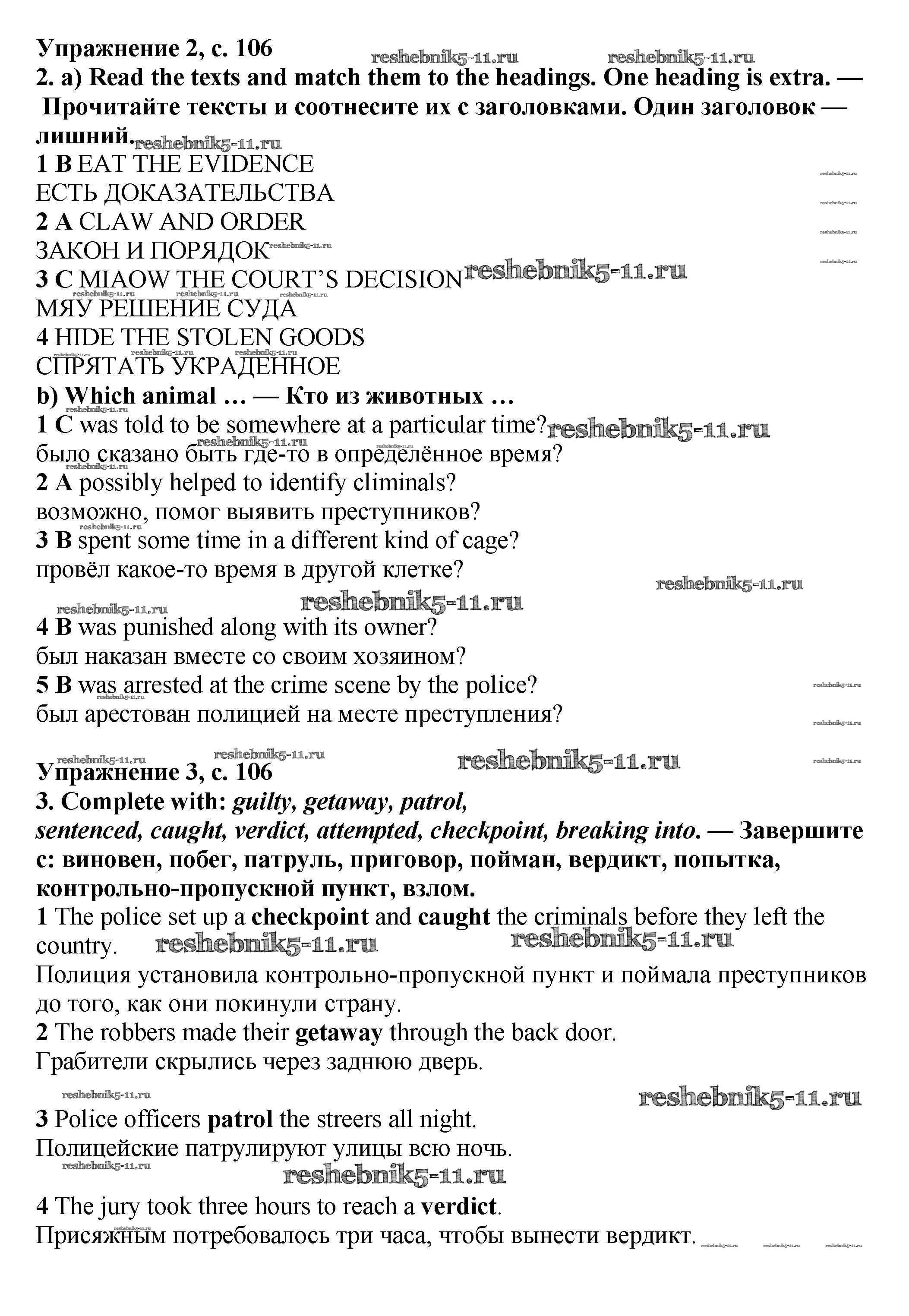 Готовая домашняя работа с ответами по Английскому языку за 7 класс Баранова, Дули, Копылова Учебник Starlight Углубленный уровень Просвещение 2017 ФГОС - Module 6. Crime & community стр.106-107