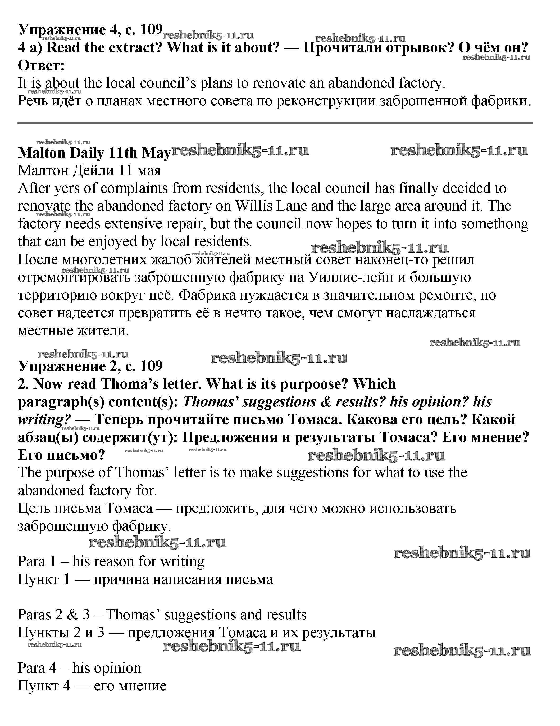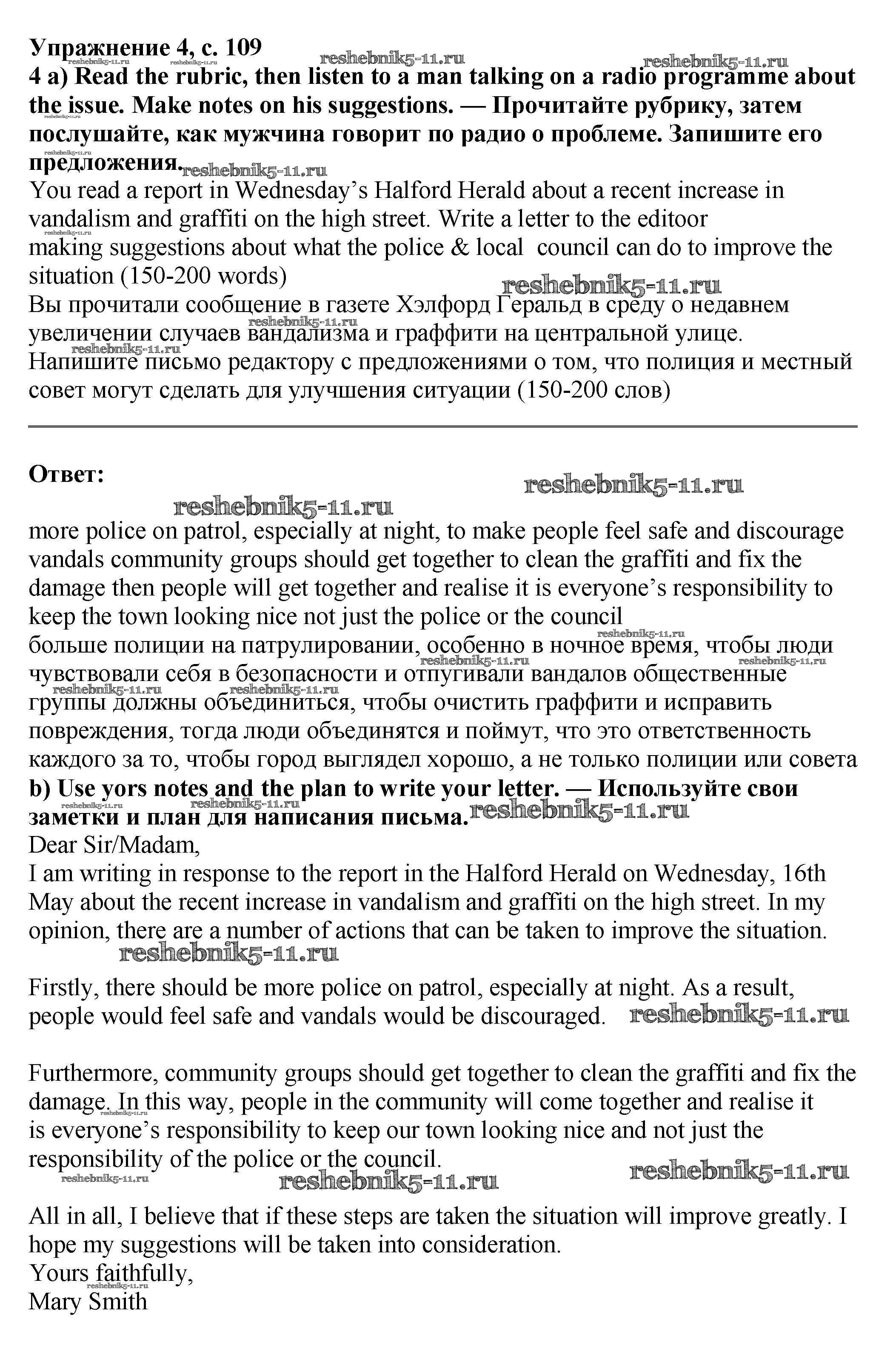 Готовая домашняя работа с ответами по Английскому языку за 7 класс Баранова, Дули, Копылова Учебник Starlight Углубленный уровень Просвещение 2017 ФГОС - Module 6. Crime & community стр.109