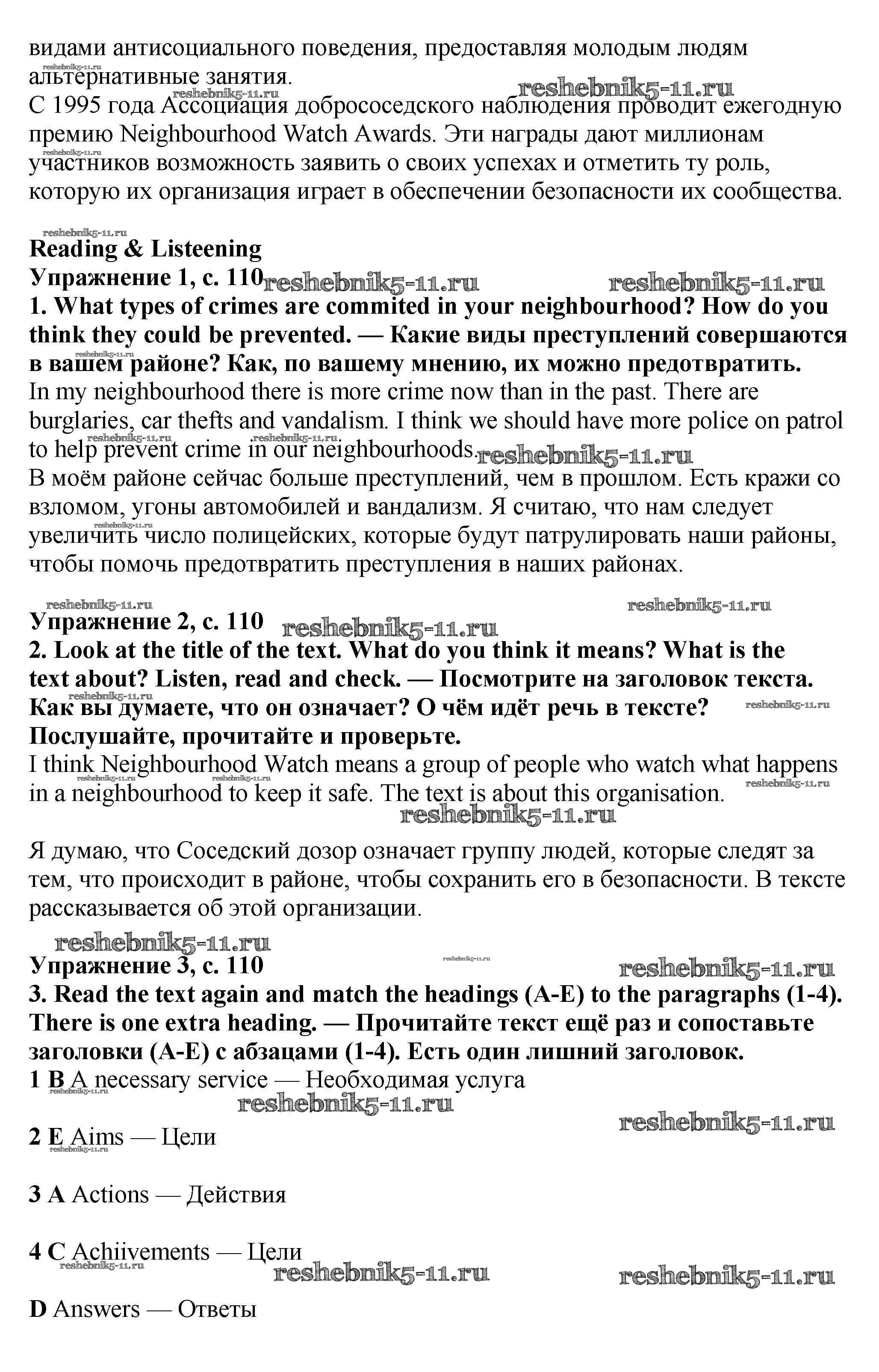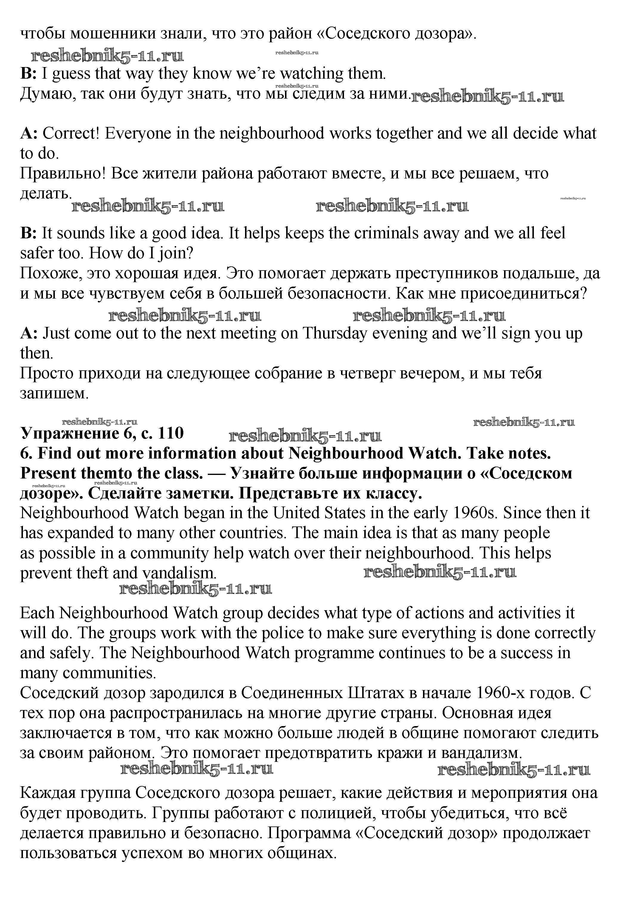 Готовая домашняя работа с ответами по Английскому языку за 7 класс Баранова, Дули, Копылова Учебник Starlight Углубленный уровень Просвещение 2017 ФГОС - Module 6. Crime & community стр.110