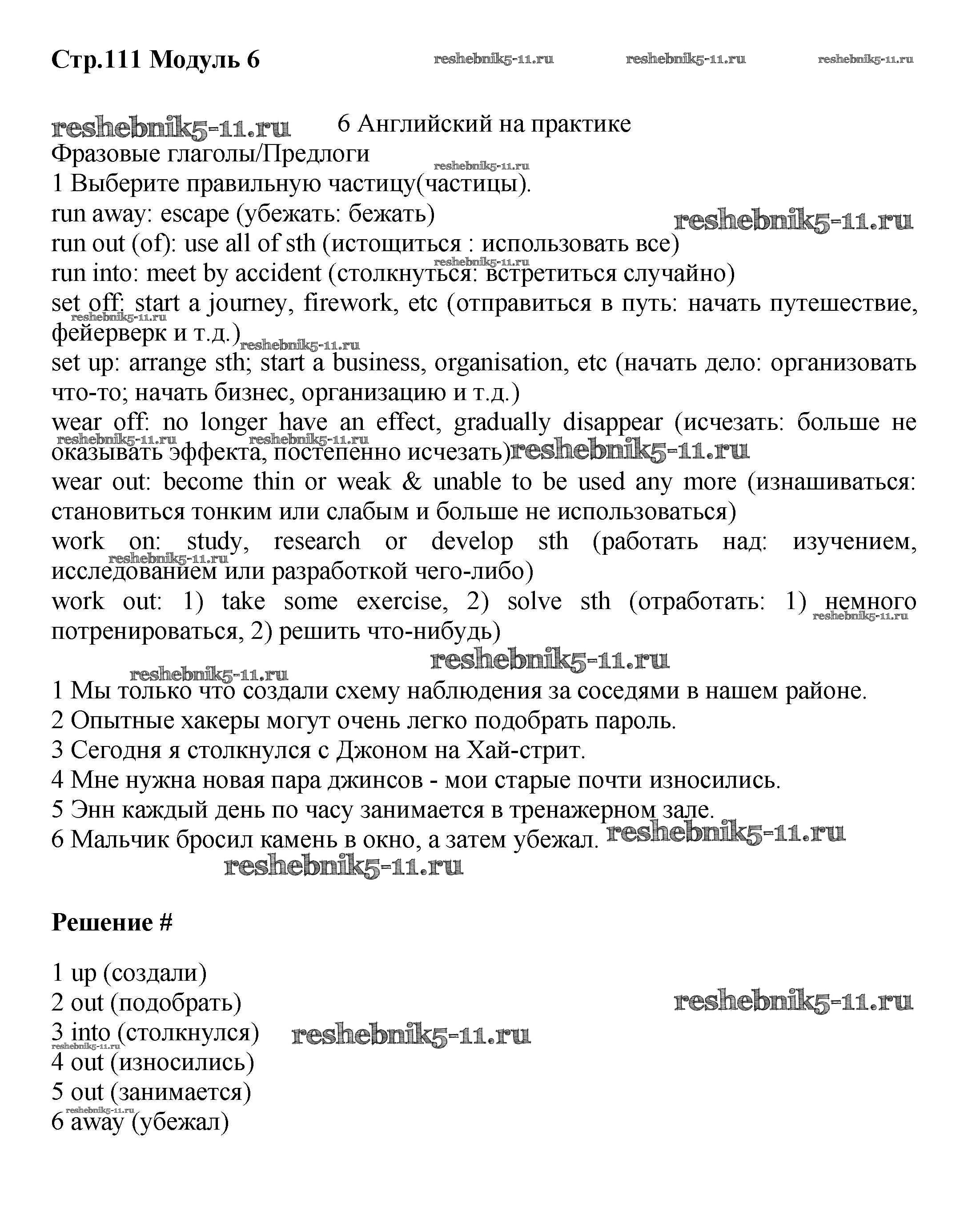 Готовая домашняя работа с ответами по Английскому языку за 7 класс Баранова, Дули, Копылова Учебник Starlight Углубленный уровень Просвещение 2017 ФГОС - Module 6. Crime & community стр.111