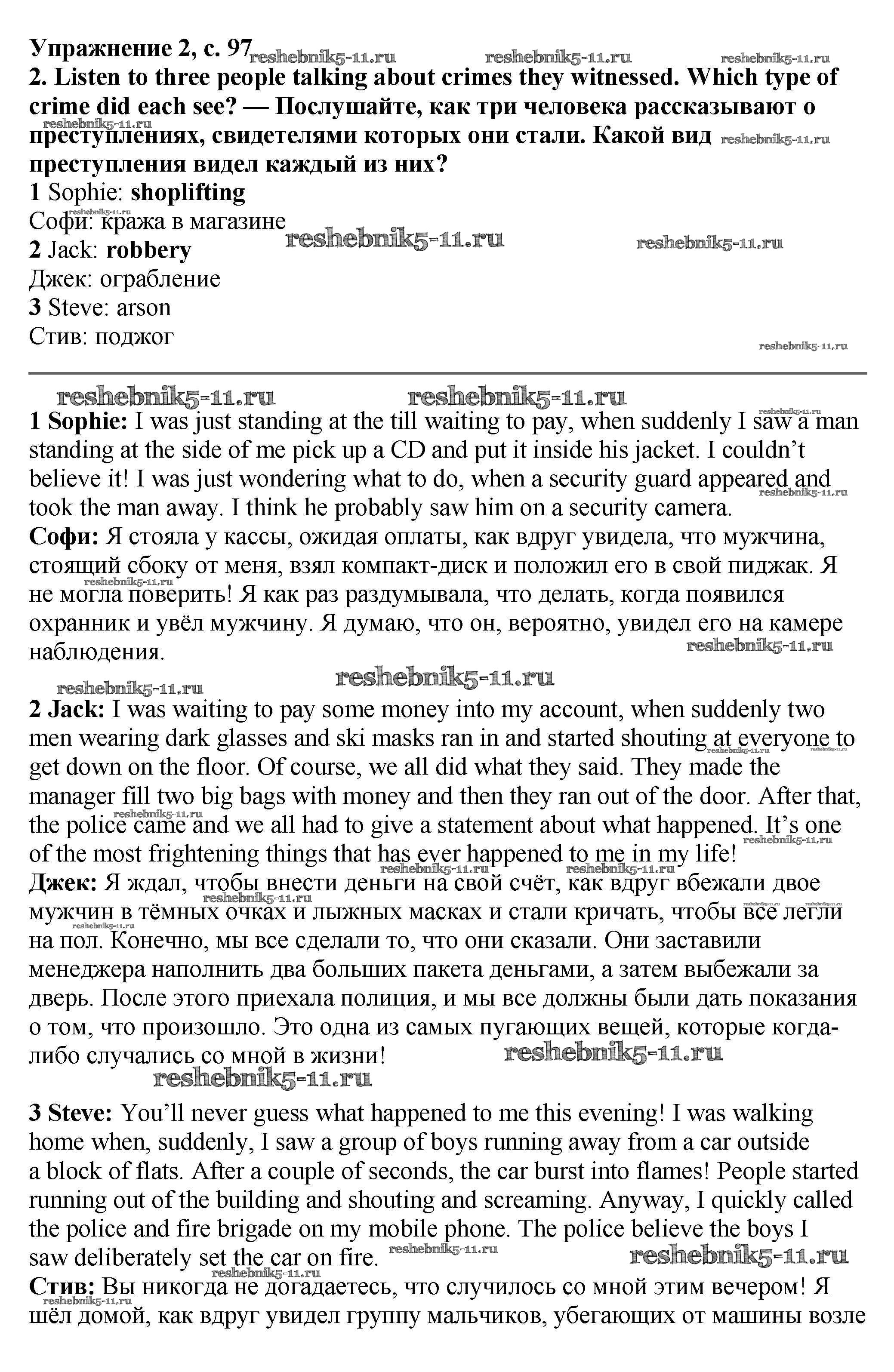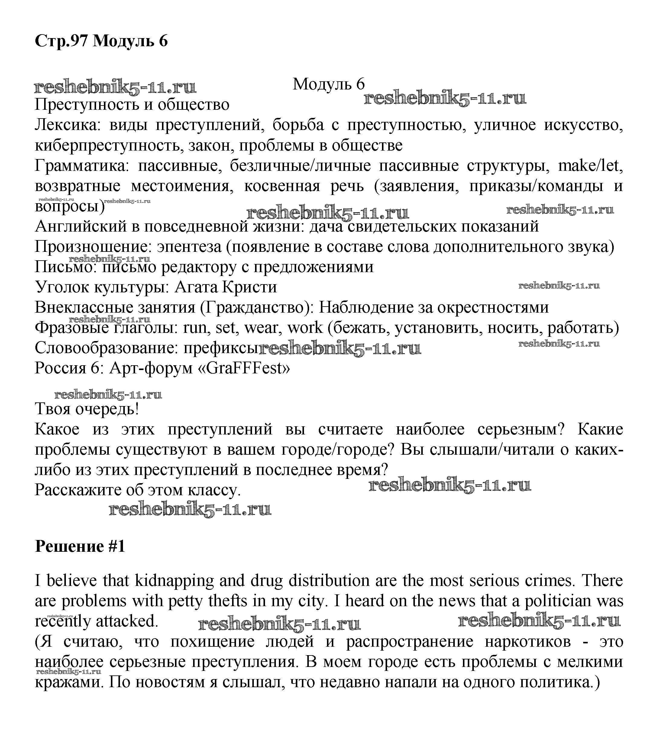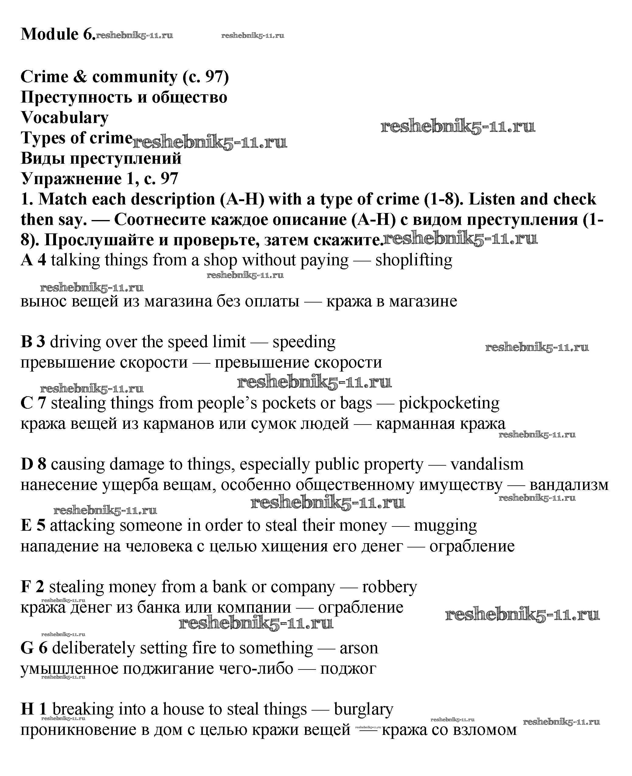 Готовая домашняя работа с ответами по Английскому языку за 7 класс Баранова, Дули, Копылова Учебник Starlight Углубленный уровень Просвещение 2017 ФГОС - Module 6. Crime & community стр.97