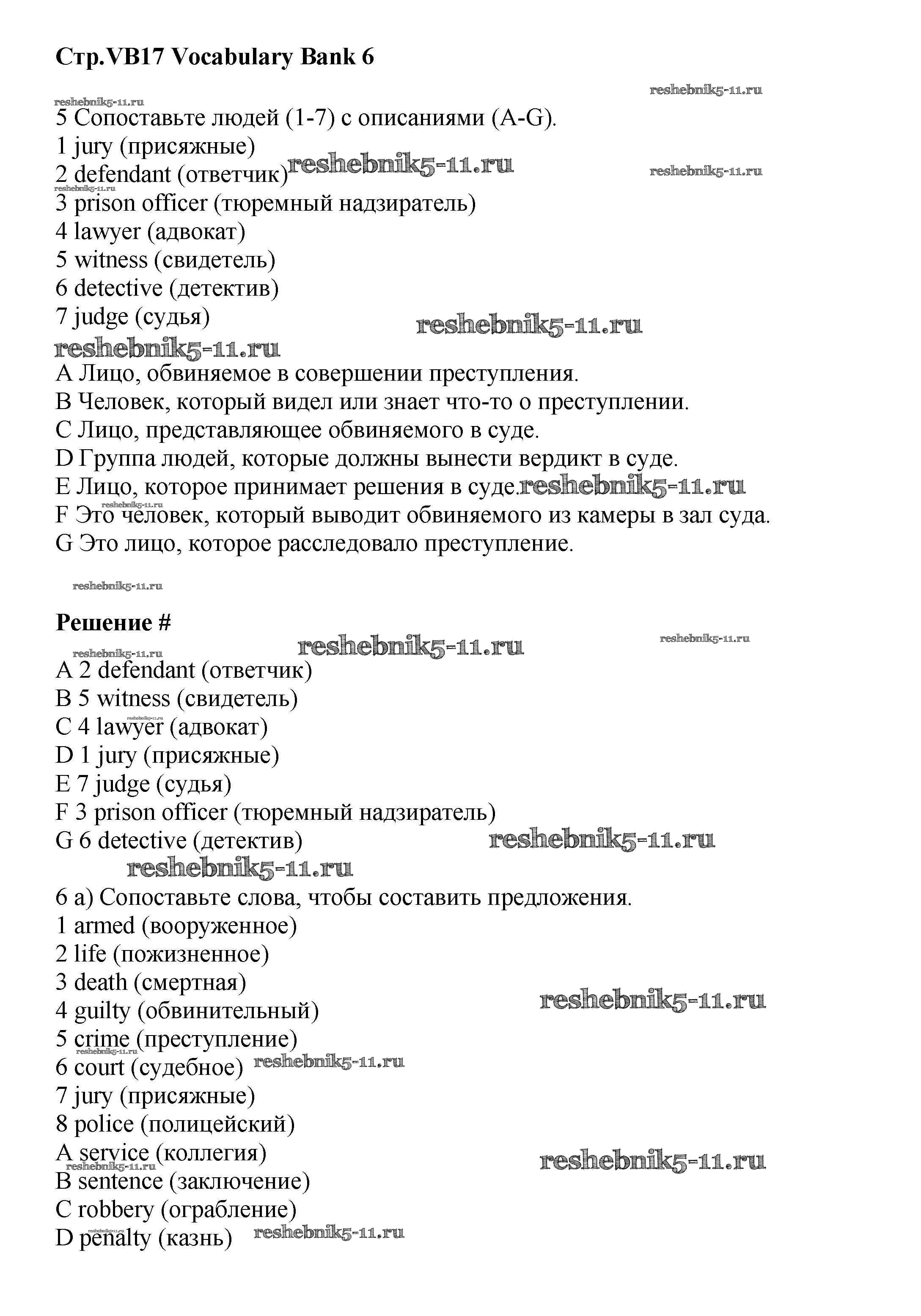 Готовая домашняя работа с ответами по Английскому языку за 7 класс Баранова, Дули, Копылова Учебник Starlight Углубленный уровень Просвещение 2017 ФГОС - Vocabulary Bank VB17
