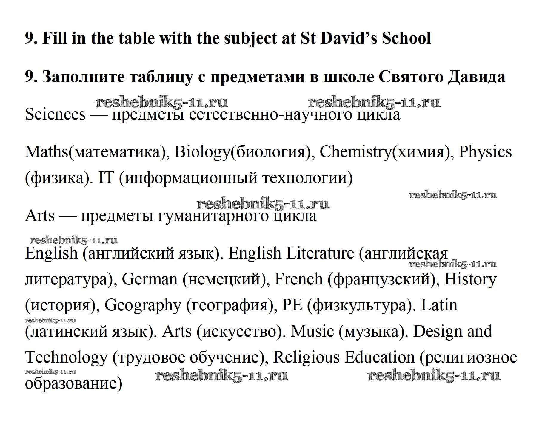 Решебник / unit 6. school / lesson 3 / 9