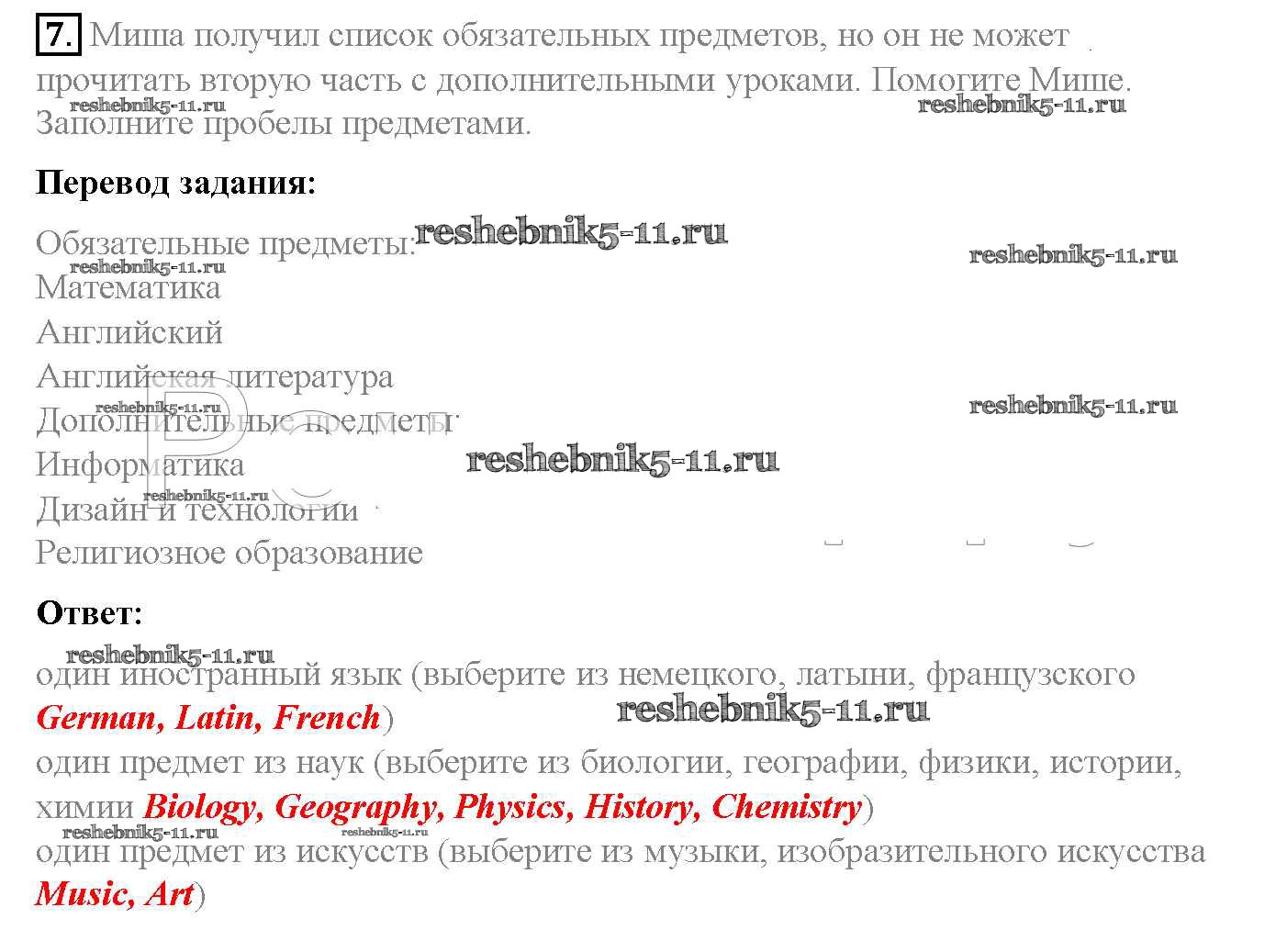 Решебник / unit 6. school / lesson 4 / 7