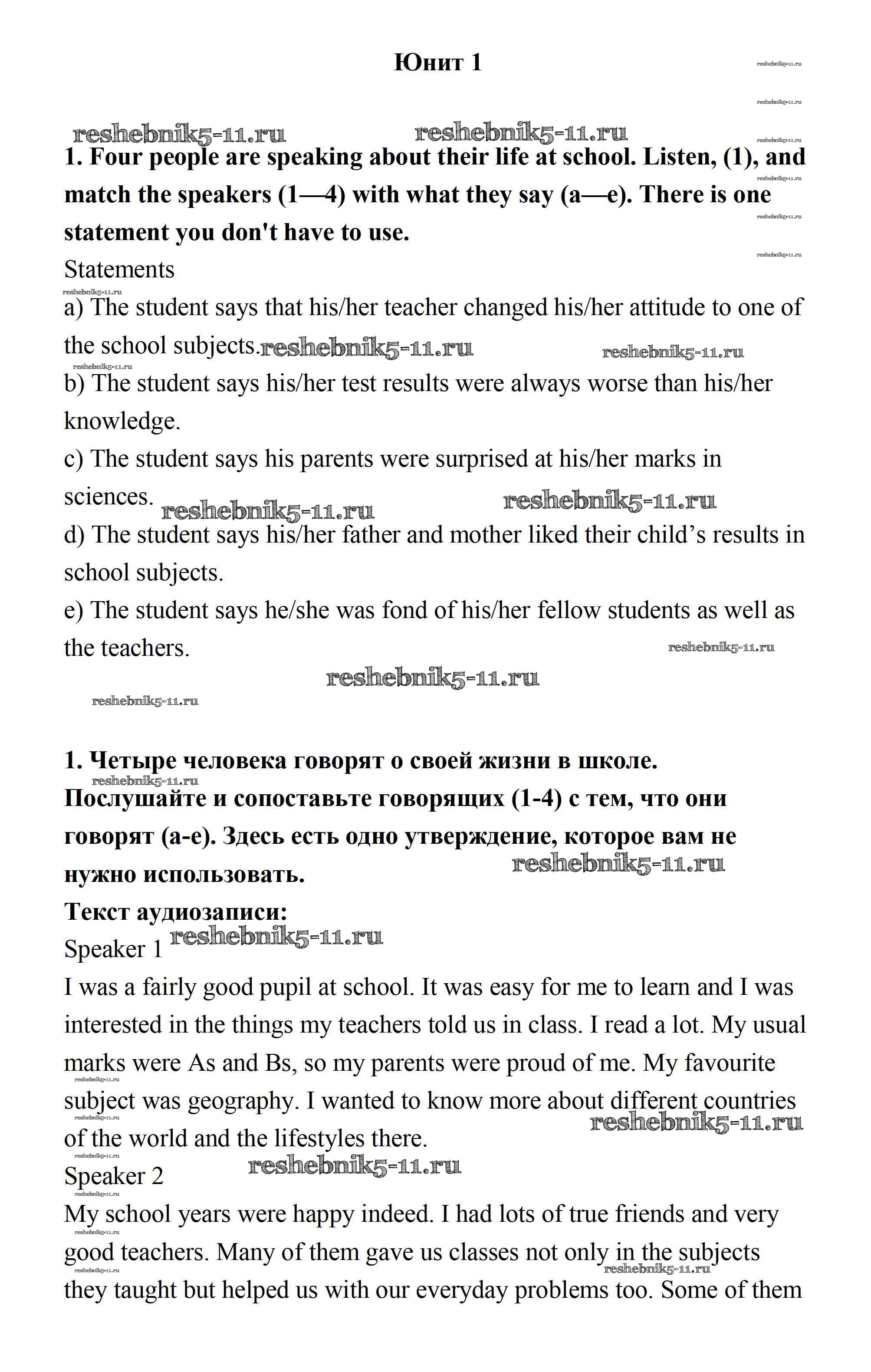 Готовая домашняя работа с ответами по Английскому языку за 7 класс Афанасьева, Михеева, Баранова Рабочая тетрадь Rainbow Дрофа 2019 ФГОС - Unit 1 1