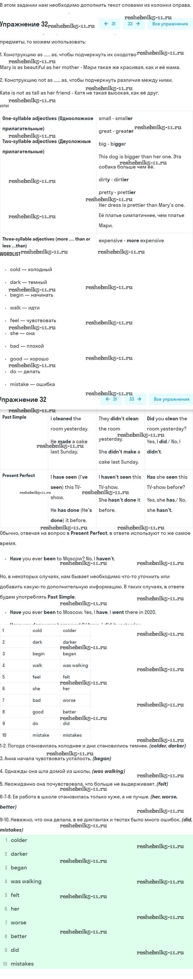 Готовая домашняя работа с ответами по Английскому языку за 7 класс Афанасьева, Михеева, Баранова Рабочая тетрадь Rainbow Дрофа 2019 ФГОС - Unit 1 32