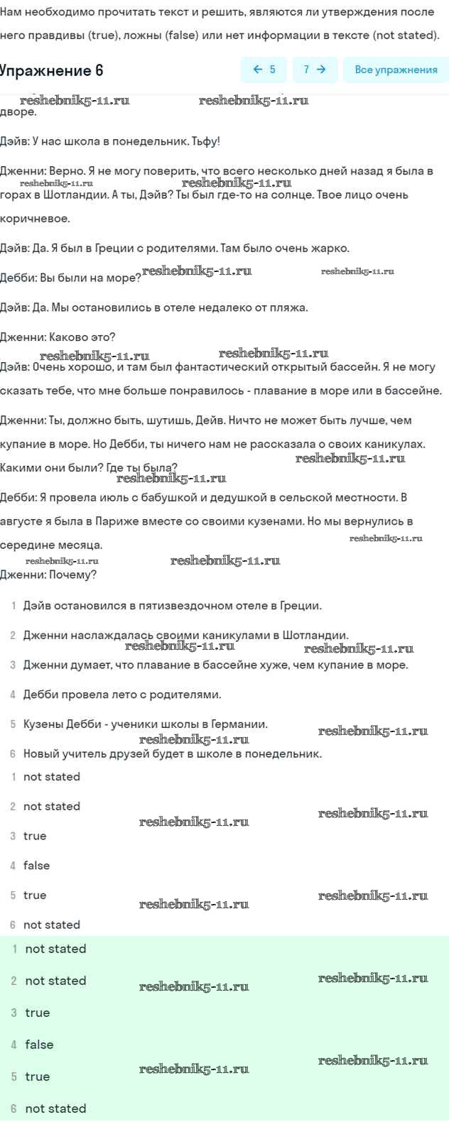 Готовая домашняя работа с ответами по Английскому языку за 7 класс Афанасьева, Михеева, Баранова Рабочая тетрадь Rainbow Дрофа 2019 ФГОС - Unit 1 6