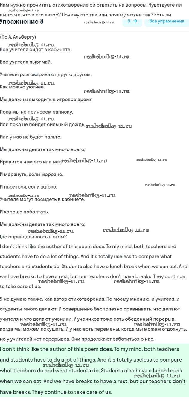 Готовая домашняя работа с ответами по Английскому языку за 7 класс Афанасьева, Михеева, Баранова Рабочая тетрадь Rainbow Дрофа 2019 ФГОС - Unit 1 8