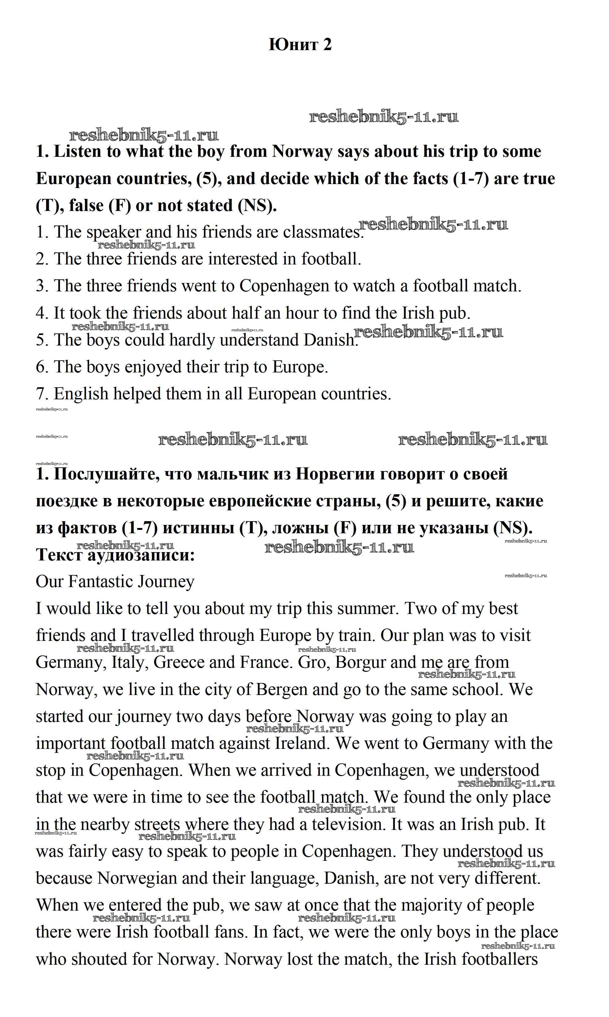 Готовая домашняя работа с ответами по Английскому языку за 7 класс Афанасьева, Михеева, Баранова Рабочая тетрадь Rainbow Дрофа 2019 ФГОС - Unit 2 1