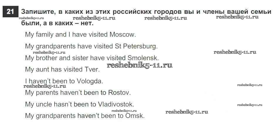 Готовая домашняя работа с ответами по Английскому языку за 7 класс Афанасьева, Михеева, Баранова Рабочая тетрадь Rainbow Дрофа 2019 ФГОС - Unit 2 21