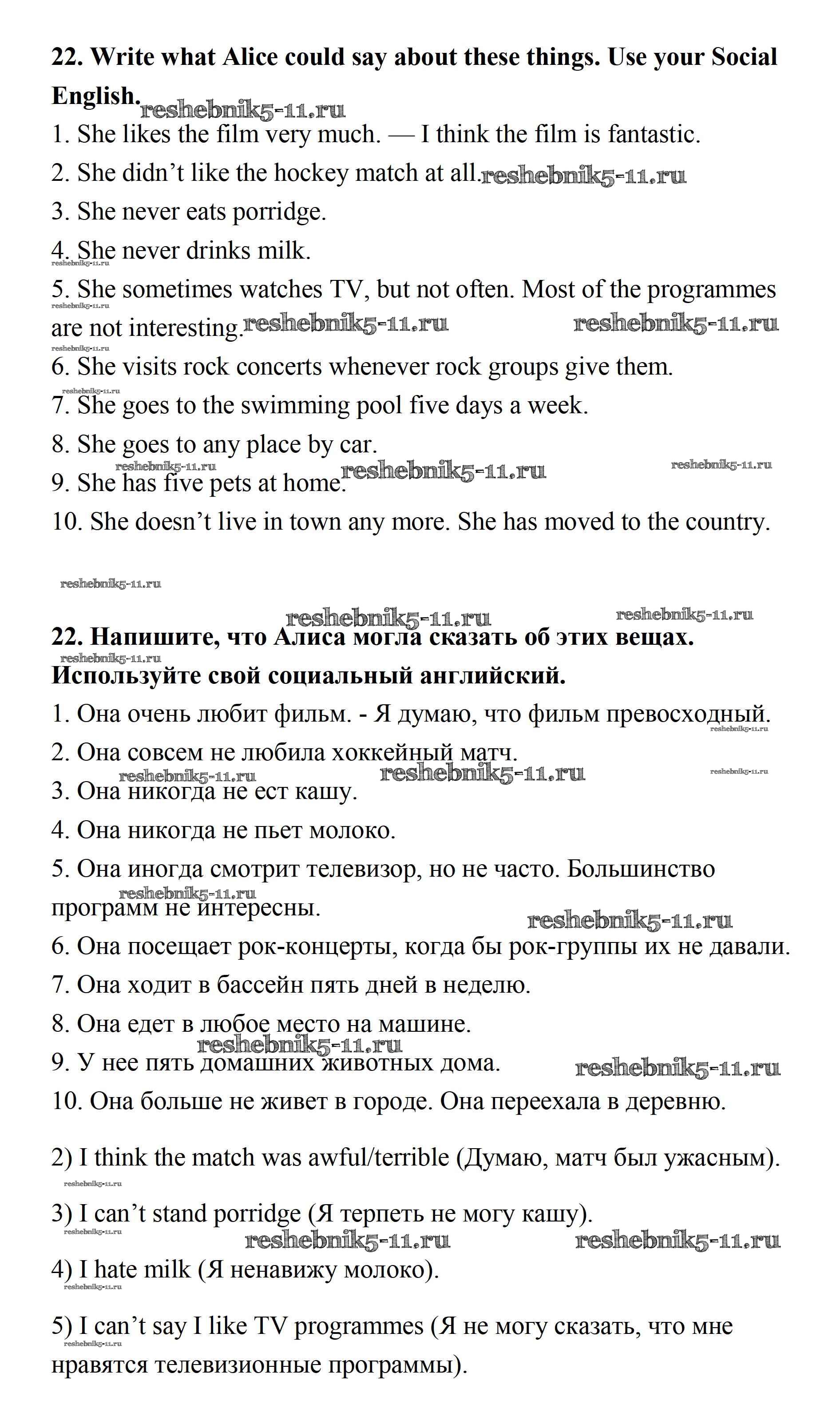 Готовая домашняя работа с ответами по Английскому языку за 7 класс Афанасьева, Михеева, Баранова Рабочая тетрадь Rainbow Дрофа 2019 ФГОС - Unit 2 22