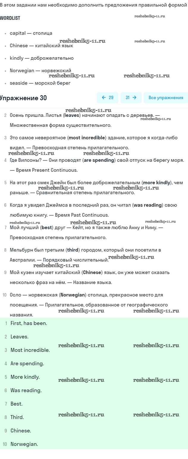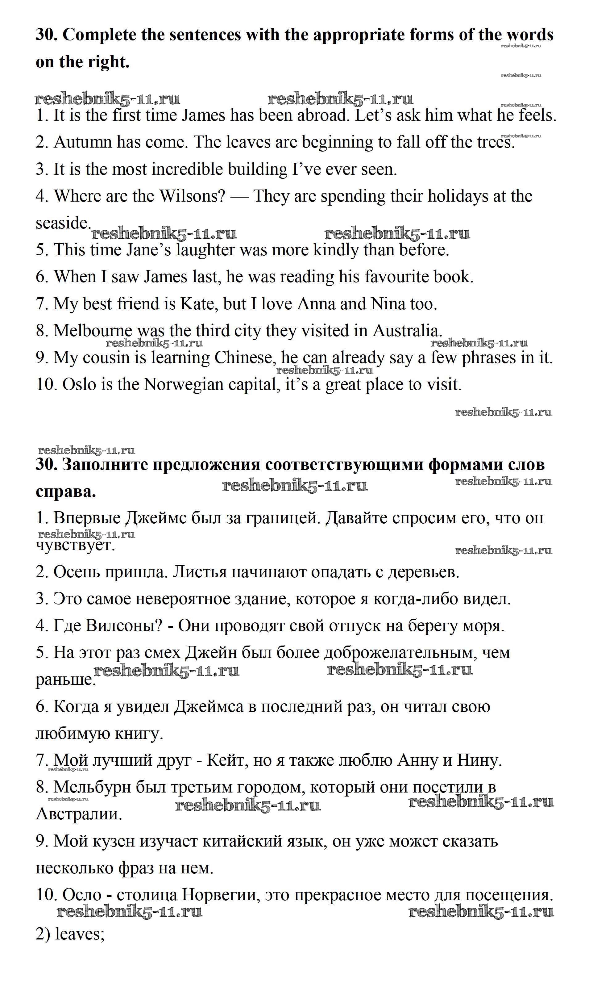Готовая домашняя работа с ответами по Английскому языку за 7 класс Афанасьева, Михеева, Баранова Рабочая тетрадь Rainbow Дрофа 2019 ФГОС - Unit 3 30