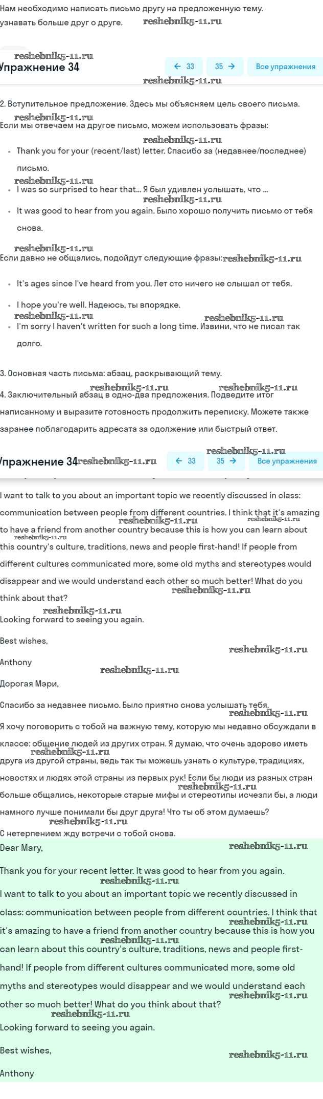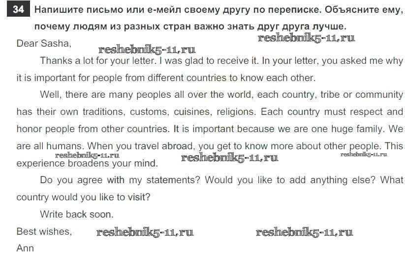 Готовая домашняя работа с ответами по Английскому языку за 7 класс Афанасьева, Михеева, Баранова Рабочая тетрадь Rainbow Дрофа 2019 ФГОС - Unit 3 34