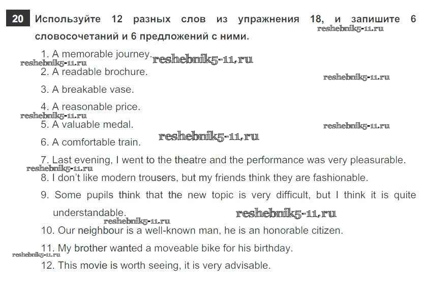 Готовая домашняя работа с ответами по Английскому языку за 7 класс Афанасьева, Михеева, Баранова Рабочая тетрадь Rainbow Дрофа 2019 ФГОС - Unit 4 20