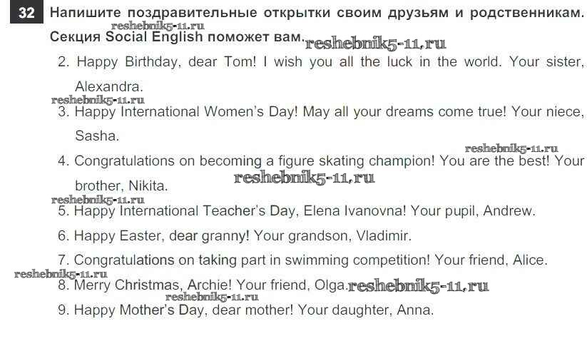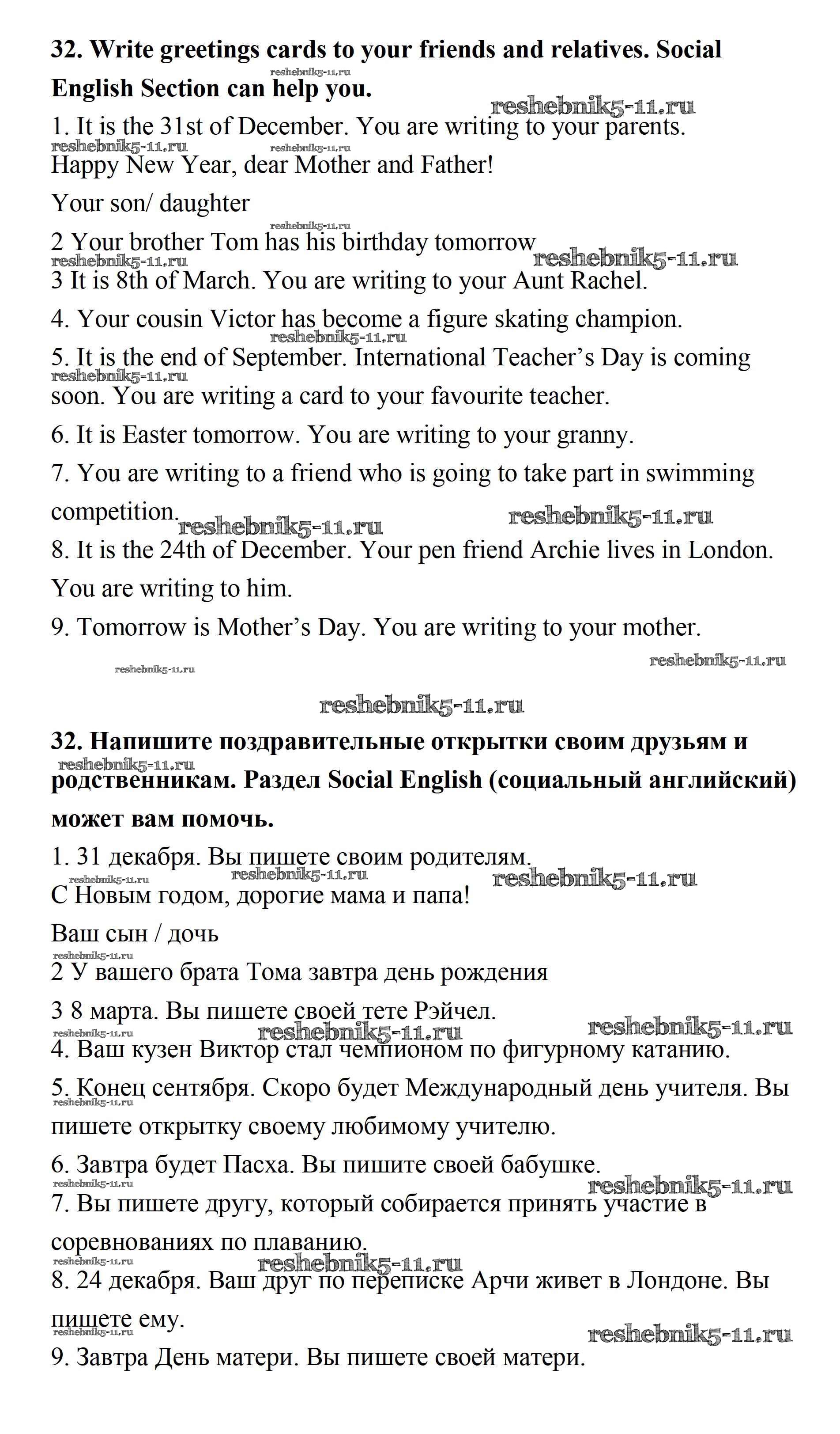 Готовая домашняя работа с ответами по Английскому языку за 7 класс Афанасьева, Михеева, Баранова Рабочая тетрадь Rainbow Дрофа 2019 ФГОС - Unit 4 32