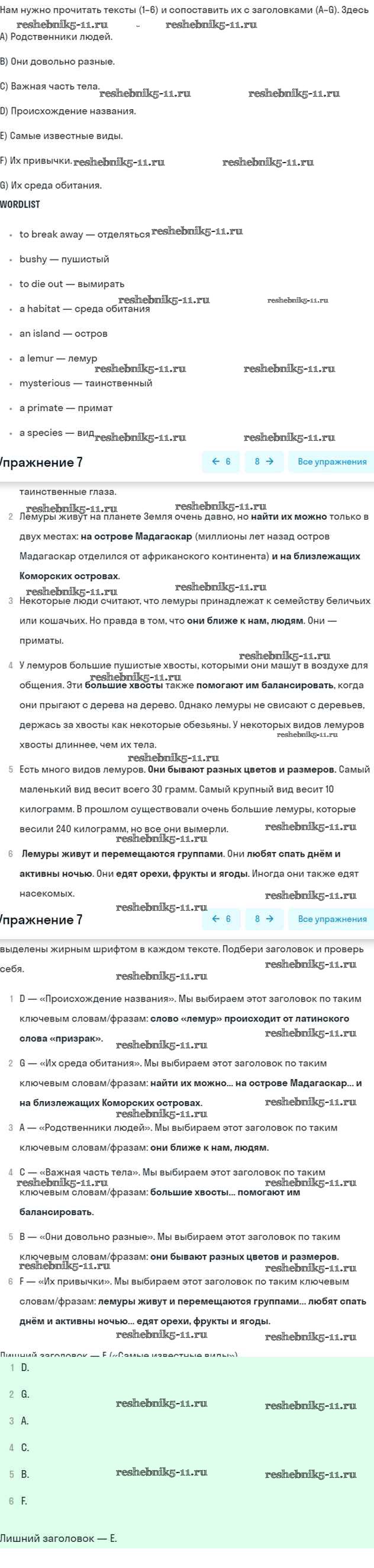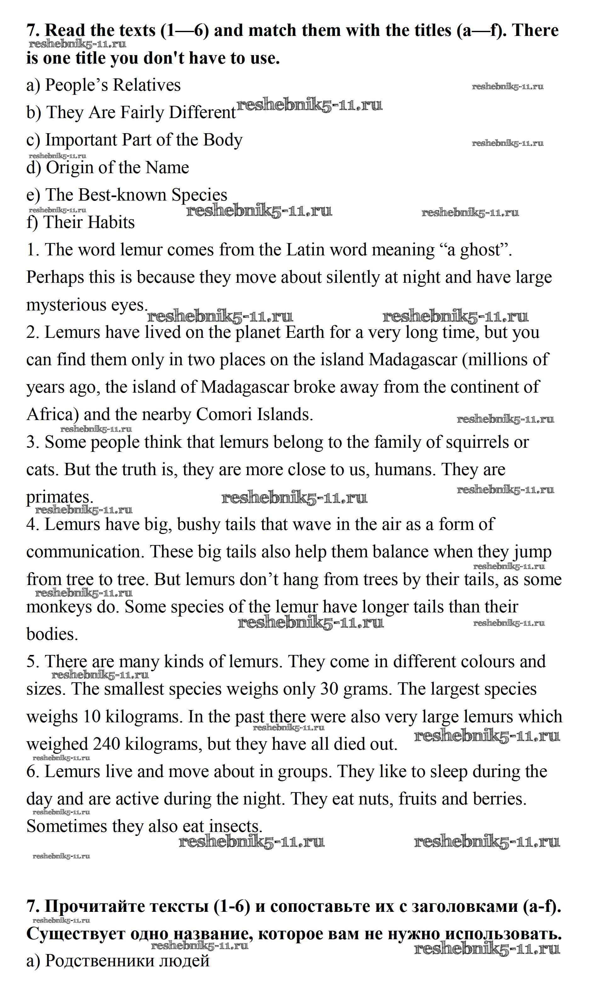 Готовая домашняя работа с ответами по Английскому языку за 7 класс Афанасьева, Михеева, Баранова Рабочая тетрадь Rainbow Дрофа 2019 ФГОС - Unit 4 7