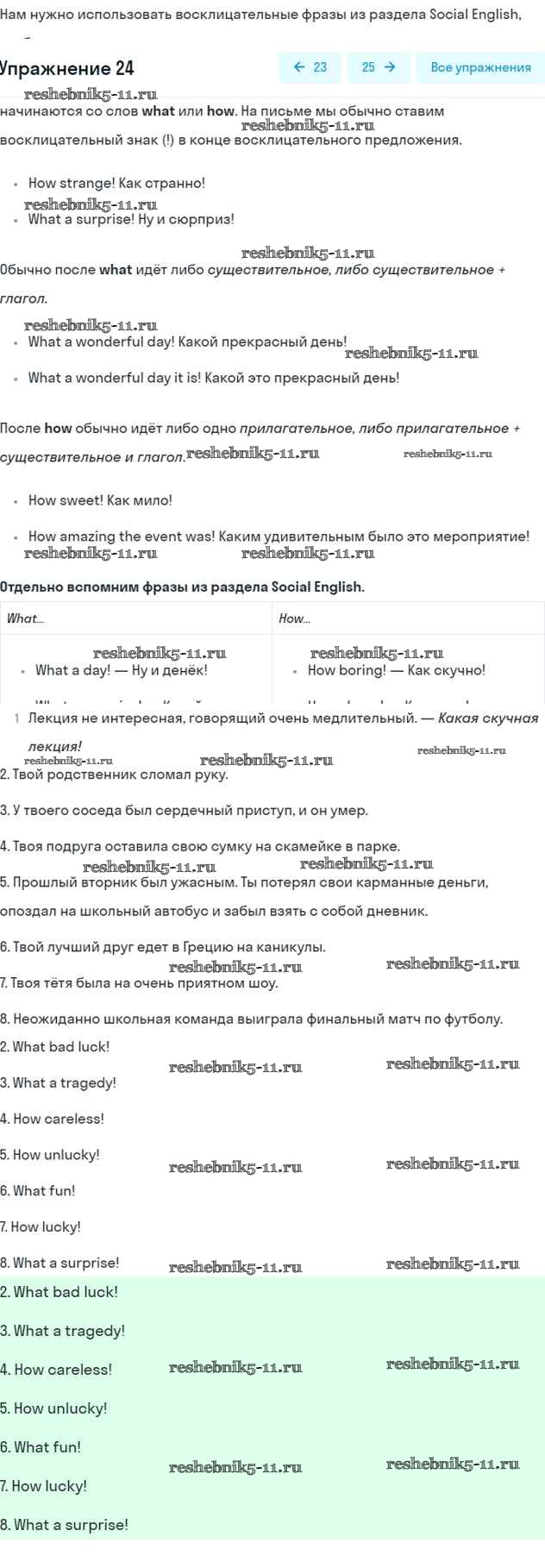 Готовая домашняя работа с ответами по Английскому языку за 7 класс Афанасьева, Михеева, Баранова Рабочая тетрадь Rainbow Дрофа 2019 ФГОС - Unit 6 24