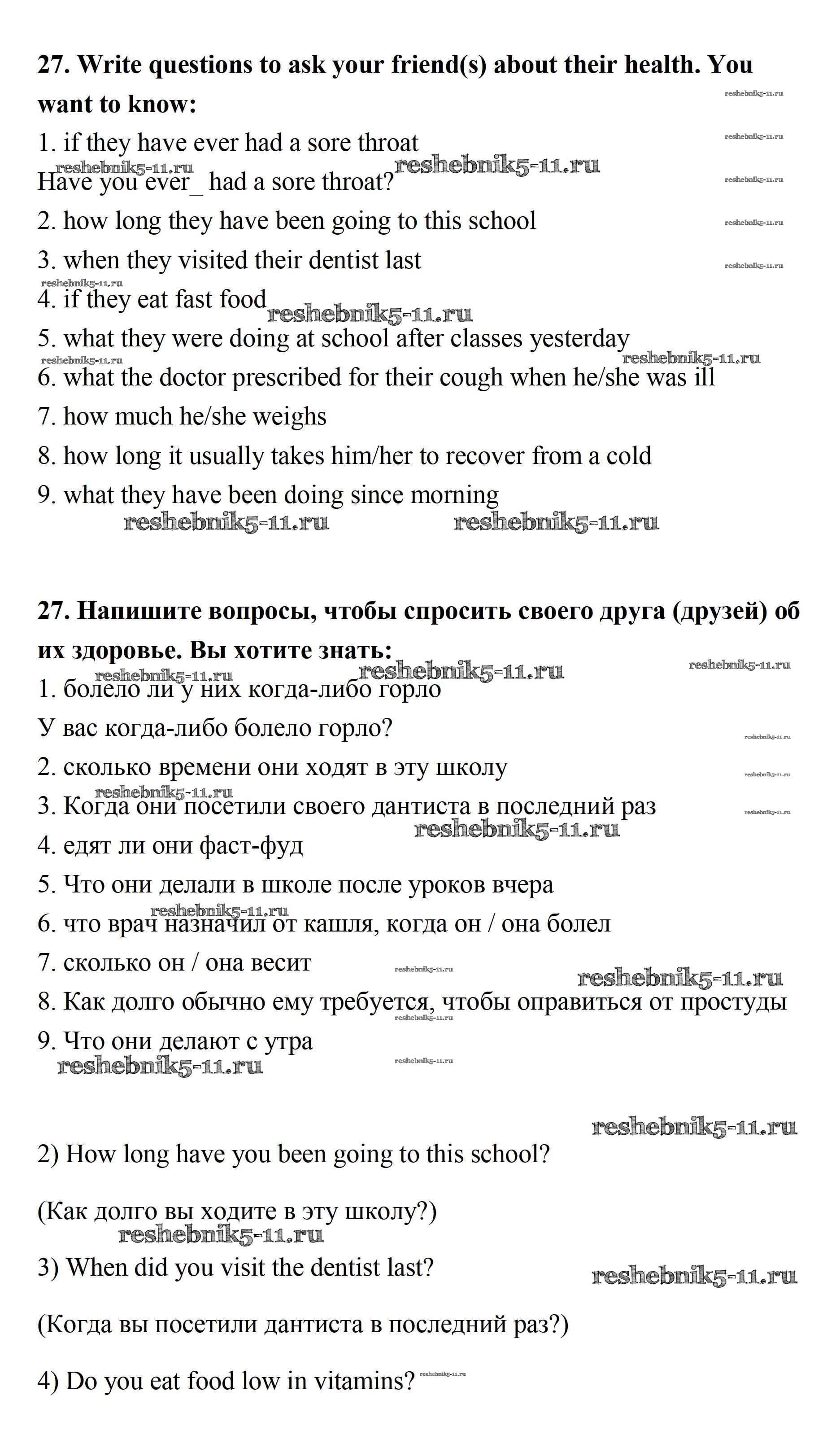 Готовая домашняя работа с ответами по Английскому языку за 7 класс Афанасьева, Михеева, Баранова Рабочая тетрадь Rainbow Дрофа 2019 ФГОС - Unit 6 27