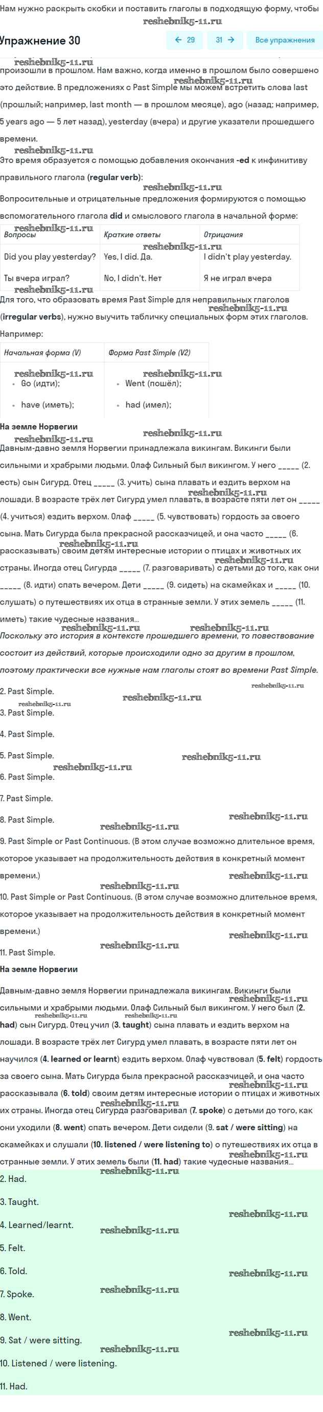 Готовая домашняя работа с ответами по Английскому языку за 7 класс Афанасьева, Михеева, Баранова Рабочая тетрадь Rainbow Дрофа 2019 ФГОС - Unit 6 30