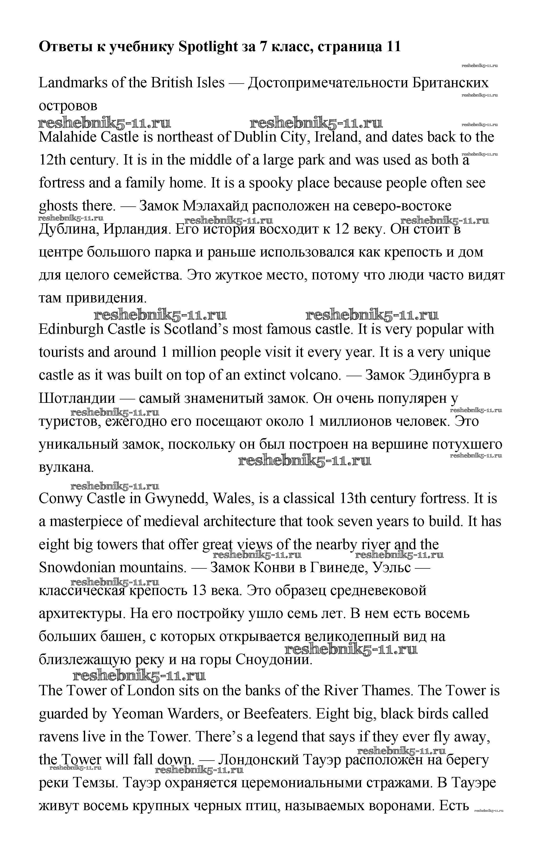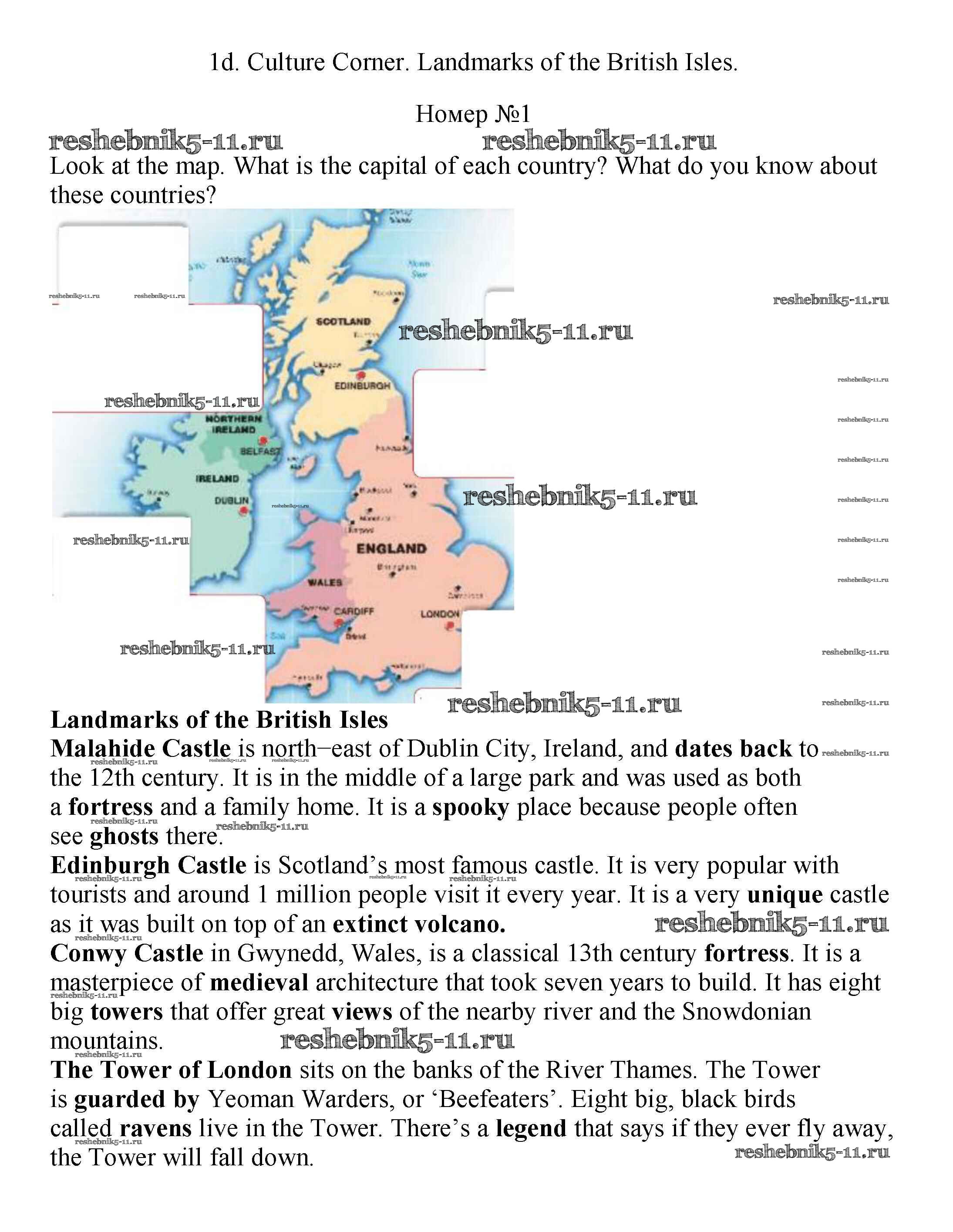 Готовая домашняя работа с ответами по Английскому языку за 7 класс Ваулина, Дули, Эванс, Подоляко Учебник Spotlight Просвещение 2019 ФГОС - Часть 1d. Culture Corner 1