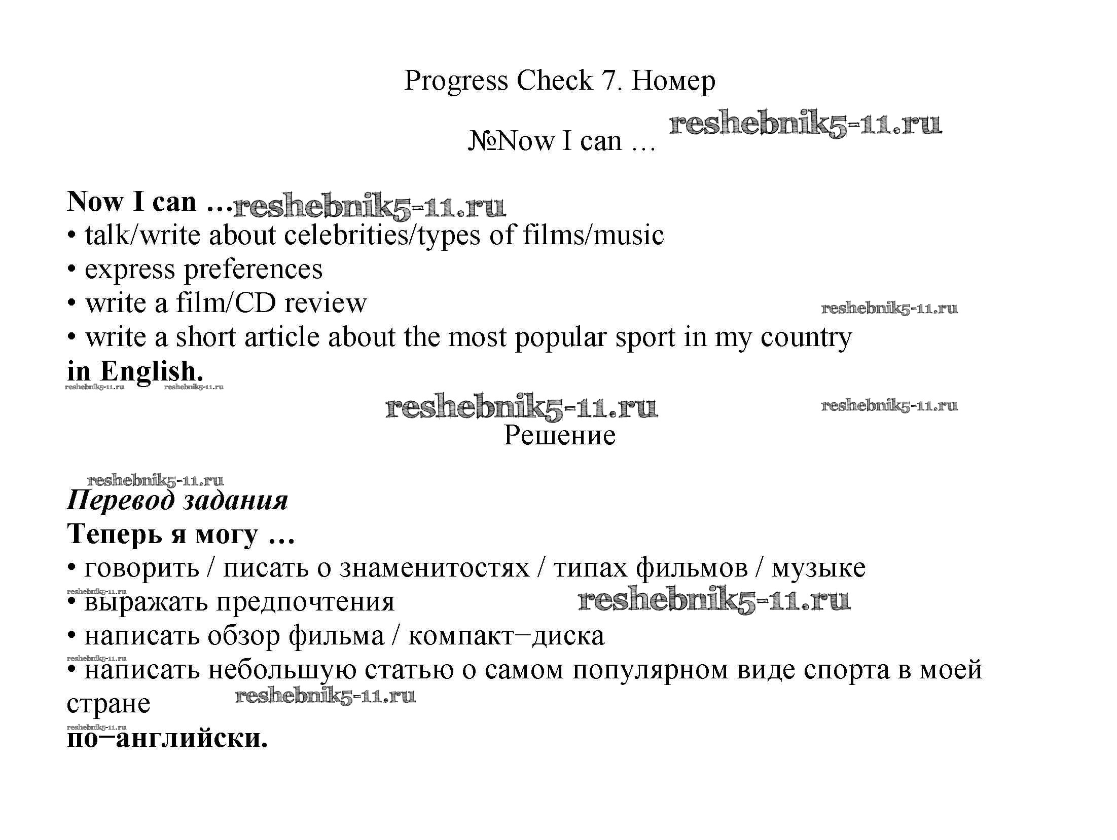 Решебник 1 / Spotlight / модуль 7 / Progress Check / now I can