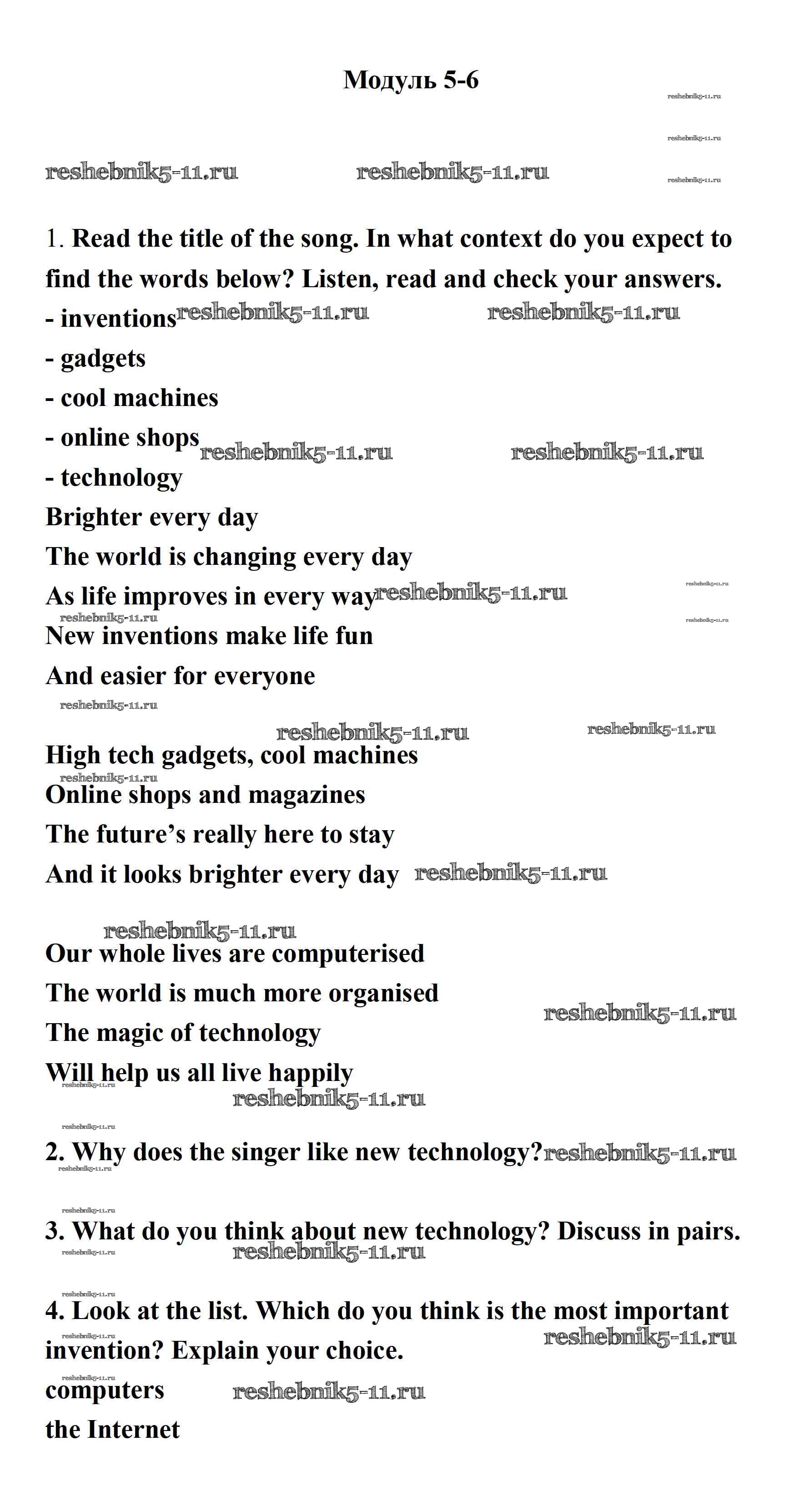 Готовая домашняя работа с ответами по Английскому языку за 7 класс Ваулина, Дули, Эванс, Подоляко Учебник Spotlight Просвещение 2019 ФГОС - Song Sheets Spotlight (Модули) 5-6
